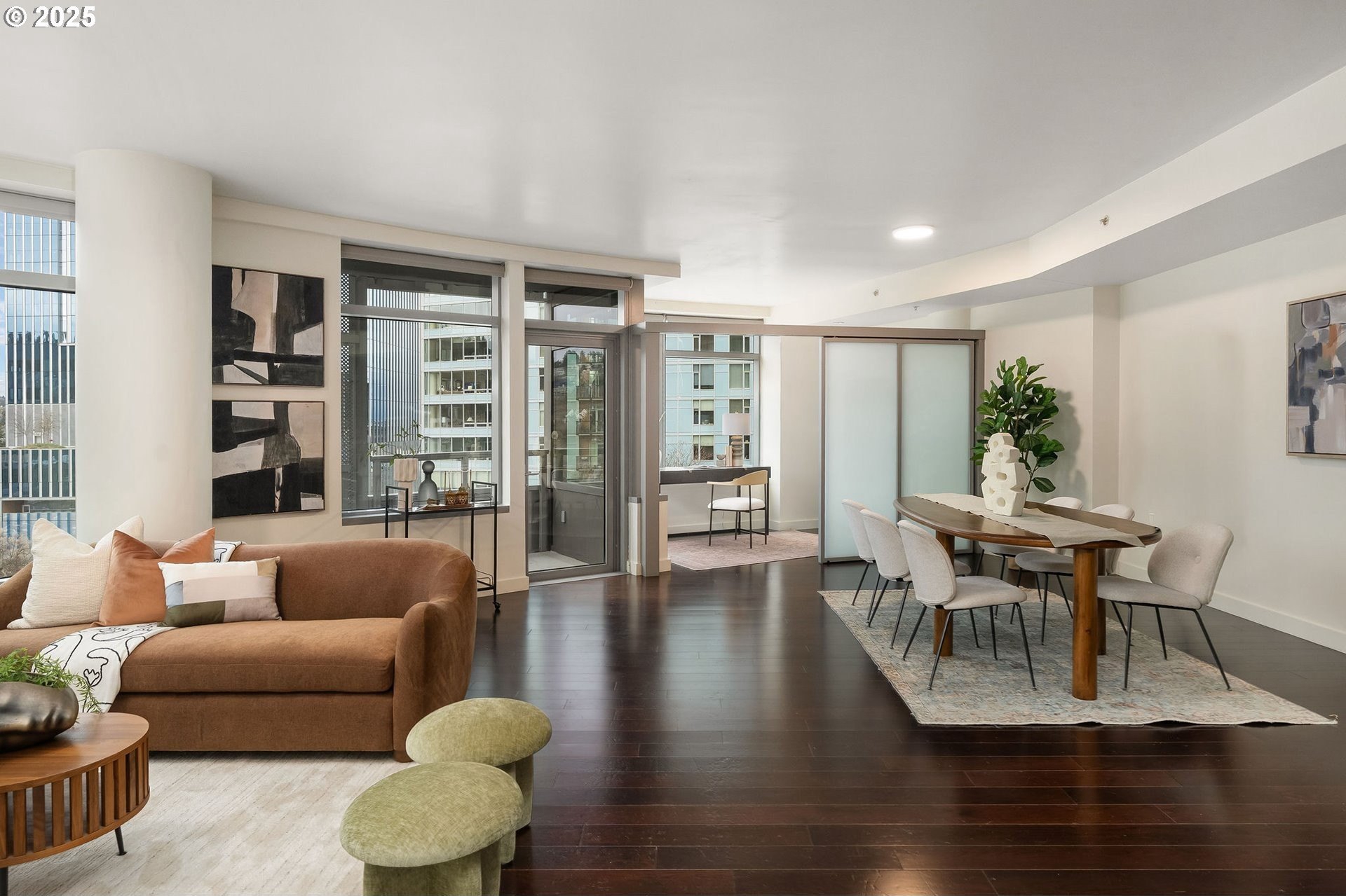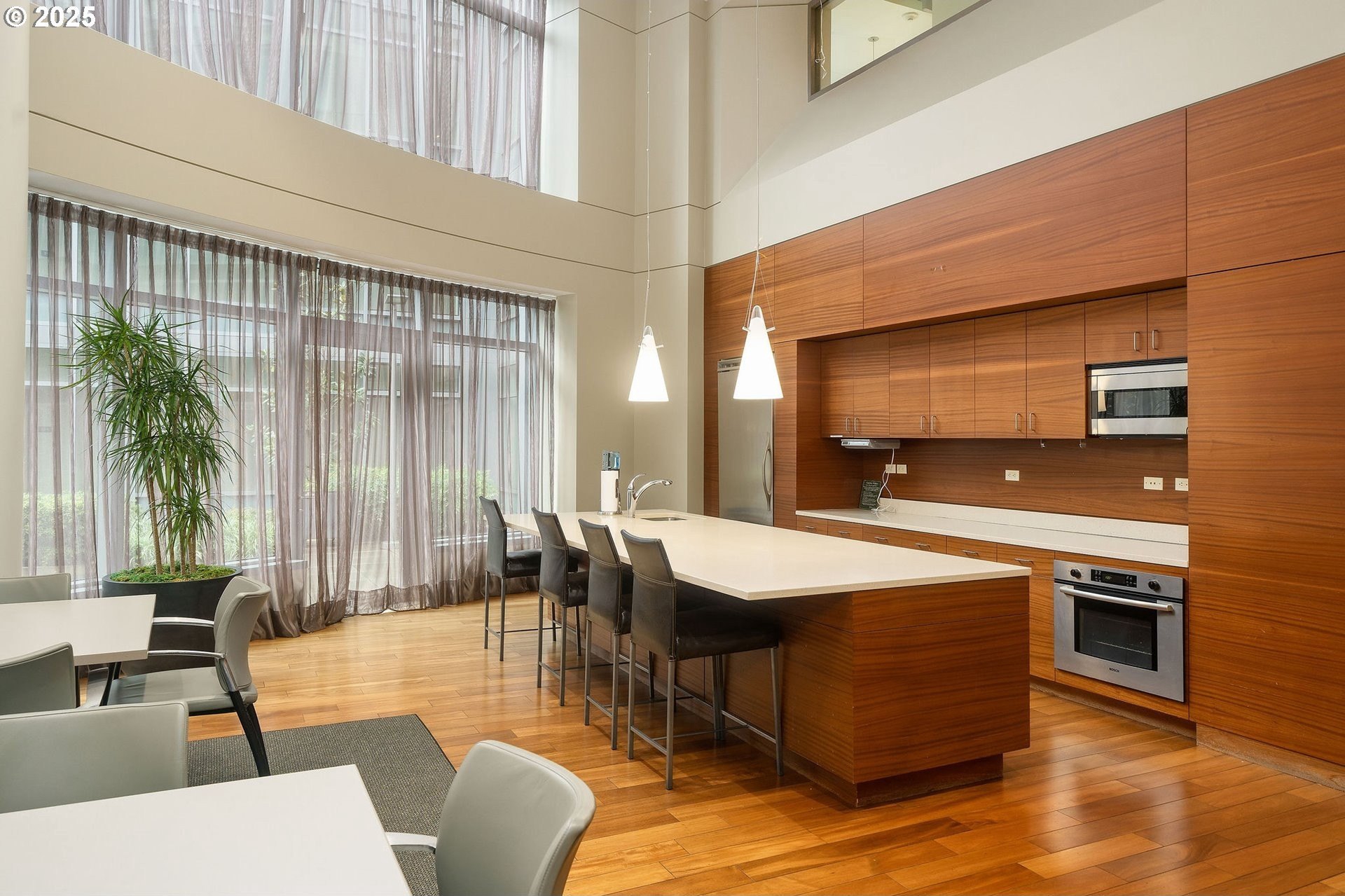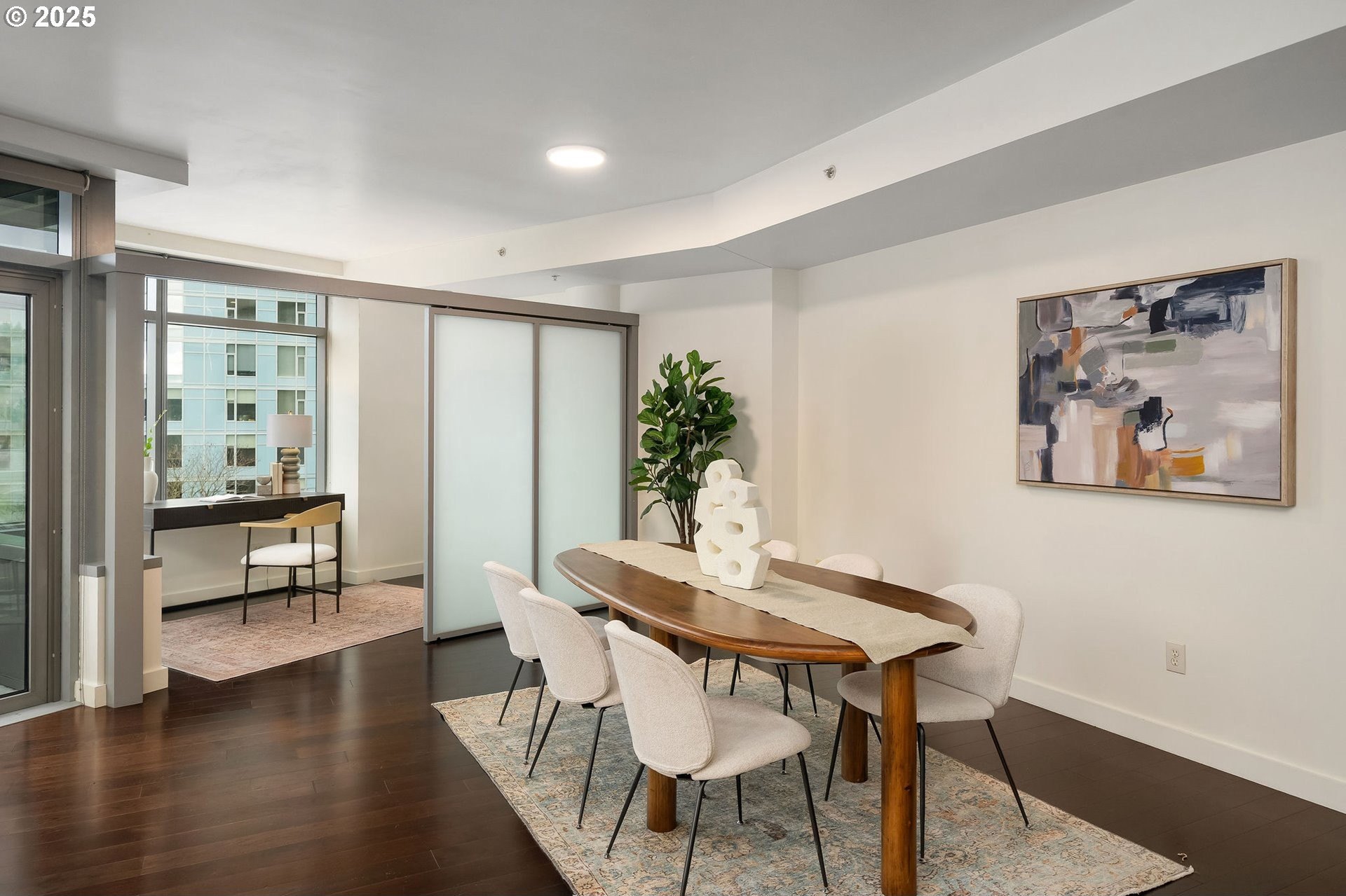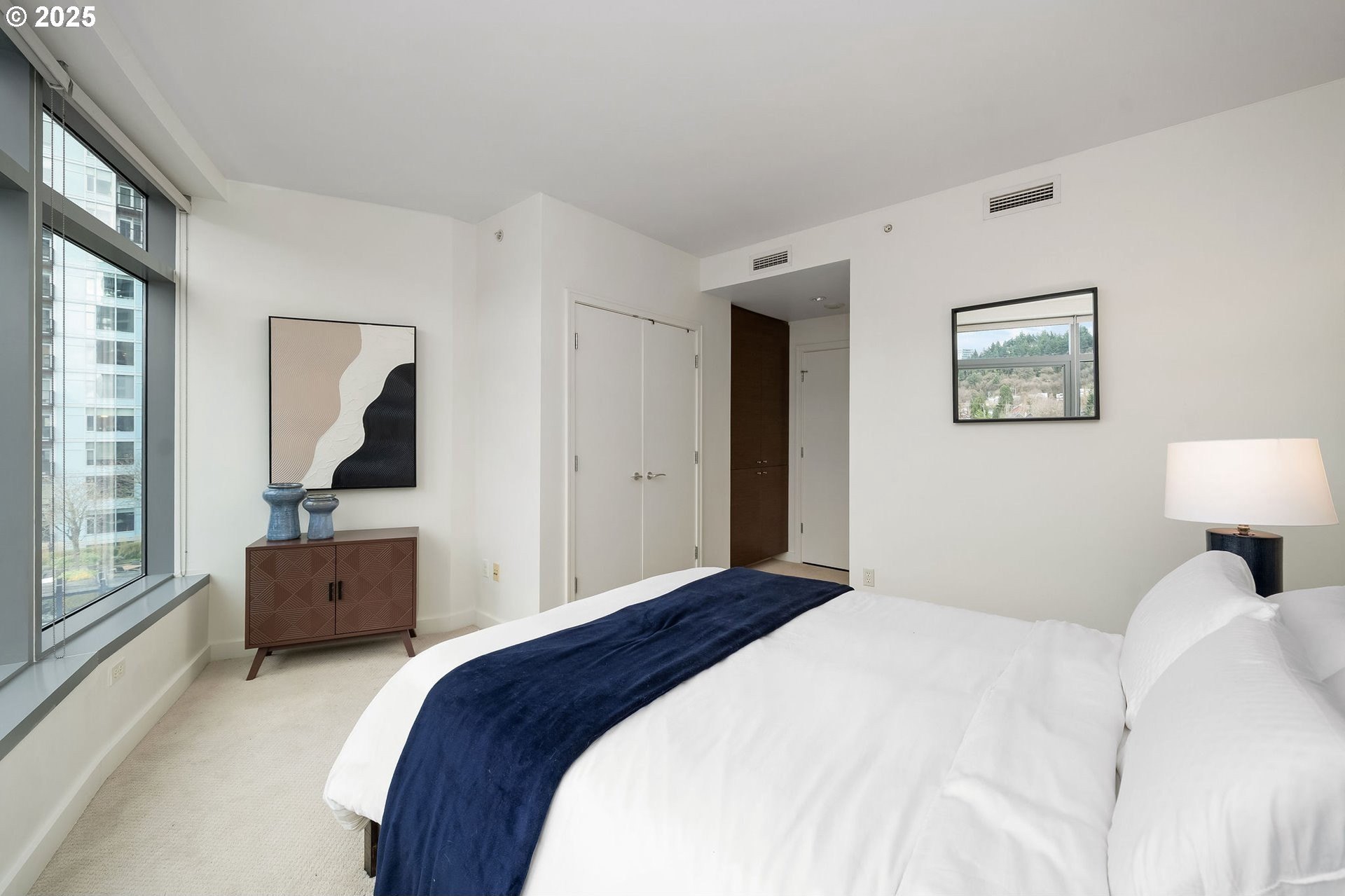 This west-facing residence at the John Ross offers privacy, protected views, and a flexible layout rarely found in the building. Expansive windows allow light year-round, framing an unobstructed hillside outlook with seasonal color, views of the aerial tram, and a glimpse of the river, without neighboring towers looking back in.The living space features a Modern Flames 58" wall-mounted electric fireplace that can be easily removed, offering flexibility for future design preferences. The open plan supports both everyday living and entertaining. A smart home gym setup (Tonal) is available by separate consideration.One of the few units with a divided corner, the office provides a true work-from-home solution or potential second bedroom without compromising the main living area.Additional highlights include tandem parking for two vehicles and one of the largest storage units in the building, well-suited for bikes, outdoor gear, or passive rental income.Enjoy walkable access to the Portland Opera House, OMSI, and Zidell Yards for concerts and events. The streetcar is steps away, with easy connections to downtown, the Springwater Corridor Trail, and miles of waterfront paths. Weekly farmers markets, movies in the park, and seasonal community events round out the South Waterfront lifestyle.