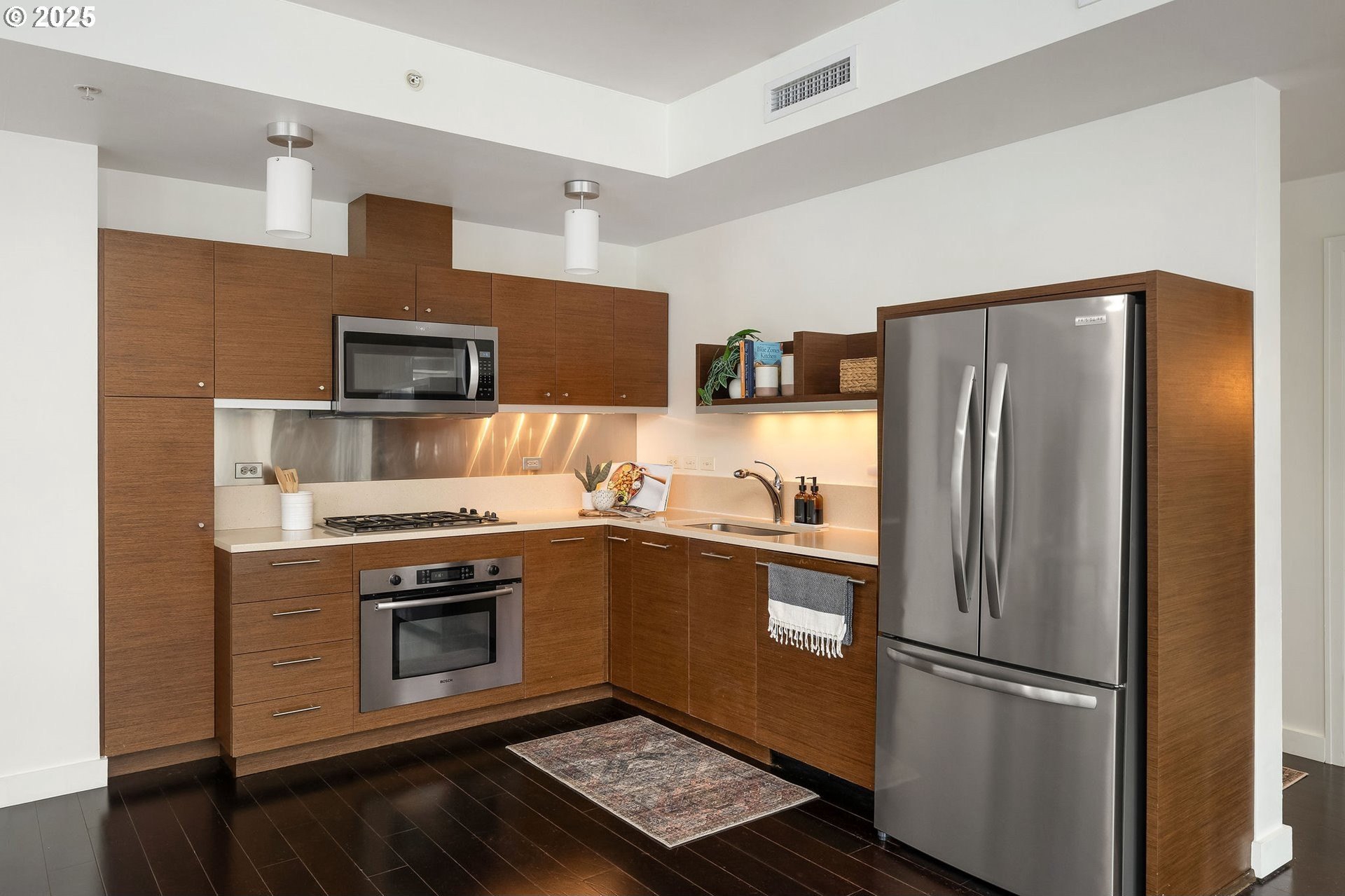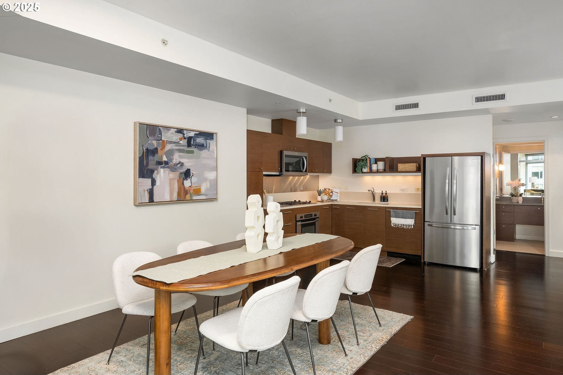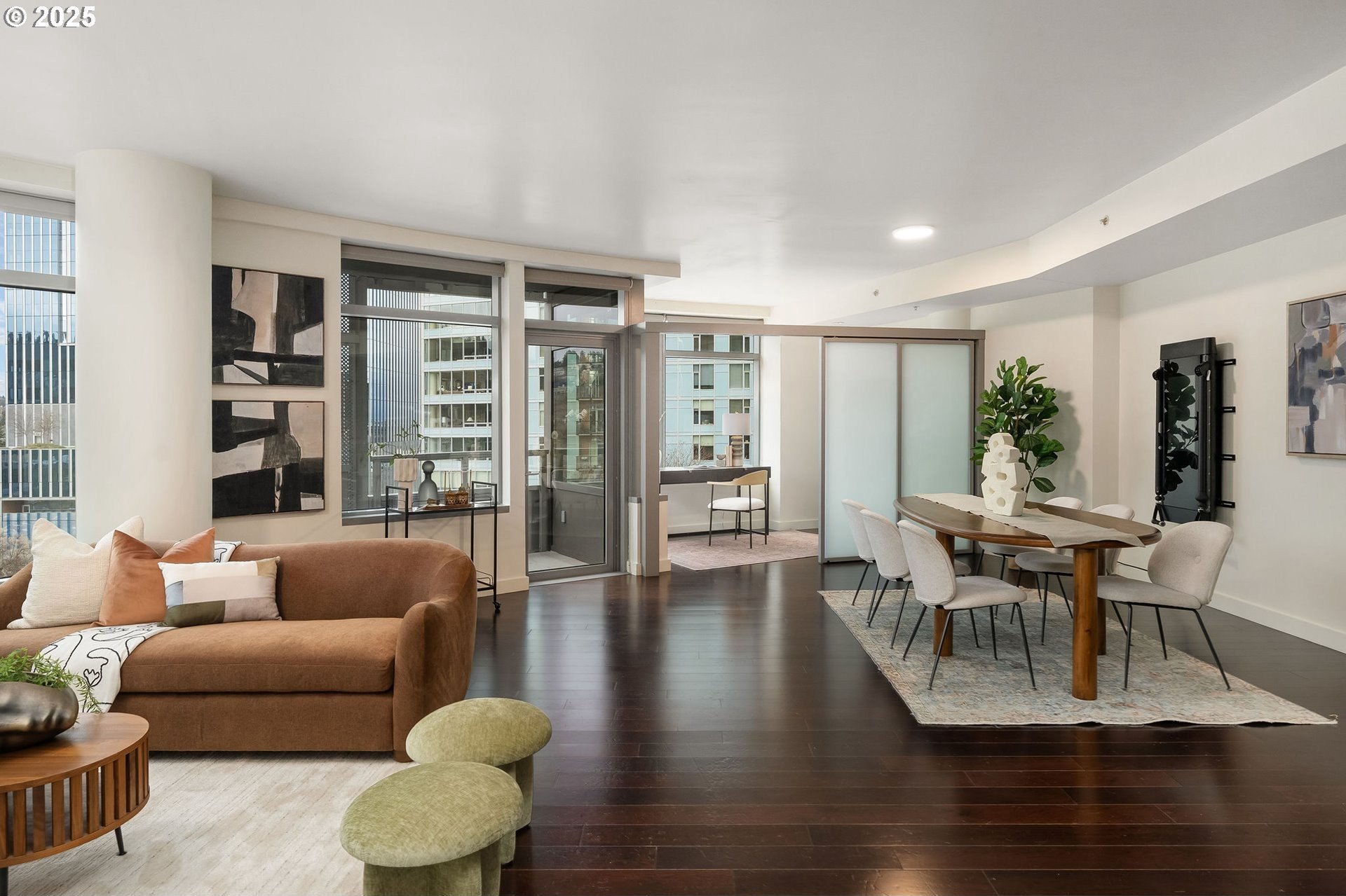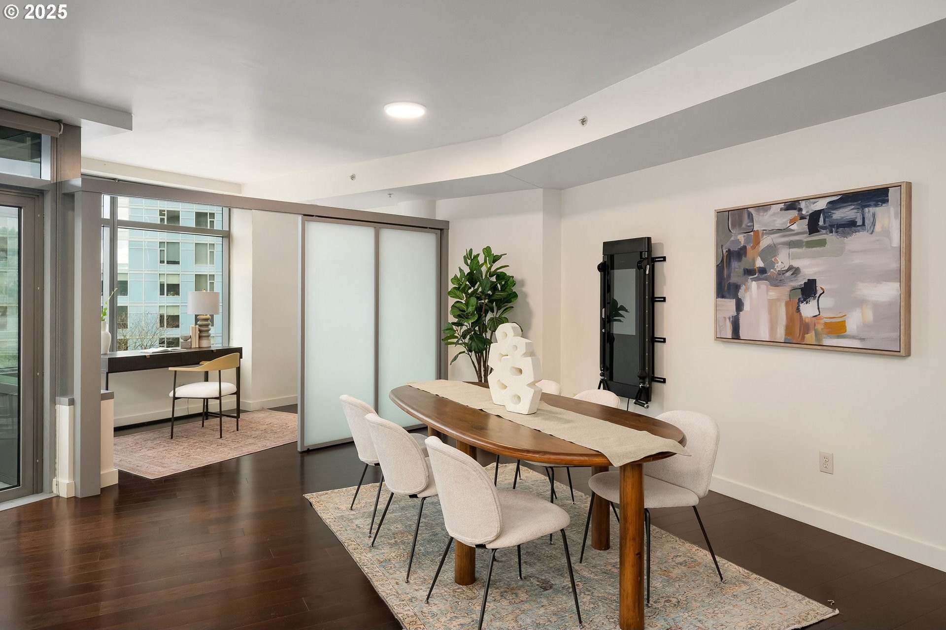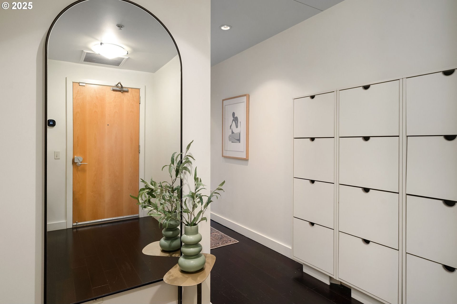 This west-facing residence at the John Ross offers privacy, protected views, and a flexible layout rarely found in the building. Expansive windows allow light year-round, framing an unobstructed hillside outlook with seasonal color, views of the aerial tram, and a glimpse of the river, without neighboring towers looking back in.The living space features a Modern Flames 58" wall-mounted electric fireplace that can be easily removed, offering flexibility for future design preferences. The open plan supports both everyday living and entertaining. A smart home gym setup (Tonal) is available by separate consideration.One of the few units with a divided corner, the office provides a true work-from-home solution or potential second bedroom without compromising the main living area.Additional highlights include tandem parking for two vehicles and one of the largest storage units in the building, well-suited for bikes, outdoor gear, or passive rental income.Enjoy walkable access to the Portland Opera House, OMSI, and Zidell Yards for concerts and events. The streetcar is steps away, with easy connections to downtown, the Springwater Corridor Trail, and miles of waterfront paths. Weekly farmers markets, movies in the park, and seasonal community events round out the South Waterfront lifestyle.