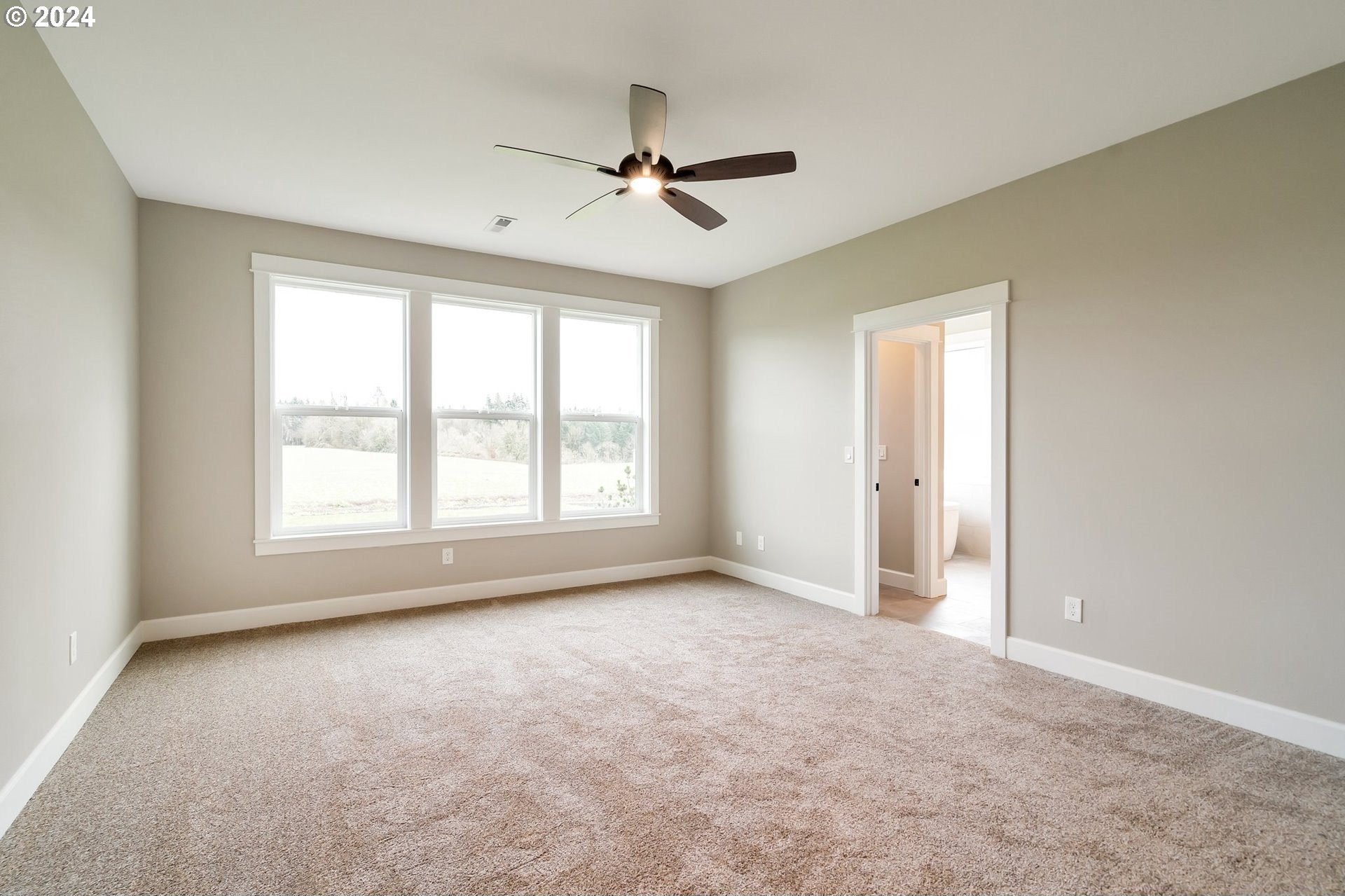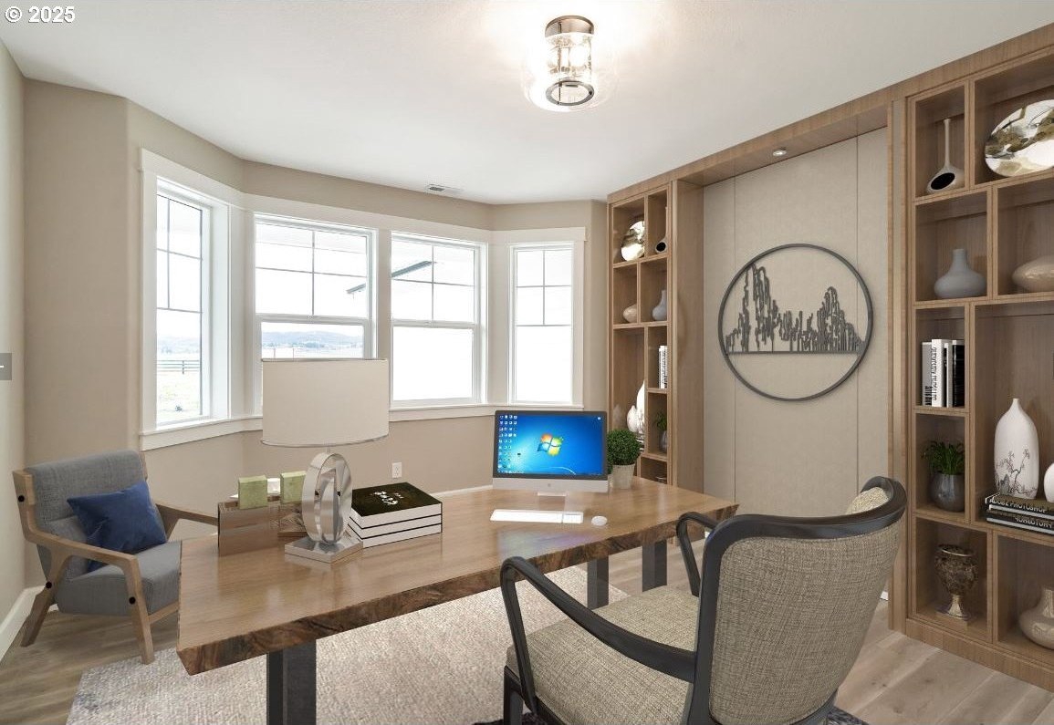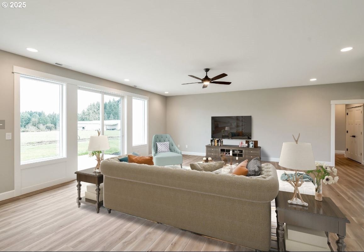 Tucked just minutes from town in a highly sought-after location, this like-new single-level home offers the perfect blend of convenience, privacy, and wide-open space. Set on a level 1.81-acre lot, the home is thoughtfully positioned toward the back of the property, creating exceptional territorial views from both the front and back and giving you all the elbow room you've been dreaming of. Step inside to an inviting open-concept layout featuring 4 bedrooms, 2.5 baths, and a spacious dedicated office-ideal for today's work-from-home lifestyle. The stunning primary suite is a true retreat, complete with a tile shower and separate freestanding soaking tub. Outdoors, enjoy landscaped surroundings with sprinklers around the home while still having ample room for a shop, barn, animals, or future expansion. Start your mornings on the large back patio watching the sun rise, and unwind in the evenings with beautiful sunsets from the front of the home-your own slice of peaceful rural living. Tenant occupied do not disturb.