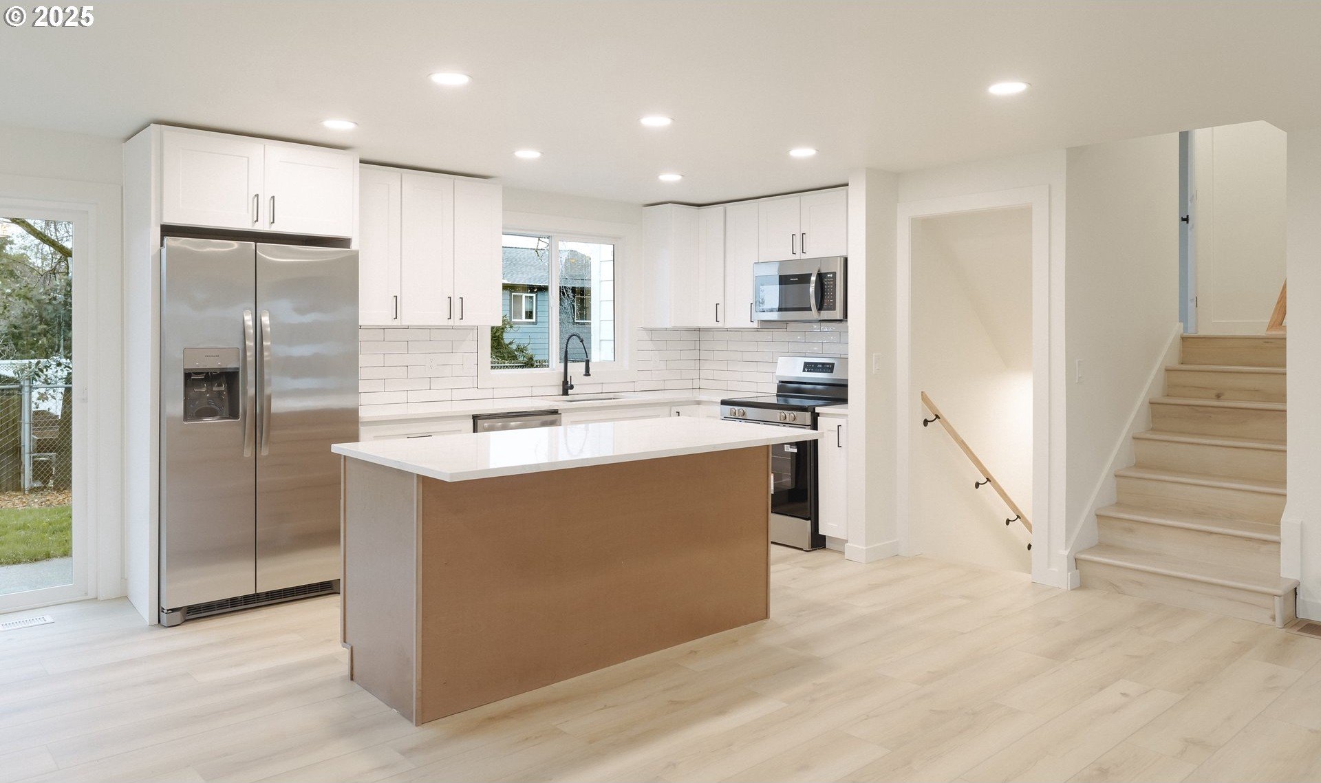 Welcome to an extraordinary Parkrose home, completely reimagined from the studs. This stunning, fully remodeled tri-level property is the definition of new modern living, offering 4 beds, 3 full baths, plus a bonus for home office or craft room. It provides flexibility and function in a prime quiet location.As you step inside, the open-concept living, dining, and kitchen areas immediately draw you in, illuminated by natural light and anchored by a sleek electric fireplace-perfect for cozy evenings. The main level provides a seamless flow for entertaining and daily life, all featuring brand-new appliances, including a new fridge and oven.Journey upstairs to discover the private quarters, featuring a primary suite and two additional bright, airy bedrooms, sharing a beautifully appointed full bathroom.The lower level reveals an exceptional, fully-finished bonus room with its own separate entrance. This versatile space includes two bedrooms, a full bathroom, and a walk-in closet, offering endless possibilities as a mother-in-law suite, rental potential, or a private guest retreat.Step outside to discover your own expansive haven. The large, fenced lot is a gardener's dream, providing ample space for outdoor entertaining, play, and cultivating your own oasis. Plus, rare dedicated RV parking ensures all your vehicles have a home. Major systems are all new, from the roof down. This house boasts significant upgrades, including a new roof, new siding, new double-pane windows, and a new gas water heater. This isn't just a house; it's a truly turn-key opportunity for a dynamic lifestyle where peace of mind comes standard. Don't miss the chance to make this exceptionally detailed remodel your new beginning. [Home Energy Score = 6. HES Report