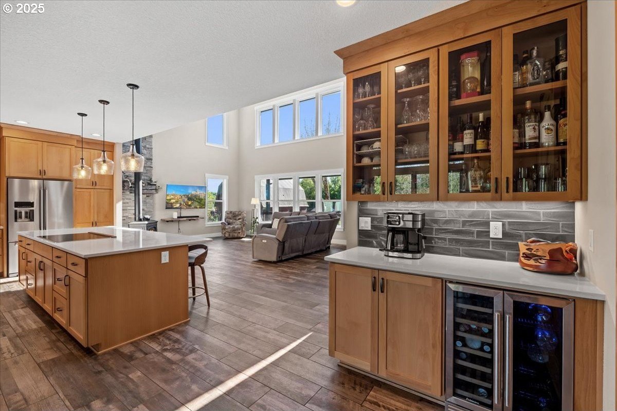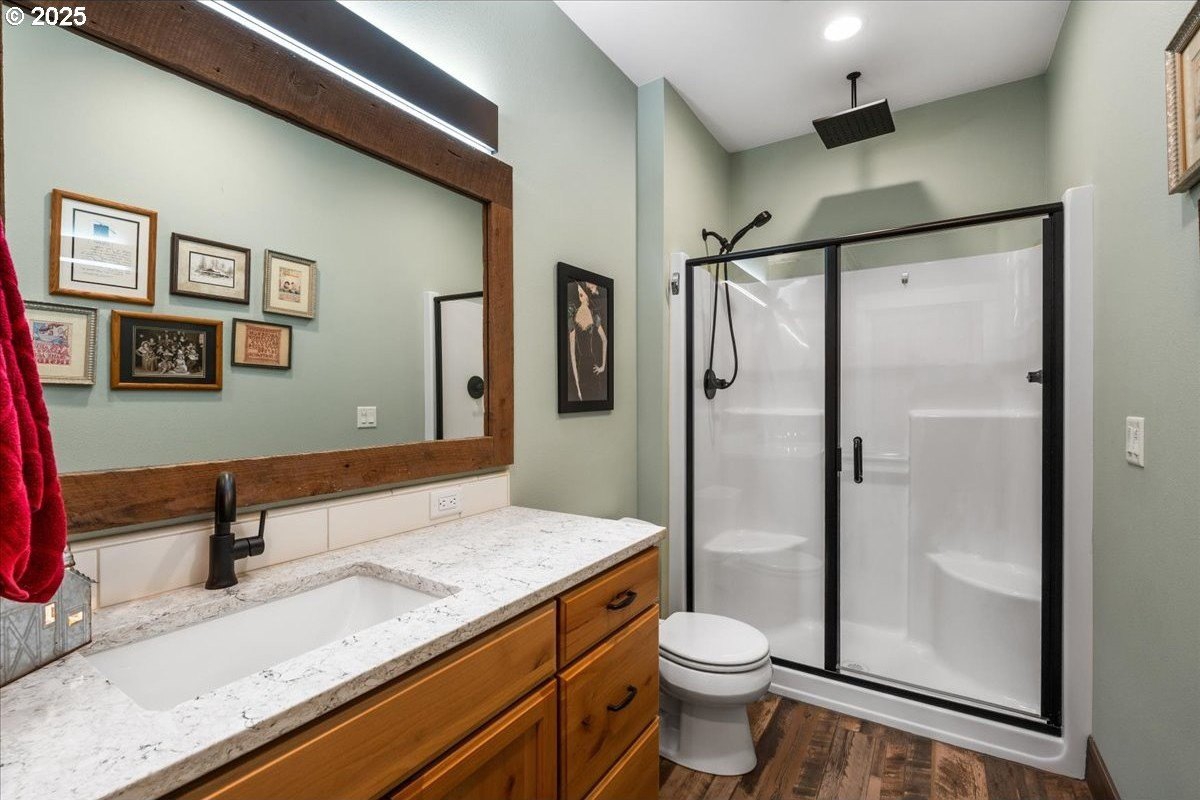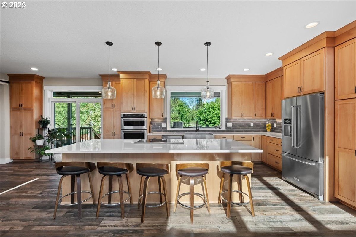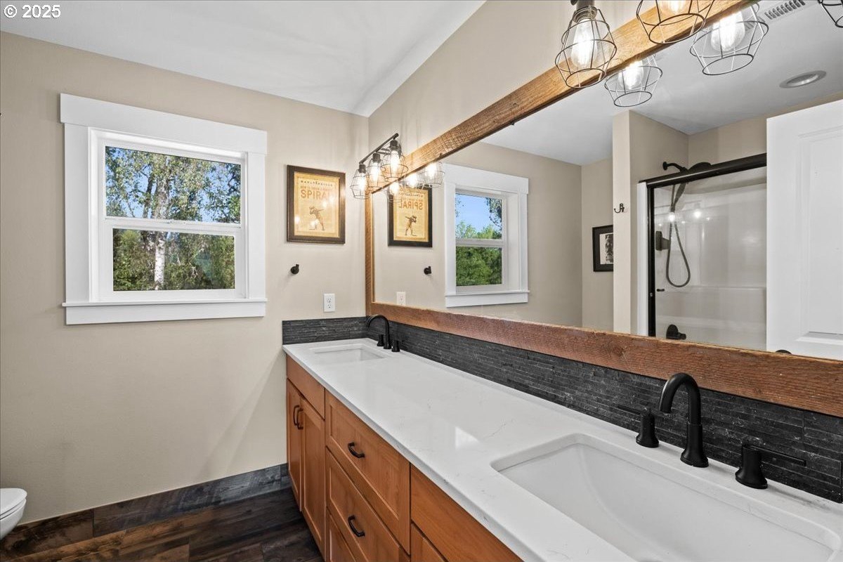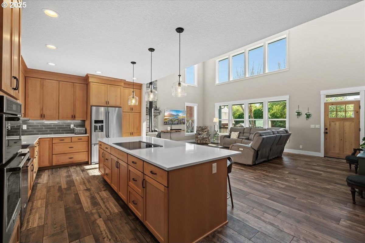 Gorgeous custom craftsman home with in-law quarters on a beautiful private level 7.77 acres of land. You will be overjoyed when you drive up to this property, with the flourishing fruit orchard, bridge overlooking the year-round creek,36x72 4 bay shop, barn & pretty blooms. 360 views of trees, farmland & rolling hills surrounding this property. The welcoming covered front porch offers a warm place to drink your coffee & watch the kids & animals run & play. Step into the 26 ft entry way with open stairwell, an abundance of sun filled windows & a dramatic floor to ceiling stone wall with custom reclaimed wood mantel & cozy wood stove to enjoy all year round. Tastefully designed chefs kitchen features quartz countertops, island with breakfast bar, stainless steel appliances, induction cook top, butlers pantry with wine cooler, & a lovely picture window above the kitchen sink letting the outside in. Slide open the barn door to the laundry/ mud room with utility sink, built in storage cabinets & door to the backyard. Main floor master suite boasts high ceilings, spacious walk in closet, double sink vanity, soaking tub & custom tile shower with bench seat. The beautiful iron rod stairwell leads you up to the second floor with 3 generous sized bedrooms all with closet organizers & a large bonus room with wet bar & walk in closet. The attached separate in law quarters has high ceilings & a beautiful open concept design with hickory cabinetry in the kitchen, quartz countertops, propane gas cooking & stainless steel appliances. High ceilings in living room with gas fireplace with stone surround & a glass door opening up to a private covered deck. Primary bedroom has a built-in closet & sliding glass door out to the deck. Second bedroom has a nice closet & a stackable washer & dryer. The scenery of the property is right out of a story book with the private meadow overlooking Dairy creek, plenty of pasture to enjoy farm animals, & wonderful shop to store your RV, boat & toys!