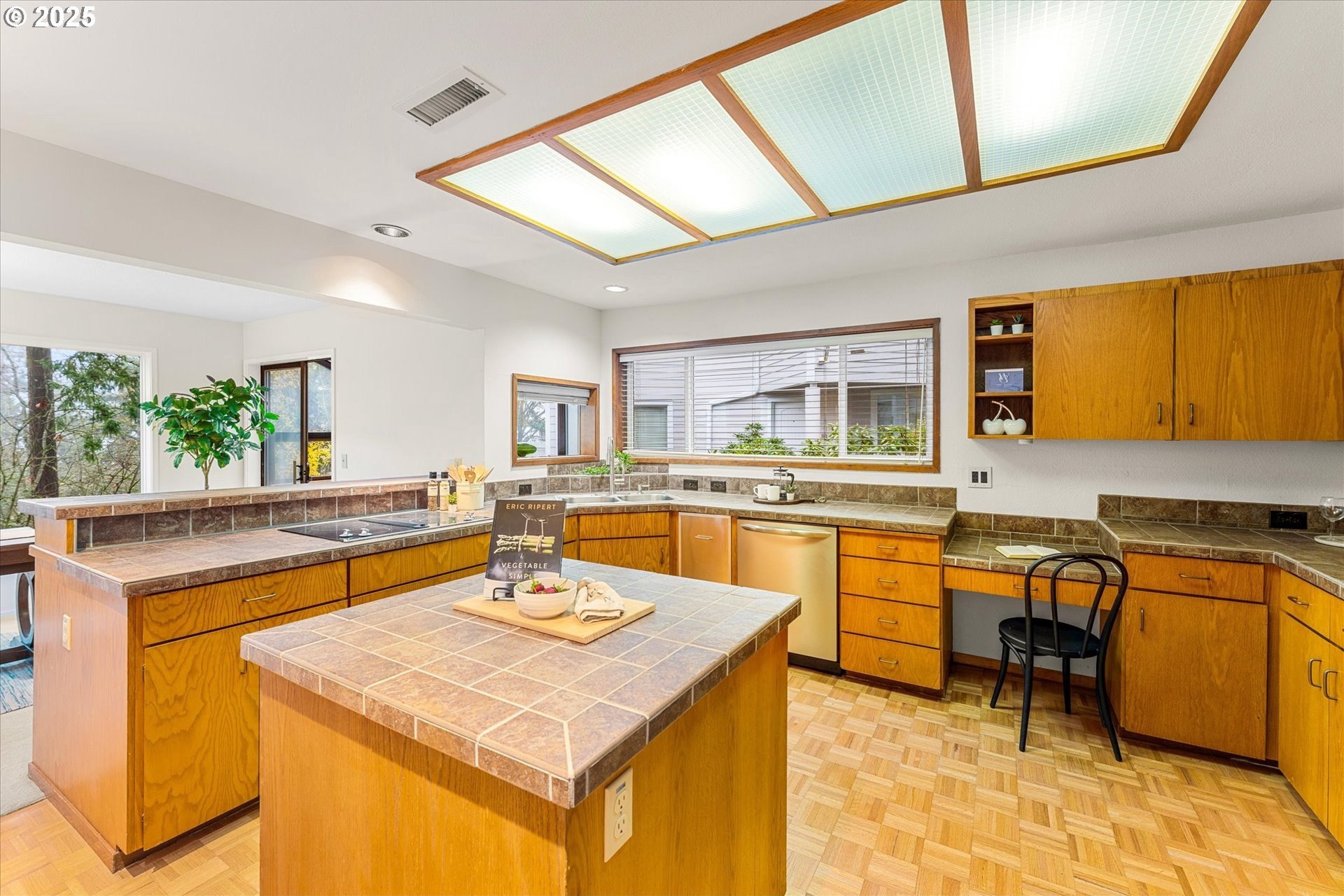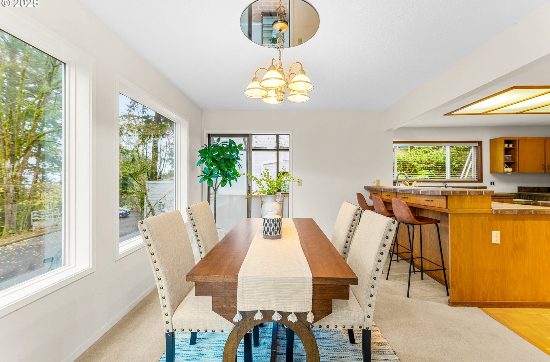 48 Eagle Crest #3E sits atop Lake Oswego's Mountain Park with views of mountains, wooded green space and city scape. Inside is a well thought out 1,545 sq ft floor plan that lives large. The island kitchen with eating bar has generous storage and ample counter space that connects to dining, a versatile sunroom, and a living room with wall to wall windows and a private patio. The primary suite can accommodate a king bed plus a desk or sitting area and includes a private bath and walk-in closet. Deeded one-car garage, nearby owner/guest parking, and a separate storage room. Interior finishes present a straightforward path to personalize and add value. This is an ideal location for quick 10 minute access to Portland and is in close proximity to several shopping and dining options. Two associations: Park Place (dues include water, sewer, trash, exterior maintenance, management, master insurance; Building 3 exterior project completed 2025 with new roof, gutters, siding, paint, select windows/doors-buyer to verify) and Mountain Park (rec center with pools, spa, gym, studios, indoor courts, trail network). In-unit HVAC, water heater, and washer/dryer hookups. No rental cap. Buyer to verify all HOA amenities, services, and dues.