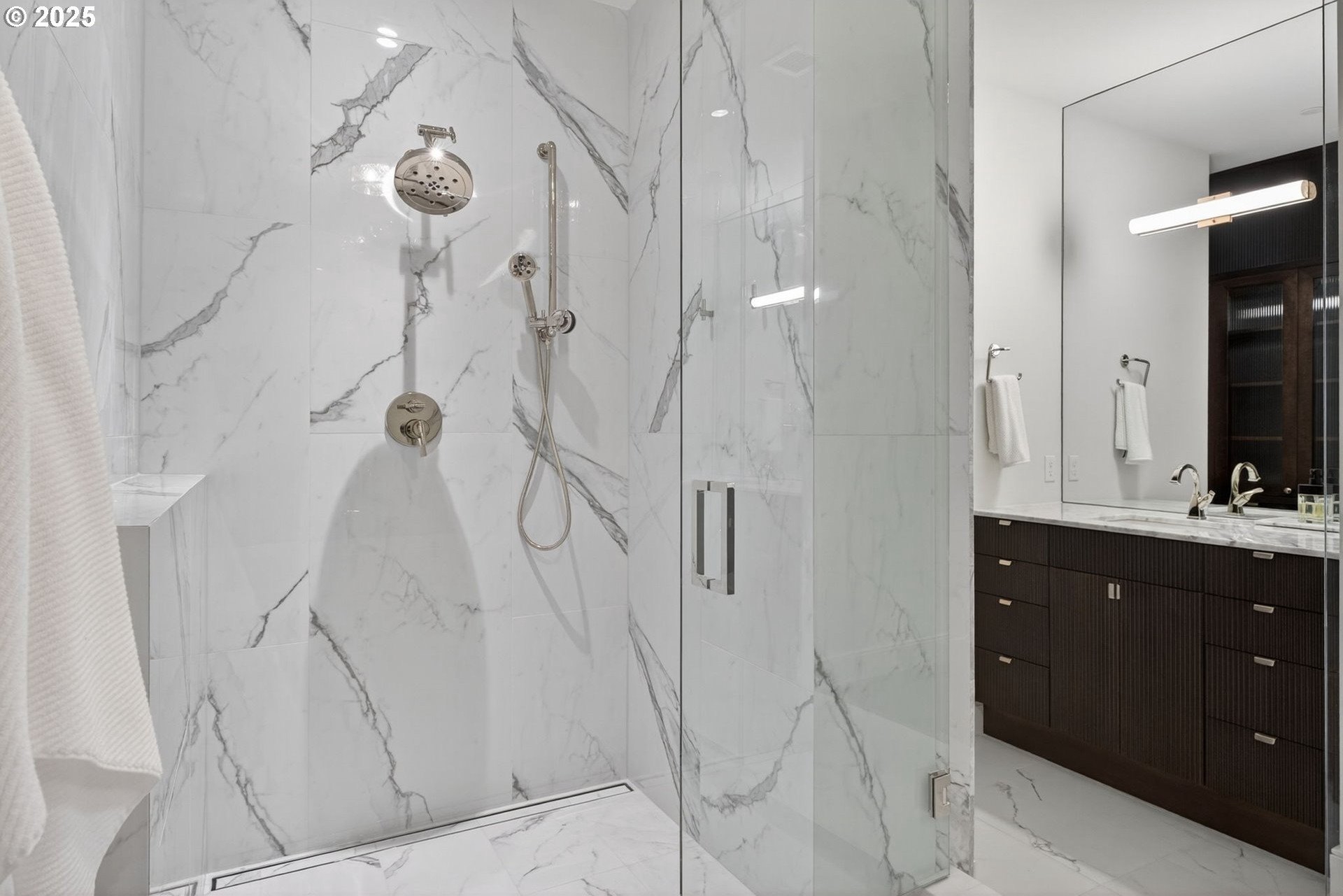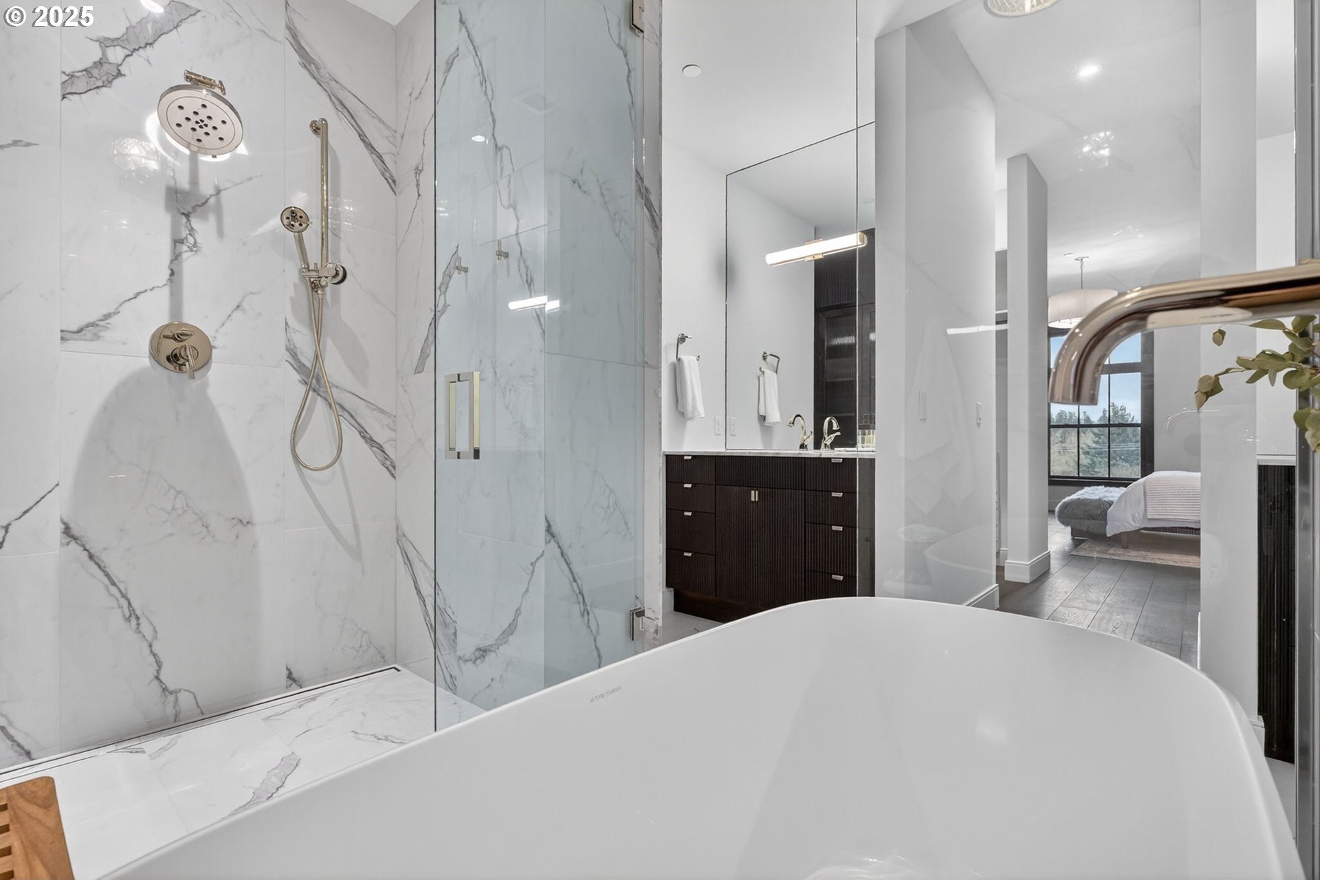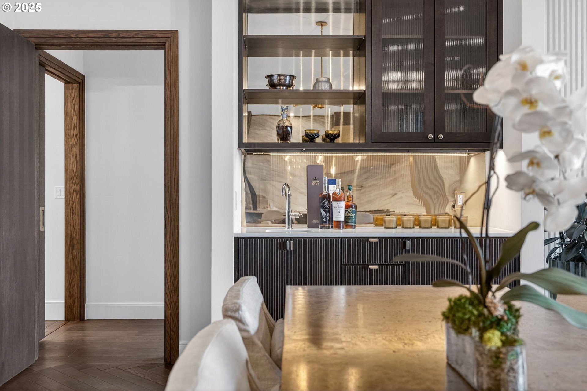 Condo living in the spectacular, custom Frances in the coveted First Addition neighborhood located adjacent to downtown Lake Oswego village. Just blocks to recreation, cafes & shopping. This plan features 2 bedroom suites, chef & prep kitchens, the flex space can be a library or office or other use. Enjoy a large terrace. Frances has thoughtfully designed luxury materials, such as book matched marble slab in the kitchen from the counter to the ceiling, quartz countertops, custom cabinetry and built-ins by a local craftsman. European white oak flooring with a dark walnut stain throughout the home, the living and dining room have a herringbone pattern, the hallways and bedrooms are wide plank. The living area has a built-in wet bar. Appliances include a pro series sub zero refrigerator, 2 dishwashers, 48" Wolf range and double ovens. The primary bedroom has 2 walk-in closets, double vanities, a porcelain clad wet room with a soaking tub and access to the terrace. The secondary bedroom has a walk in closet, porcelain step-in shower and custom vanity. The community shared amenities include guest suite, rooftop terrace & residence lounge, gym & sauna, art-infused lobby, sensory garden with sculpture art in water feature. Each condominium home comes with one parking space with a car lift and an extra storage space. Enhance your sense of community and healthy living! Six months of HOA fees covered by the seller.