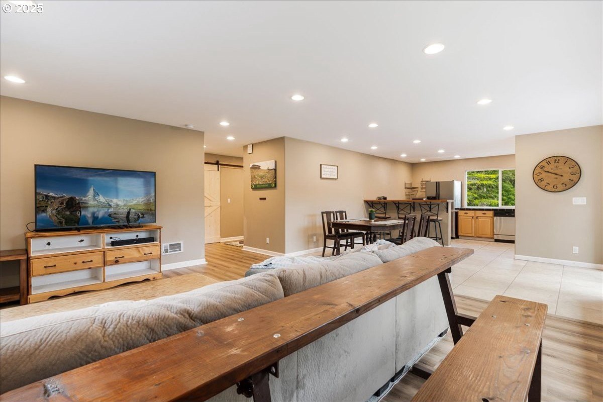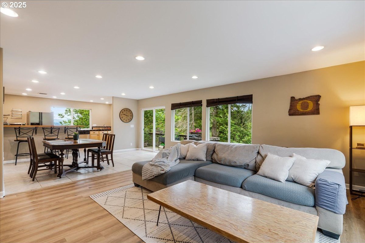 Perched on a quiet hill in the heart of Rainier, this inviting home offers the perfect blend of privacy, space, and comfort just minutes from town, yet elevated above it all for a peaceful, scenic setting. This thoughtfully designed home features a functional layout, tasteful updates, and views that make everyday living feel like a retreat. Step inside to a spacious entryway with built-ins that leads into an open-concept main living area filled with natural light. Enjoy updated luxury vinyl plank flooring throughout, a widened staircase, and fresh carpet in the lower-level bedrooms. The large dining area opens to a wraparound deck with peekaboo Columbia River views-perfect for relaxing or entertaining. The kitchen offers a seamless layout with tile and butcher block countertops, a garden window with river views, and a bar-height island for casual dining. The primary suite rests on the main level and includes large windows, a comfortable walk-in closet with room for storage, and a private ensuite bathroom with dual sinks and a full shower. An oversized sliding barn door adds charm and function. Downstairs, you'll find two additional bedrooms with fresh carpet, an updated full bath, and the potential for multigenerational living with ground level access. Outside there is a fully fenced garden space with space for planting or pets, and the extra-deep tandem attached garage provides ample parking, storage, or workshop potential. There's also a large driveway with plenty of room for vehicles and guests. Enjoy the rare combination of being centrally located in town while tucked away on a quiet hilltop for added privacy and peace. This is a unique opportunity to own a move-in ready home in a charming Northwest setting. Opportunity to purchase the adjoining property MLS#346683256, which offers an additional potentially buildable lot, bringing the total to approx. 0.36 acres if sold together.