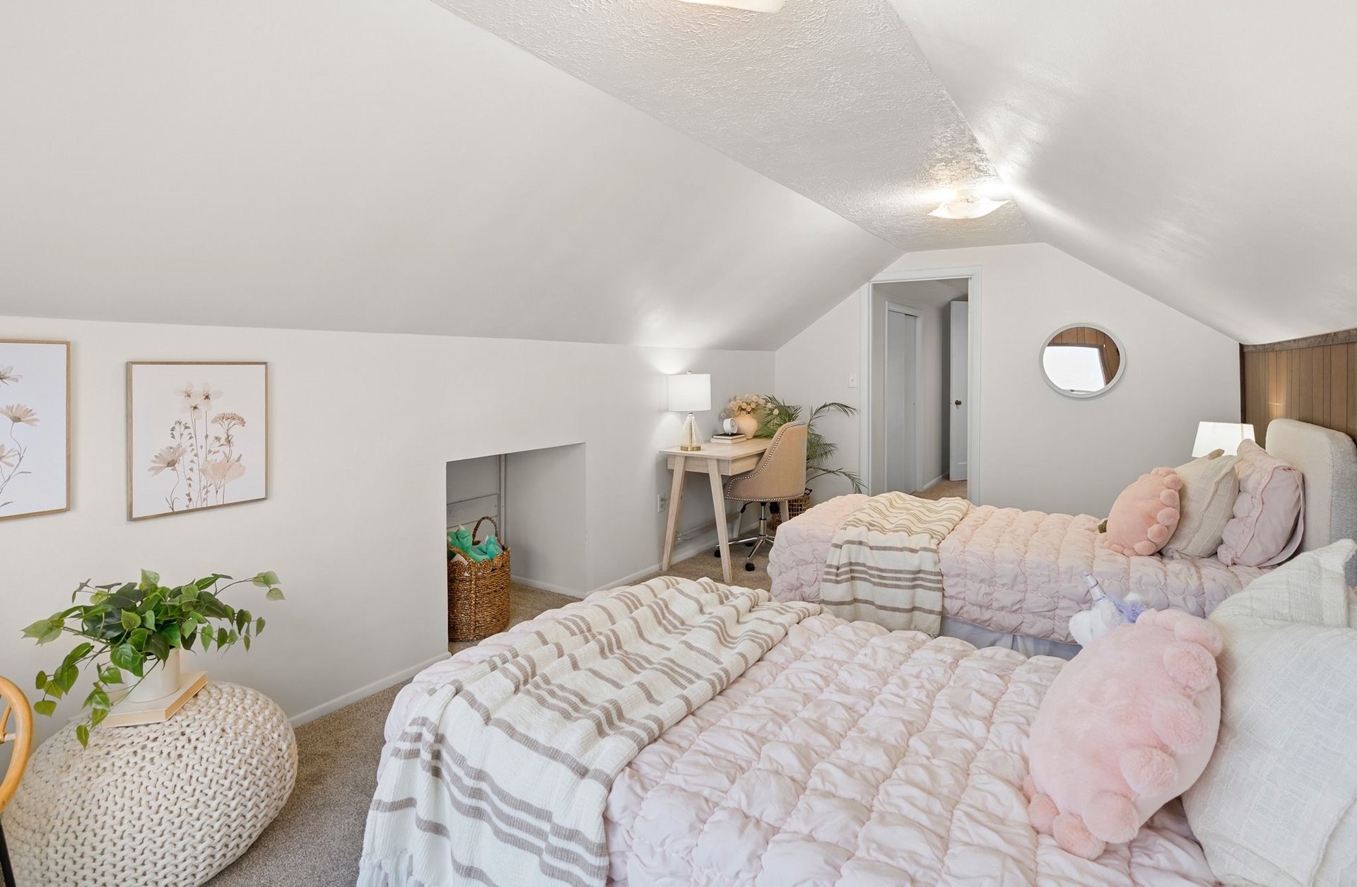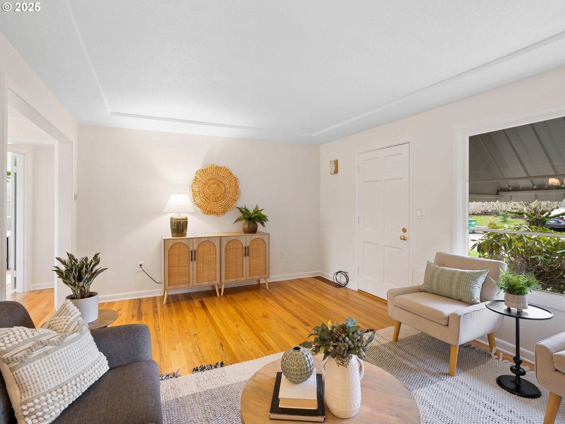 Fall in love with the timeless charm of this 1950s traditional, perfectly nestled on a tree-lined NE Portland street. This move-in-ready treasure has been lovingly updated from top to bottom with a new roof, fresh interior and exterior paint, stylish lighting, a new deck, and professionally landscaped grounds. With four bedrooms and three levels of living, there's space to grow, gather, and relax.The main floor welcomes you with an open living room anchored by a wood-burning fireplace and adjacent to a traditional dining room that opens onto the sweeping back deck. Two main floor bedrooms are tucked away alongside the refreshed full primary bath. The upper level is fun and lofted, featuring plush new carpet on the stairwell and in both upstairs bedrooms, an ideal place to catch sunsets from your window!The lower level offers a generous living space with a second wood-burning fireplace, laundry and mechanical room with storage, plus a bonus workshop or craft room and a half bath. Soft, calming tones throughout create a welcoming backdrop for any style. The attached garage, with extra-tall ceilings, connects directly into the kitchen or backyard, making everyday living easy.Step outside to a deep backyard with mature trees, a cozy outdoor fireplace, and a thoughtful mix of hardscape and landscaping, perfect for entertaining or unwinding. Make this the home where your New Year begins!