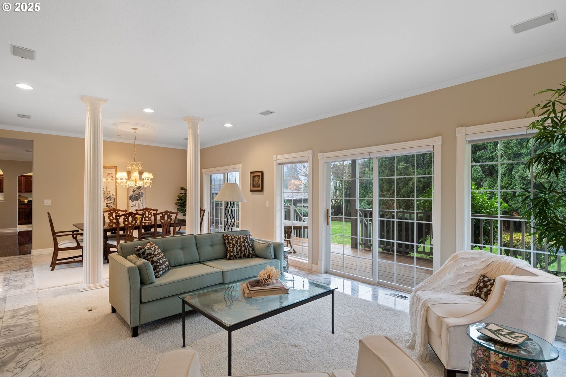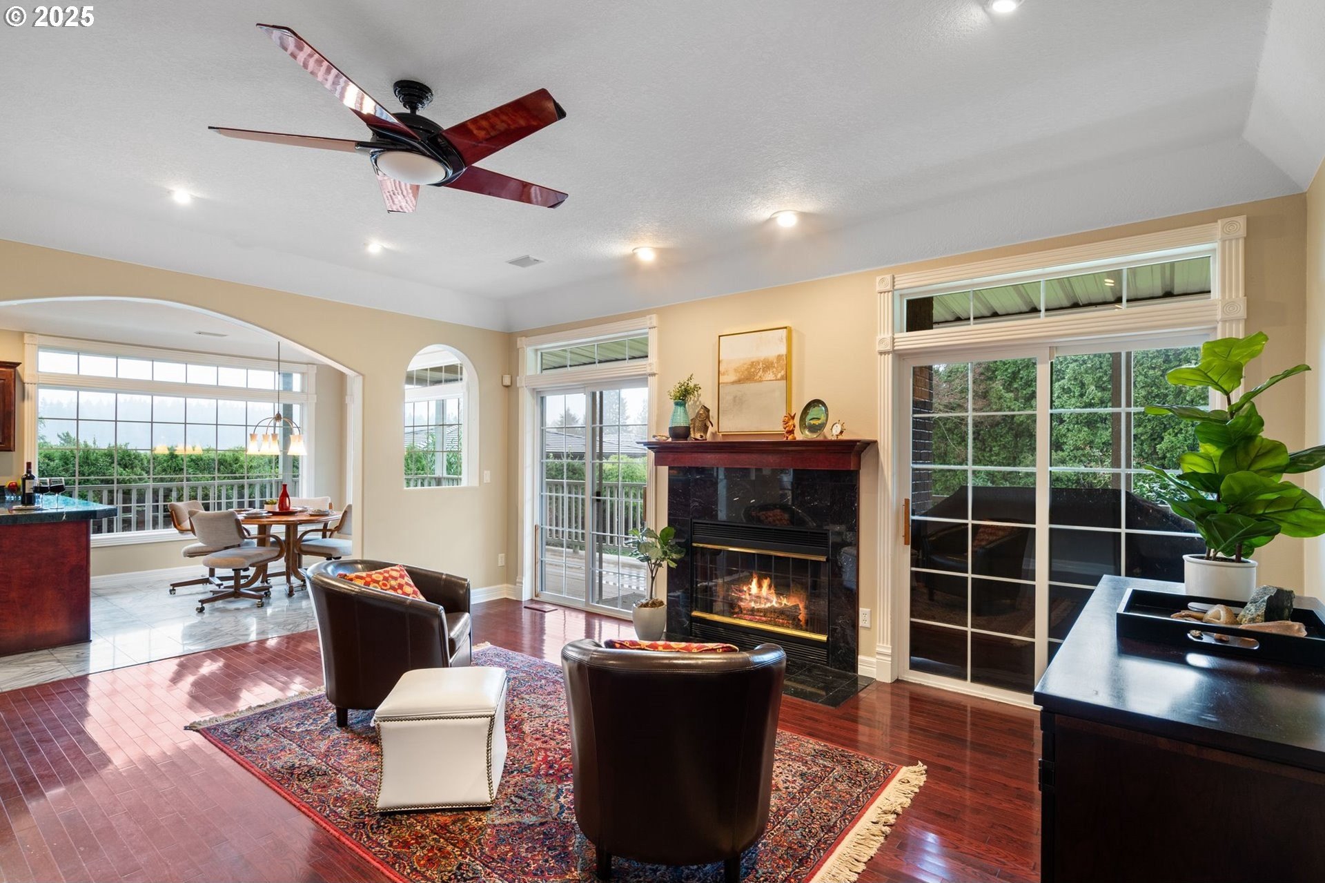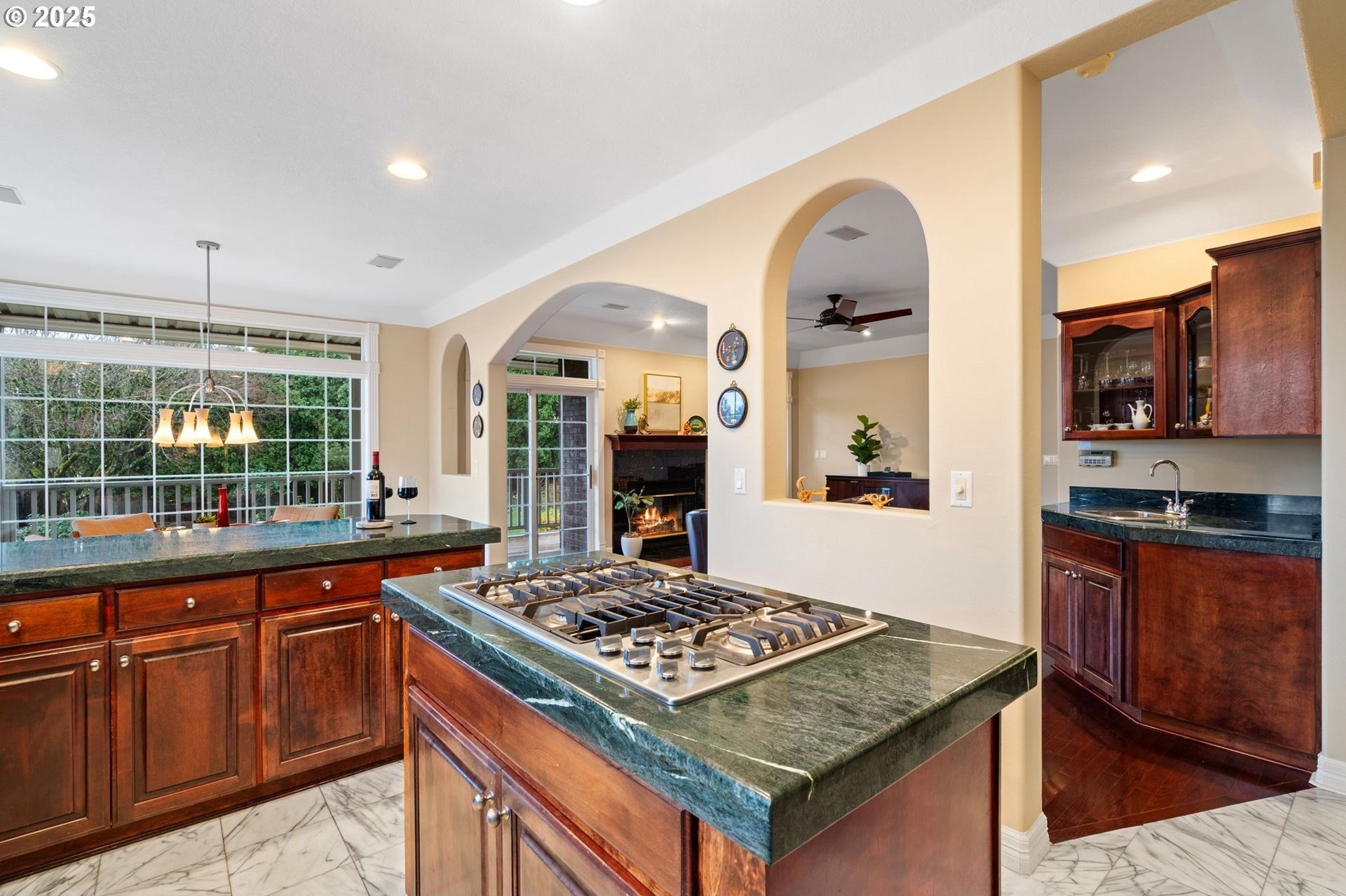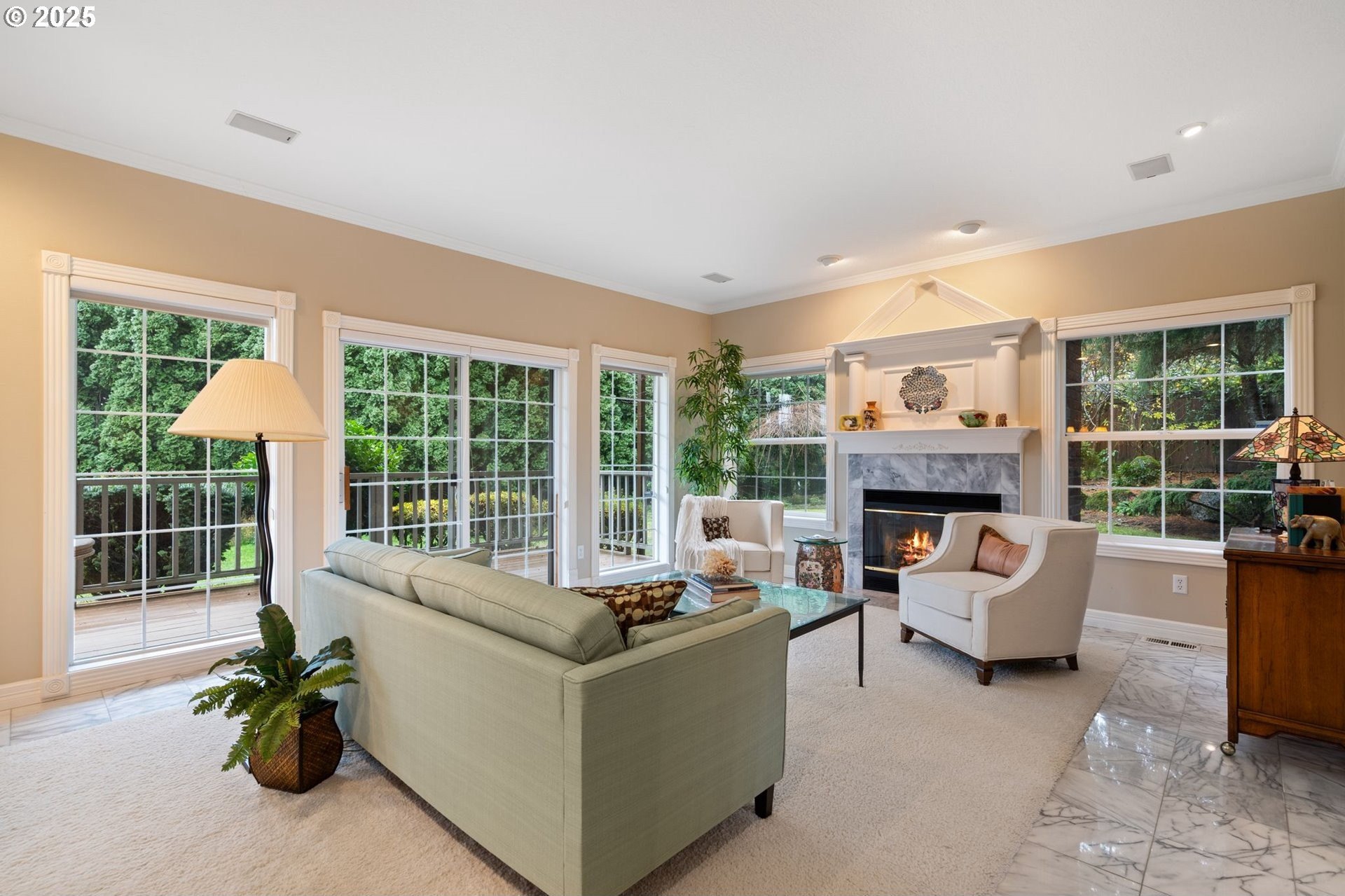 Step into timeless beauty in this spacious 3,561 sq ft home, perfectly situated on a level 0.37-acre lot with sweeping views of Lacamas Lake, the surrounding mountains, and lush evergreens. This residence offers both grandeur and comfort, starting with a dramatic double staircase in the entryway and a wraparound deck on two levels-ideal for morning coffee or evening stargazing.The gourmet kitchen is a chef's dream: granite countertops, cherry wood cabinetry, stainless steel appliances, and tons of cupboard space. Whether it's a weekday breakfast or a weekend gathering, this kitchen was designed for connection and convenience.The main level boasts a spacious "junior" primary suite with its own en-suite bath, perfect for guests or multigenerational living. Upstairs, the true primary suite is a serene retreat featuring a cozy fireplace, expansive en-suite bath, and access to the upper deck. A massive bonus room with a cathedral window offers the perfect place for movie nights, homework hangouts, or a future game room.You'll love the elegant mix of marble, hardwood, and designer finishes throughout. The bright and inviting sunroom is fully enclosed, offering year-round enjoyment regardless of the weather.Located in the coveted Lacamas Shores neighborhood, residents enjoy exclusive access to a private park, recreational amenities, boat launch, and the Heritage Trail. With its welcoming sense of community, peaceful surroundings, and access to some of the region's most respected schools, this home offers something truly special for every stage of life.Lovingly maintained but lightly lived in over the years, this home offers exciting opportunities to add your own updates-and it's priced accordingly. Come experience the charm, space, and potential that awaits.