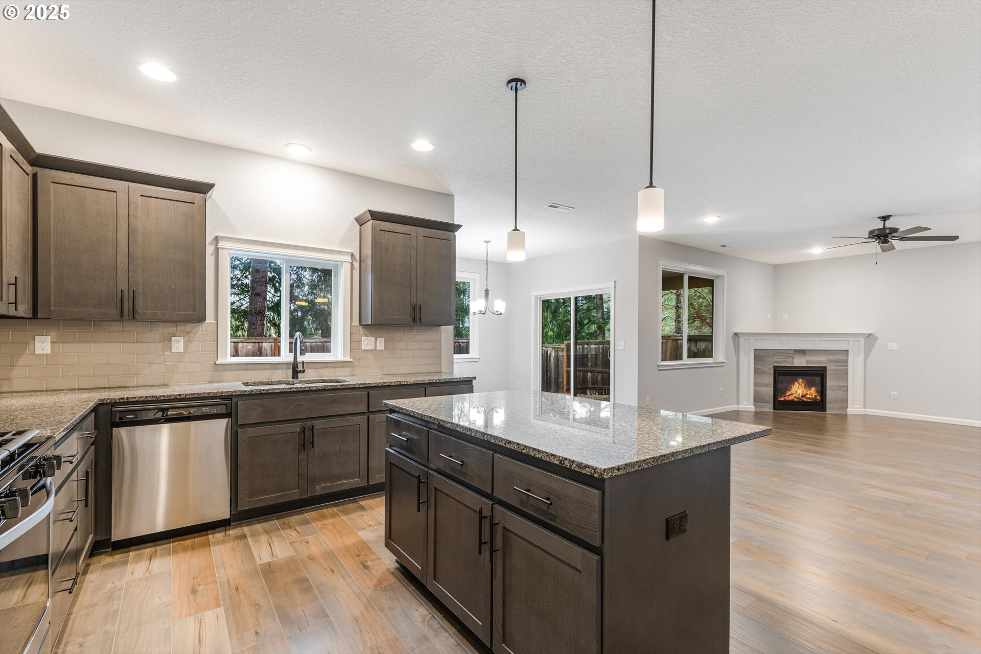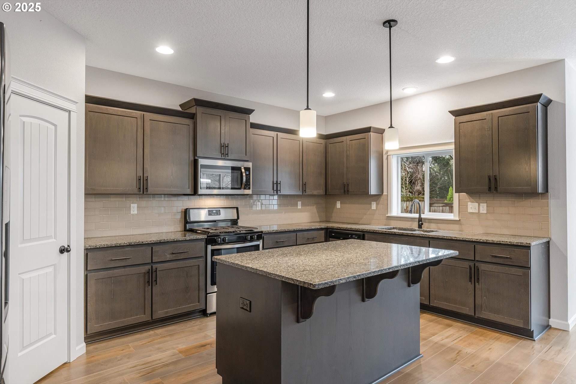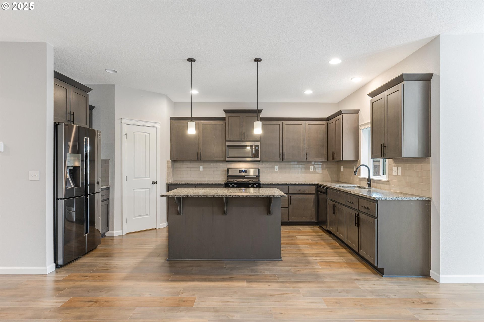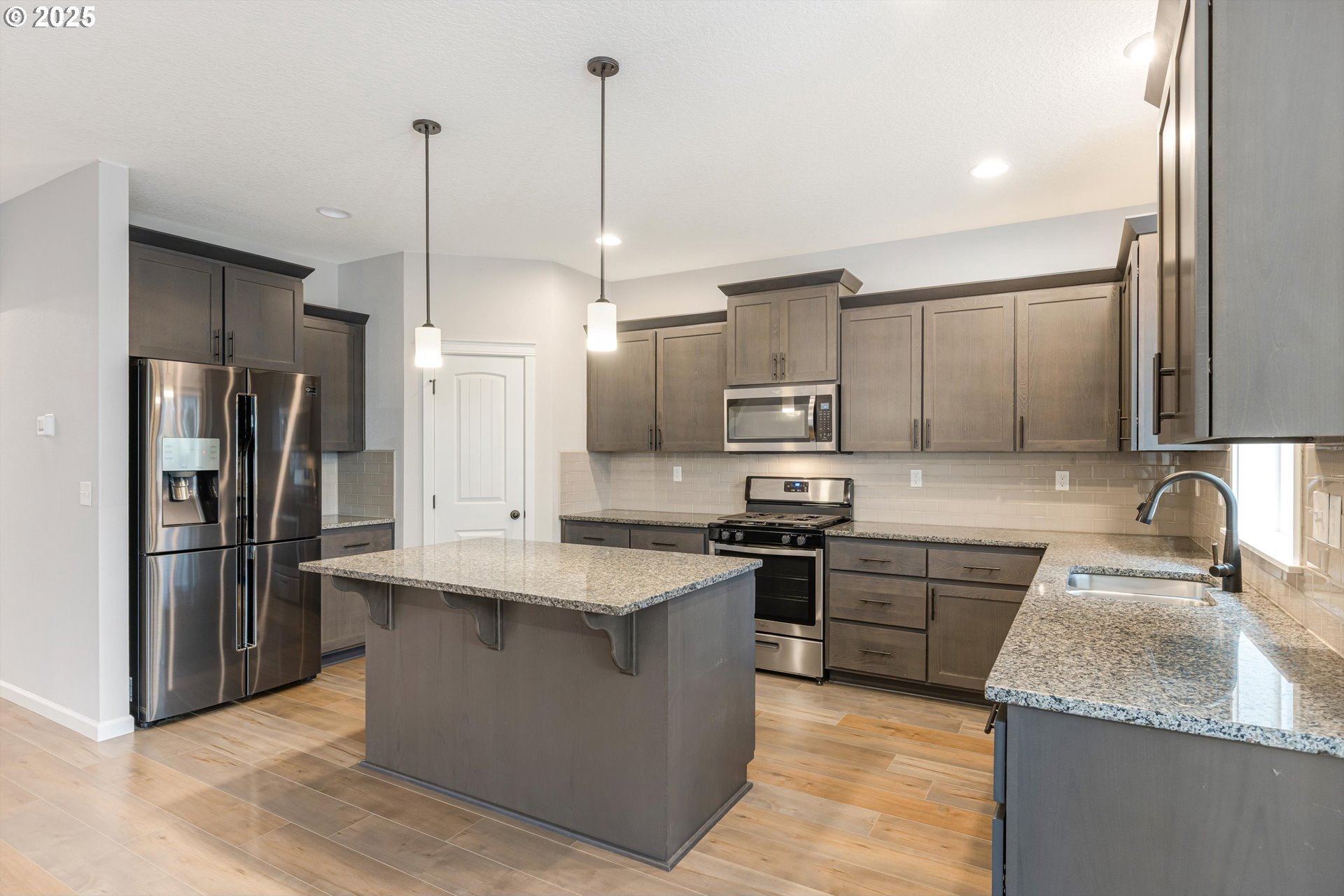 Thoughtfully designed Craftsman-style home located in the charming community of North Plains. A true five-bedroom, 2.5-bath floor plan designed for both elegance and everyday comfort. The flexible layout includes a main-level bedroom or private office complete with a closet, ideal for guests or remote work. The open-concept design is anchored by a spacious kitchen featuring granite countertops, stainless steel appliances, a large walk-in pantry and island-perfect for entertaining. Upstairs, the serene primary suite boasts a vaulted ceiling, walk-in closet, and soaking tub. Three additional bedrooms include one oversized room, ideal as a bonus or shared space. Enjoy outdoor living with a covered back patio, low-maintenance yard, and inviting covered front porch. Ideally located within walking distance to schools, parks, and amenities. With easy access to shopping, golf courses, HWY 26, Hillsboro, Beaverton, Portland and the Oregon Coast.
