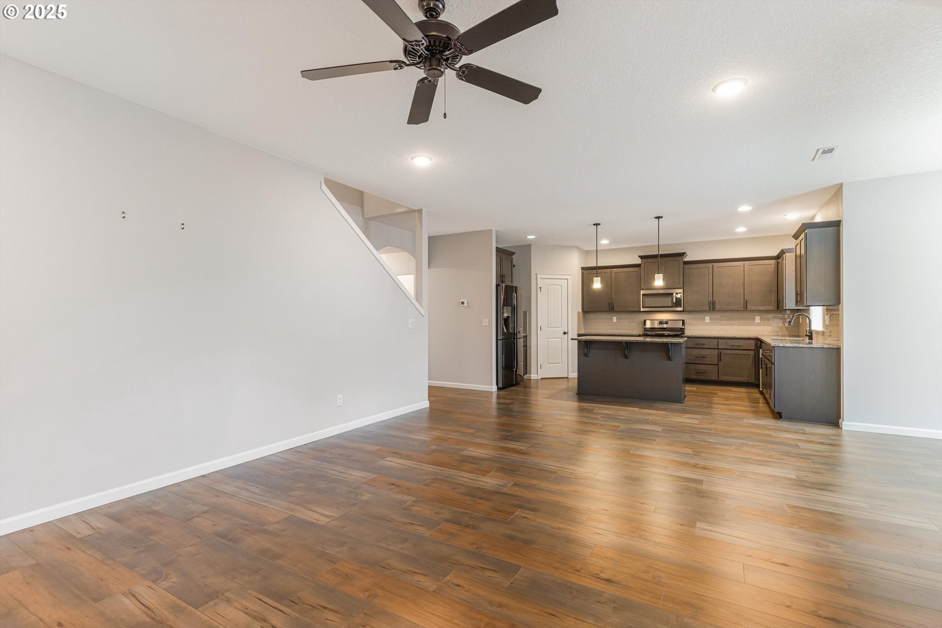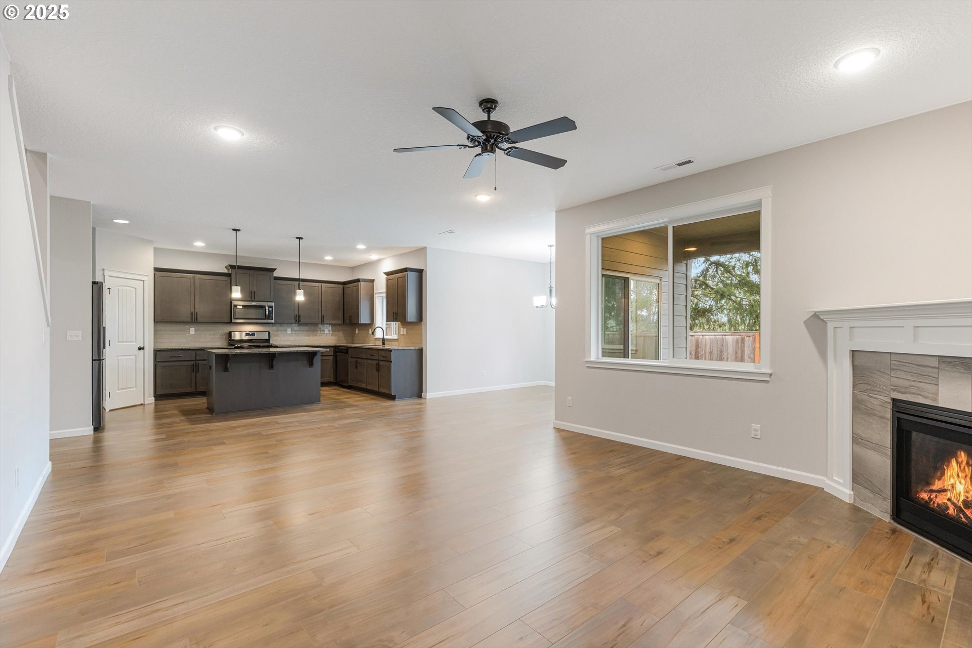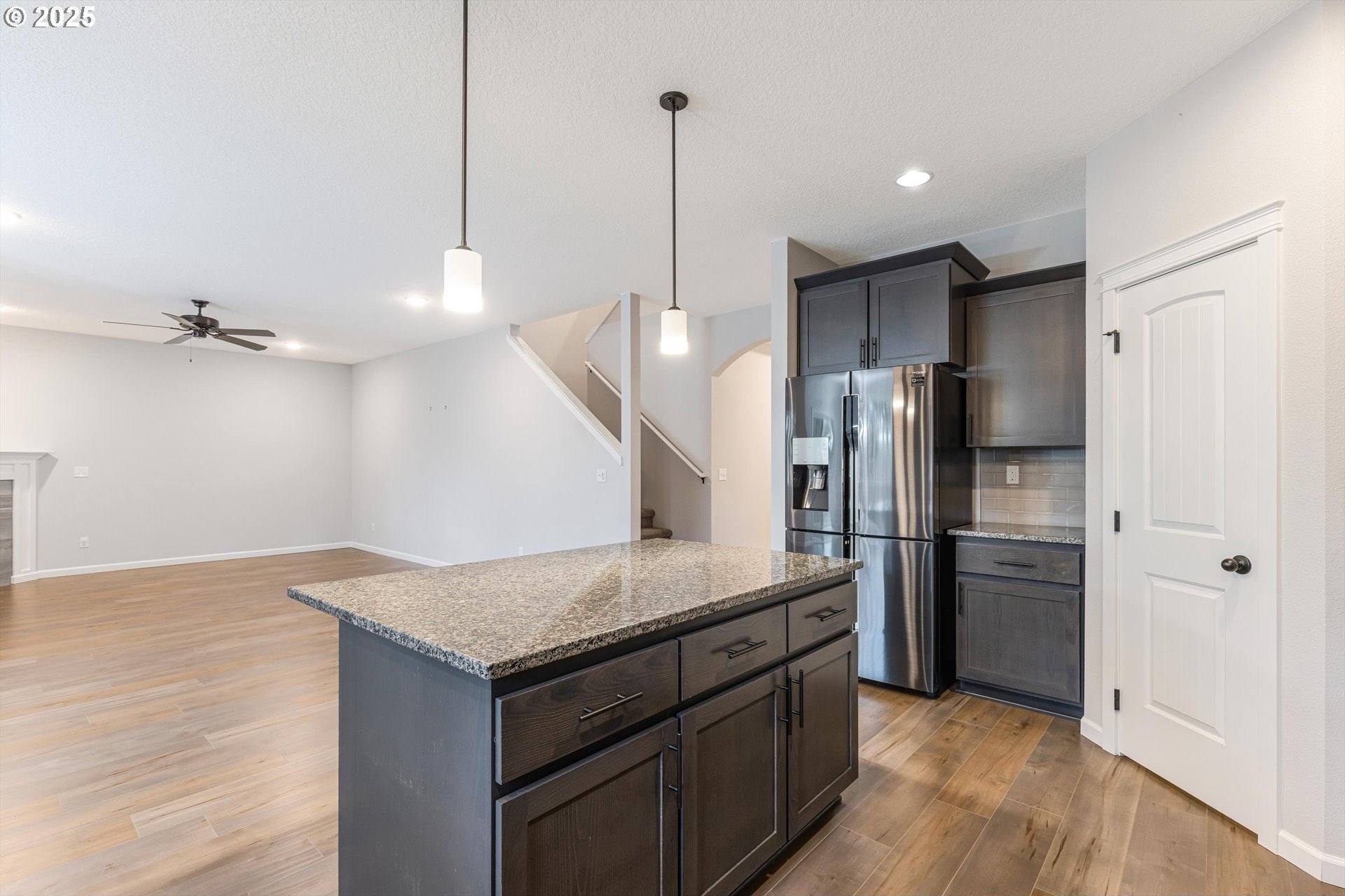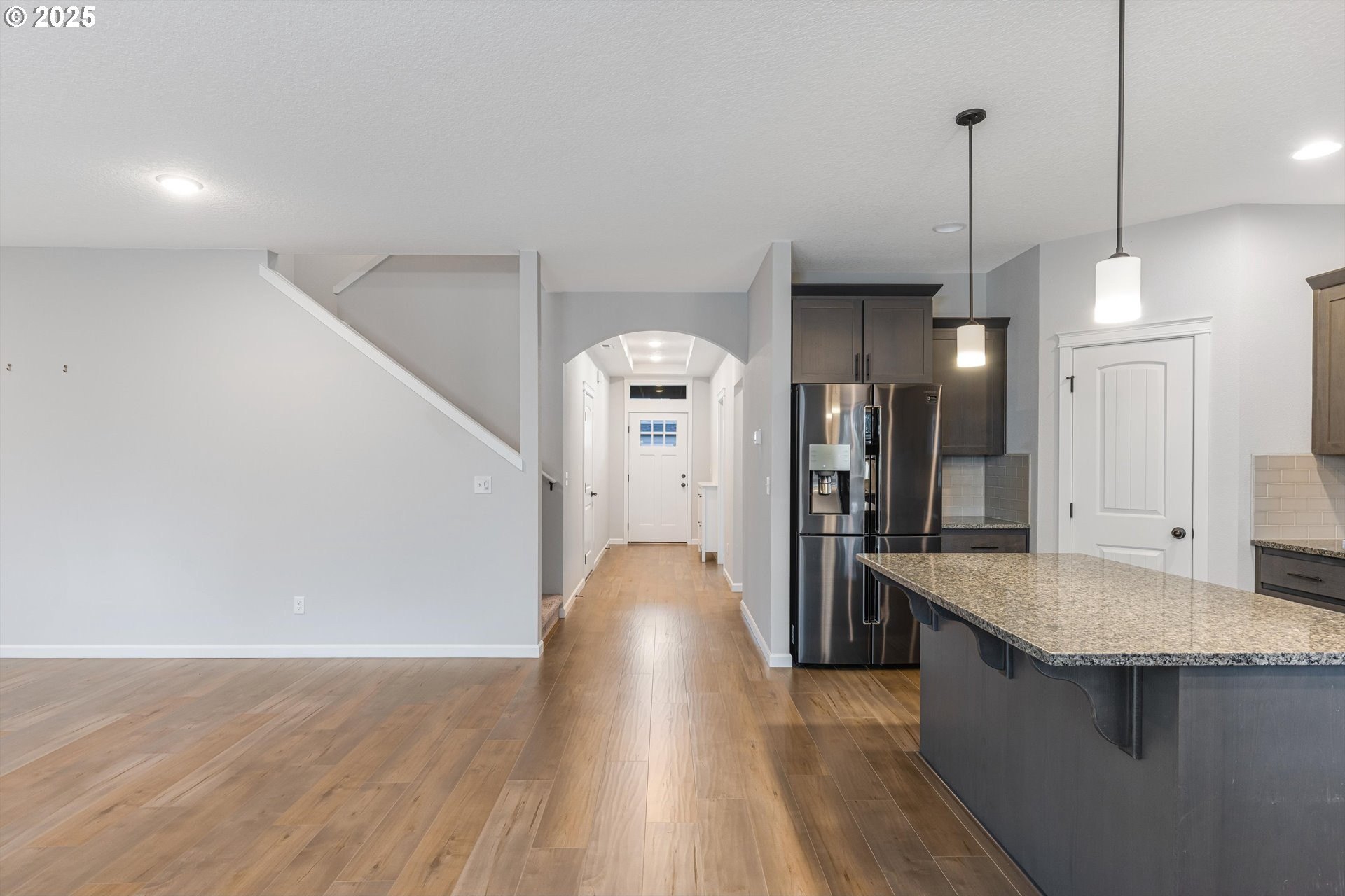 Thoughtfully designed Craftsman-style home located in the charming community of North Plains. A true five-bedroom, 2.5-bath floor plan designed for both elegance and everyday comfort. The flexible layout includes a main-level bedroom or private office complete with a closet, ideal for guests or remote work. The open-concept design is anchored by a spacious kitchen featuring granite countertops, stainless steel appliances, a large walk-in pantry and island-perfect for entertaining. Upstairs, the serene primary suite boasts a vaulted ceiling, walk-in closet, and soaking tub. Three additional bedrooms include one oversized room, ideal as a bonus or shared space. Enjoy outdoor living with a covered back patio, low-maintenance yard, and inviting covered front porch. Ideally located within walking distance to schools, parks, and amenities. With easy access to shopping, golf courses, HWY 26, Hillsboro, Beaverton, Portland and the Oregon Coast.