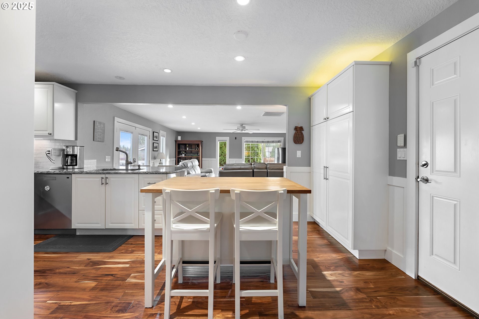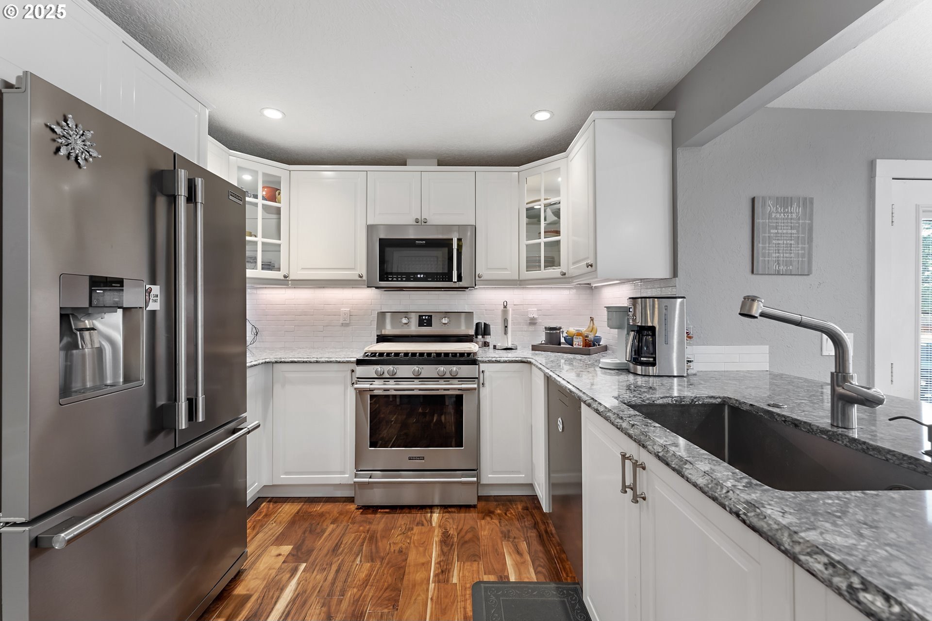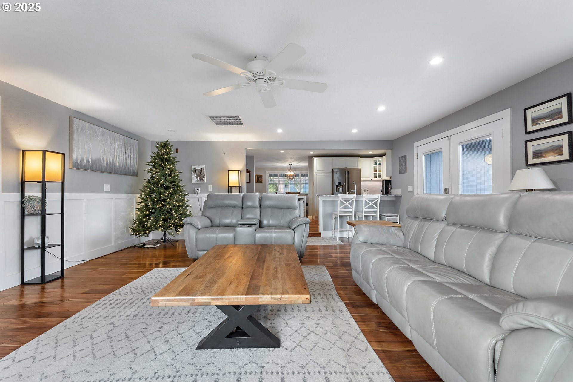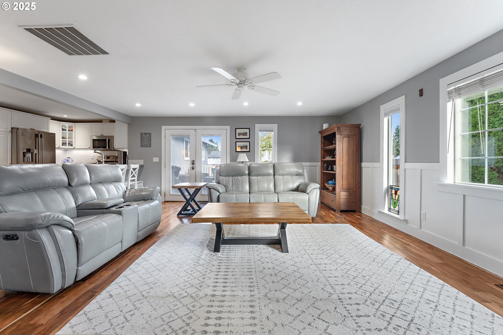 Beautiful one-level updated home on a corner lot in desirable Summerlake. $47K in 2 year old solar panels that covers almost all of your electric bill! Features a large, separate dining room and a newer kitchen with white cabinetry, soft-close drawers, side-by-side stainless steel refrigerator, quartz countertops, gas range, pantry, eat bar, and a removable island offering excellent storage and flexibility. Engineered flooring runs throughout the home. Massive family room open to the kitchen with French doors leading to a new deck. Private primary bedroom off the family room features its own ensuite walk-in closet, walk-in shower and quartz countertops. On the opposite side of the home are three additional bedrooms and one updated bathroom. One bedroom features a Murphy bed, built-in shelving, and a closet organizer. Another bedroom, currently used as an office, includes a nook that was previously a closet and can be easily converted back. Private fenced back yard with beautiful trex deck and 2 sheds. 2 car garage (1 car is used as a hair salon - easily convert back to garage) with tons of shelving. Rv parking!