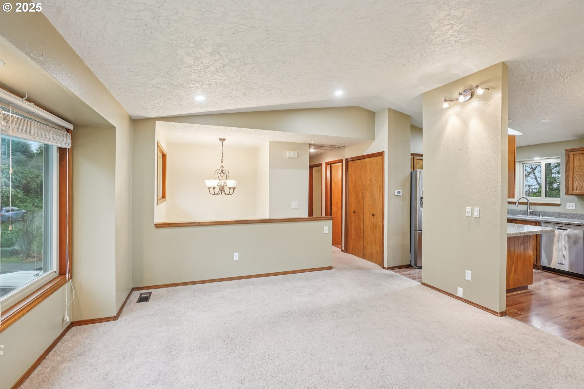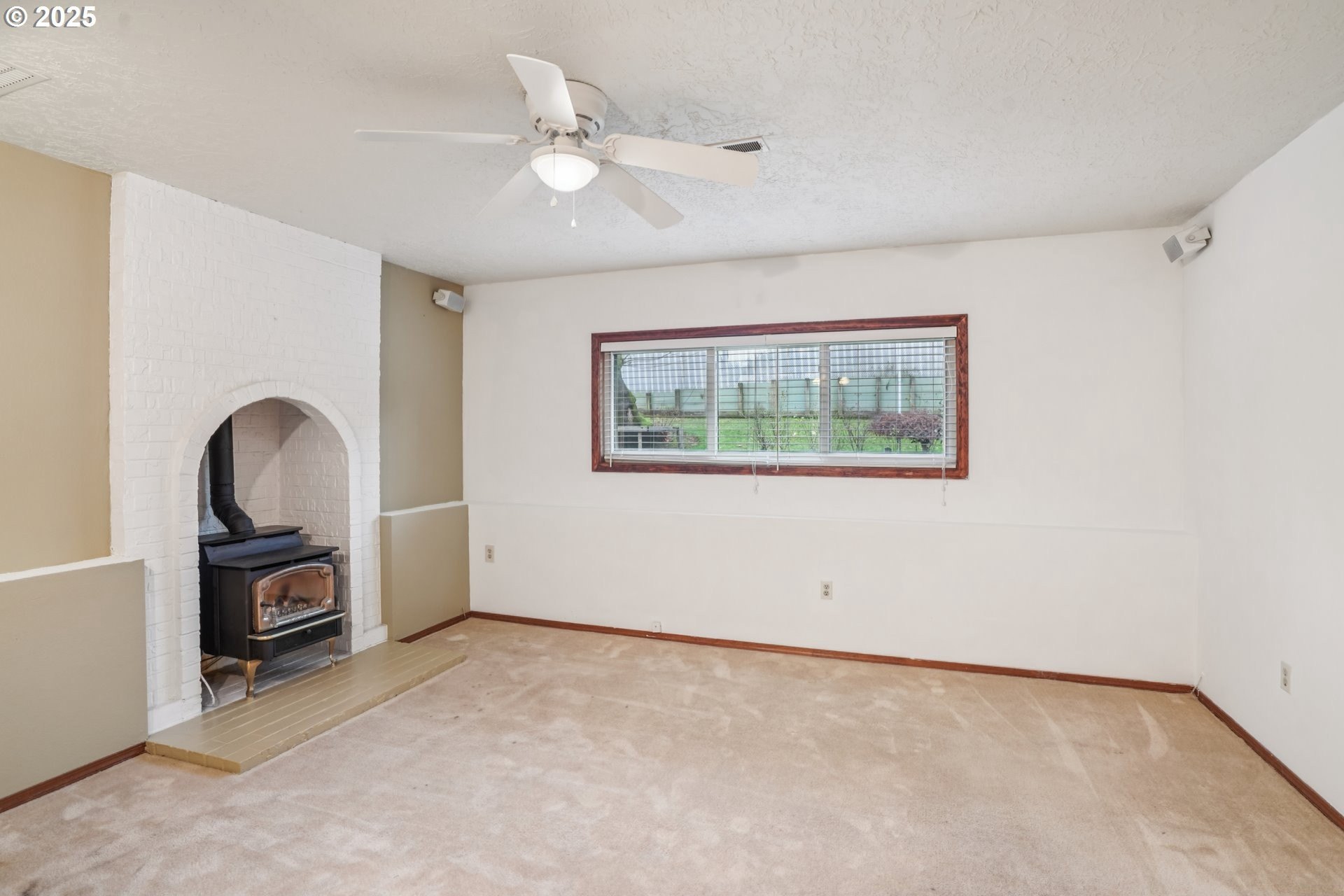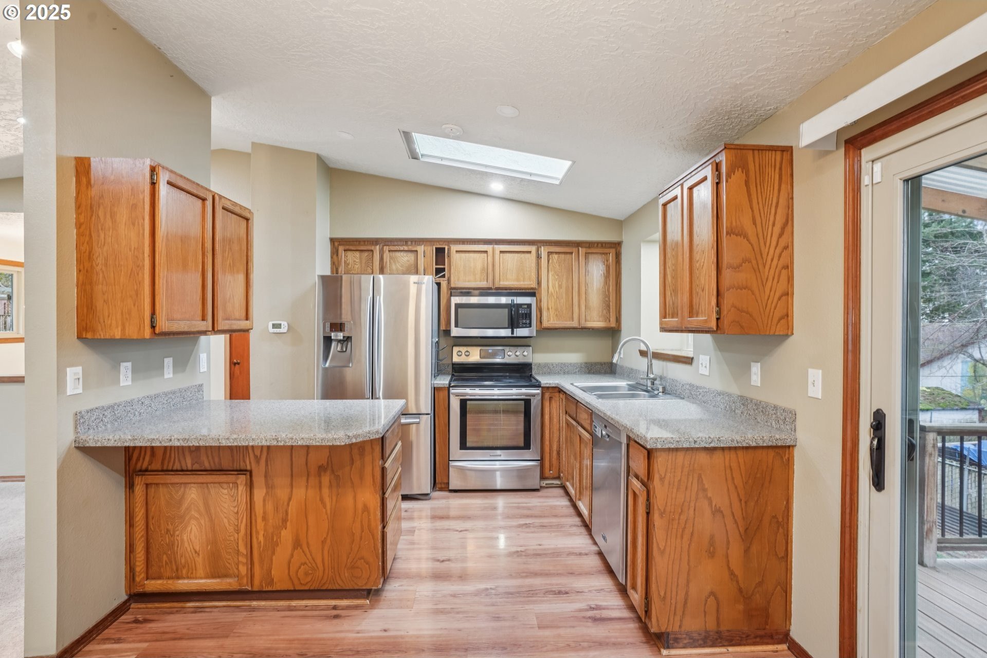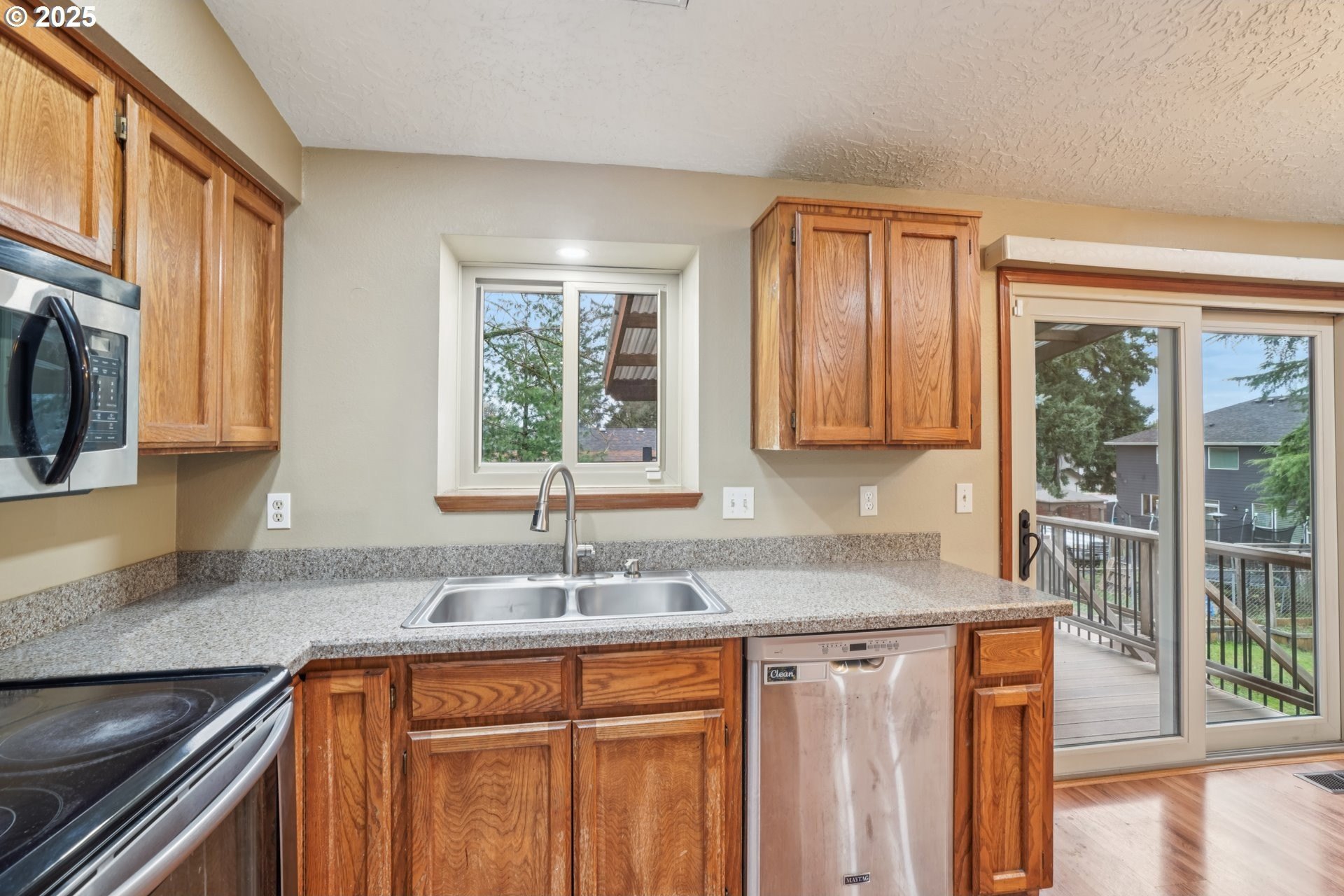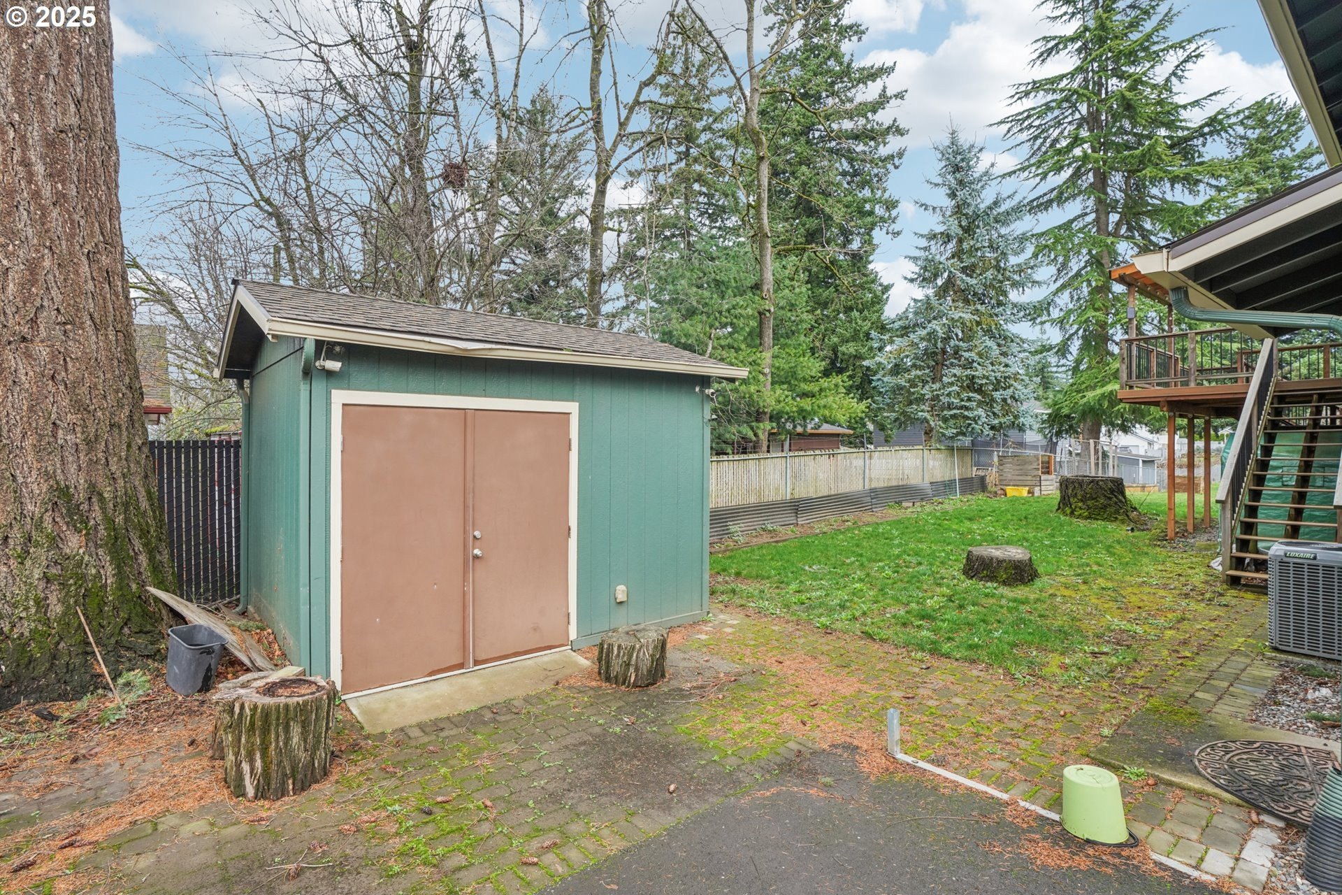 Discover this well-maintained 3-bedroom, 2-bath split-level home tucked away on a private flag lot in Portland. Built in 1985, this 1,544 sq ft residence offers a comfortable and functional layout with vaulted ceilings, a cozy gas fireplace, and generous natural light. The kitchen features quartz countertops, stainless steel appliances, an island, and wood floors-perfect for everyday living and entertaining. The primary bedroom includes a walk-in closet, ceiling fan, and fireplace for added comfort. Enjoy year-round outdoor living with a covered deck, fire pit, spacious yard, RV parking, and tool shed, all surrounded by mature trees for privacy. Additional highlights include central air, forced-air gas heat, fiber internet, double-pane windows, and an attached 2-car garage. Easy to show-appliances included. [Home Energy Score = 3. HES Report