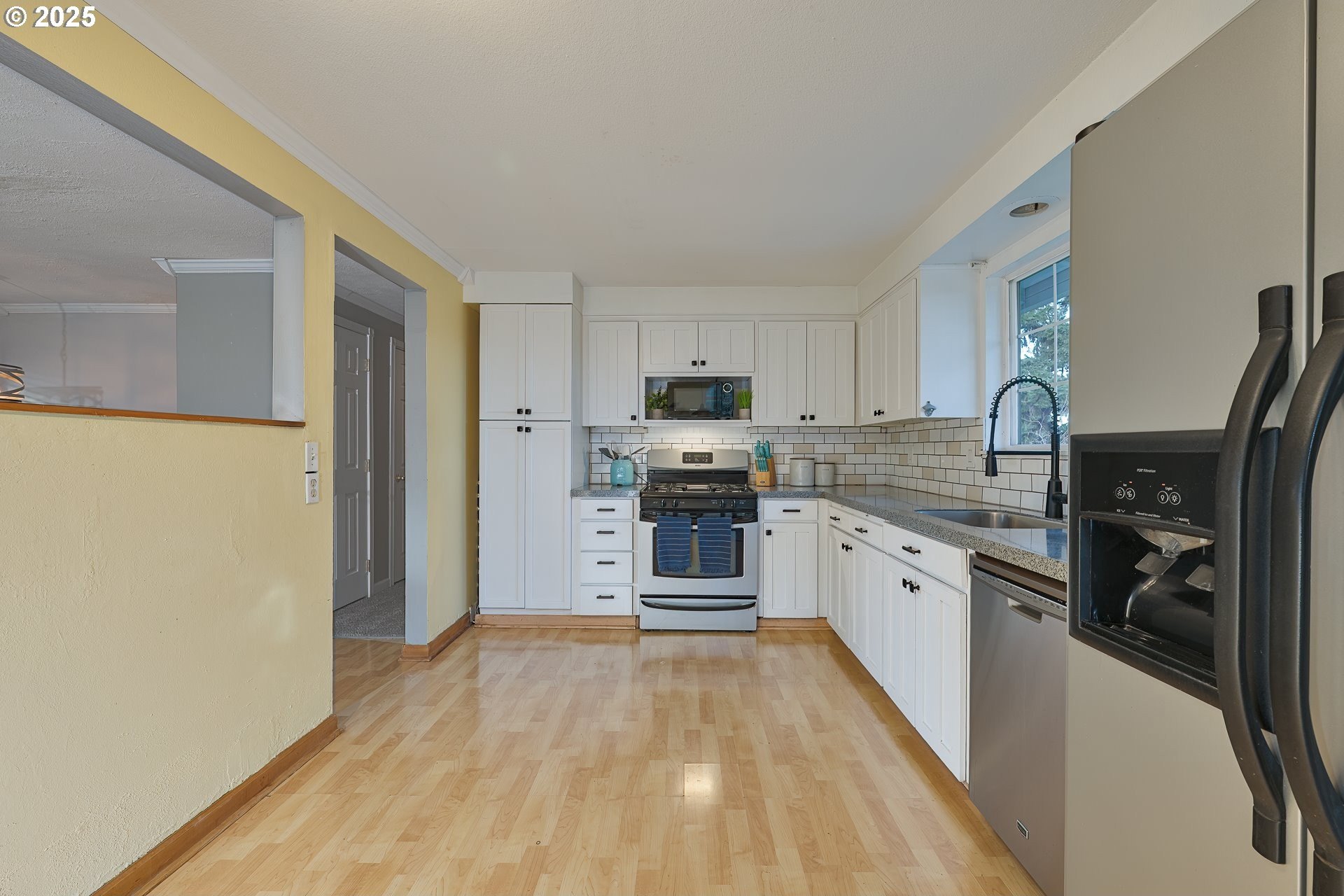 Brand new carpet throughout this impeccably-maintained split-level home with super unique, direct gated access to Champions Park! An oversized deck overlooks a large, flat yard with views of trees and Champions park-ideal for entertaining or everyday enjoyment. The upper level features three bedrooms, including the primary suite, and a gas fireplace. Also upstairs you will find the updated kitchen with stainless steel appliances and two full baths. Lower level features full bath and multigenerational potential. The lower level offers another bedroom plus another den / office space or extra living space, and a wood-burning fireplace. . Great access and proximity to schools. A two-car garage rounds out this inviting property.