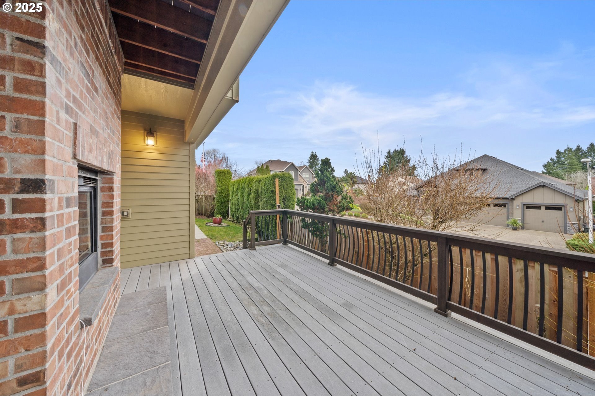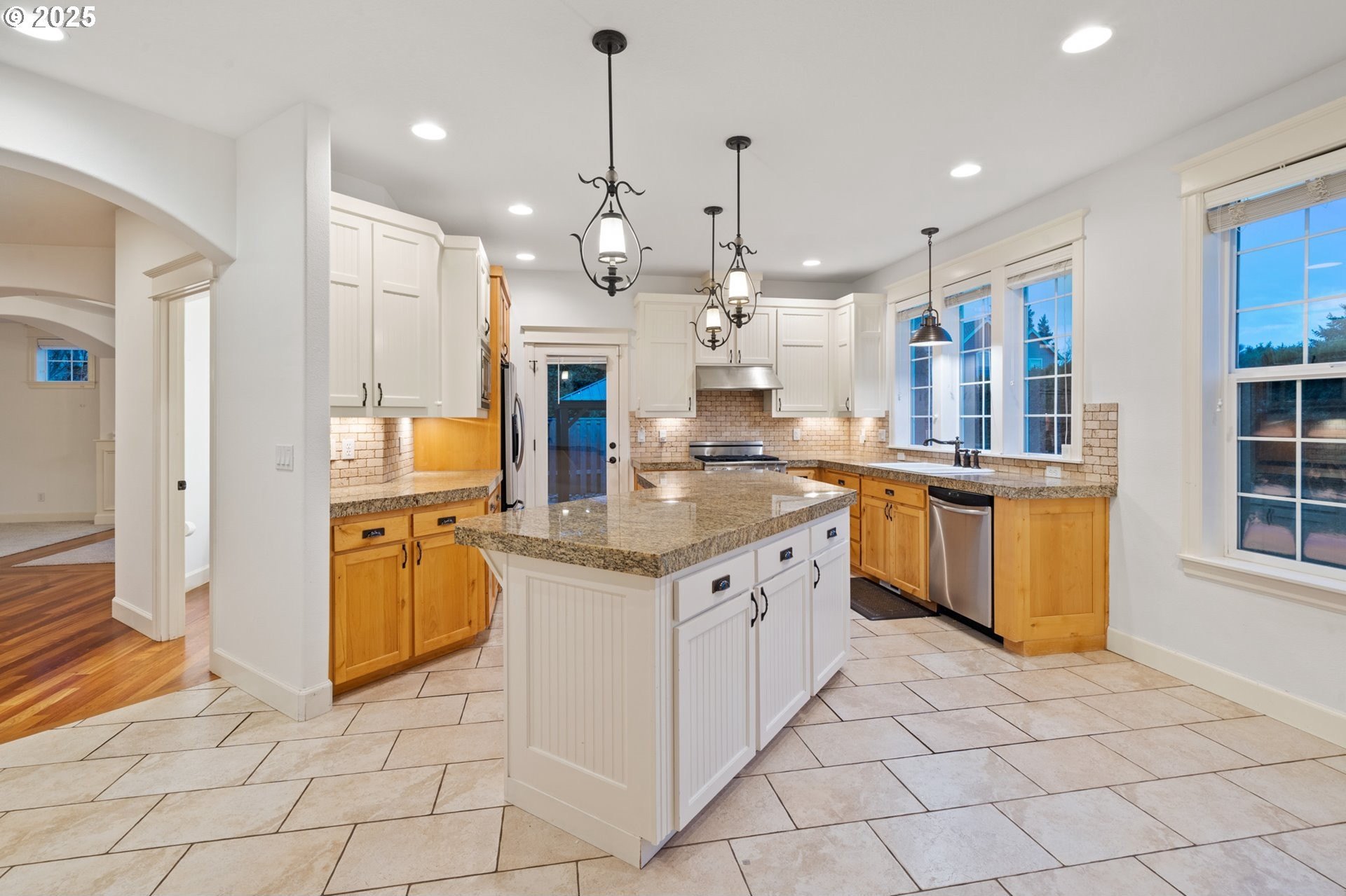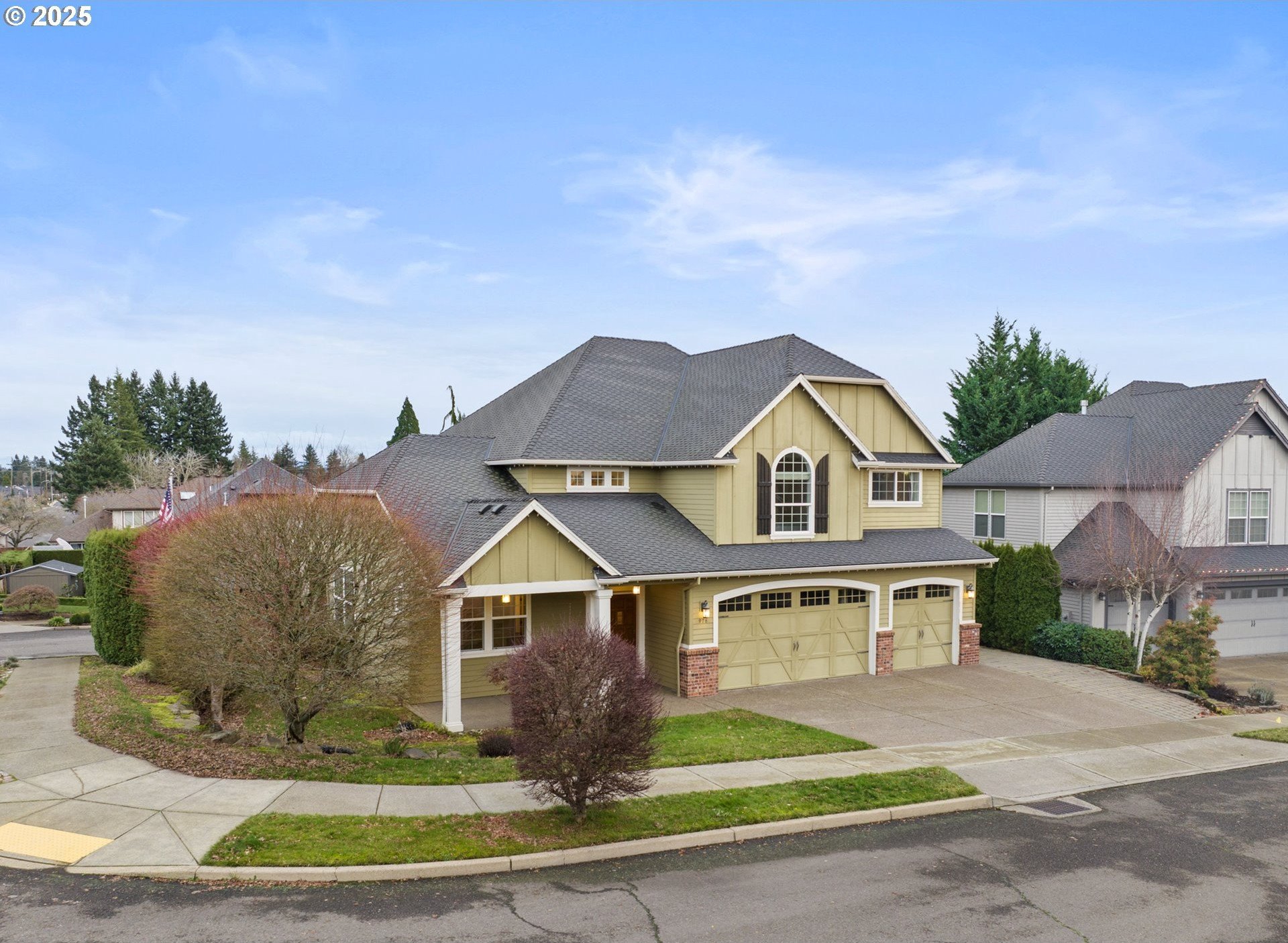 Welcome to Knights Bridge Estates, where a stunning residence that perfectly balances timeless architectural character with modern, high-end updates awaits. From the moment you arrive, the tone is set for the quality found within. This home is designed for those who appreciate a thoughtful layout, offering a seamless flow between grand entertaining spaces and cozy, private retreats. The heart of the home is the expansive, light-filled living room, anchored by a magnificent and inviting brick fireplace. Large windows and French doors flank the hearth, providing beautiful views of the outdoors and flooding the space with natural light. The open-concept design transitions effortlessly into a chef's dream kitchen, featuring a sophisticated mix of warm wood cabinetry, premium granite countertops, and a massive center island perfect for dining or meal prep. High-end stainless steel appliances, a classic subway tile backsplash, and designer pendant lighting complete this culinary haven. Beyond, the home offers incredible versatility and comfort: high ceilings plus a mix of rich hardwoods and plush carpeting create an atmosphere of understated luxury. Whether you are hosting on the deck or enjoying a quiet morning in the sun-drenched breakfast nook, every inch of this property feels like home. With a spacious three-car garage and meticulously maintained exterior, this property is a rare find that combines style, functionality, and pride of ownership in one perfect package.