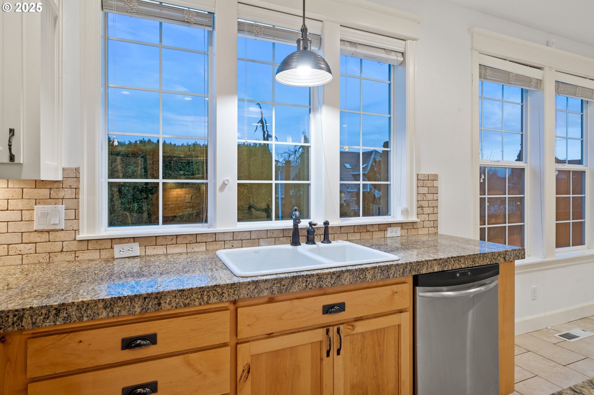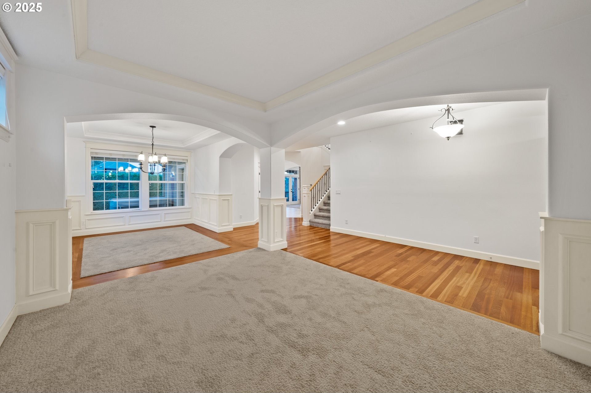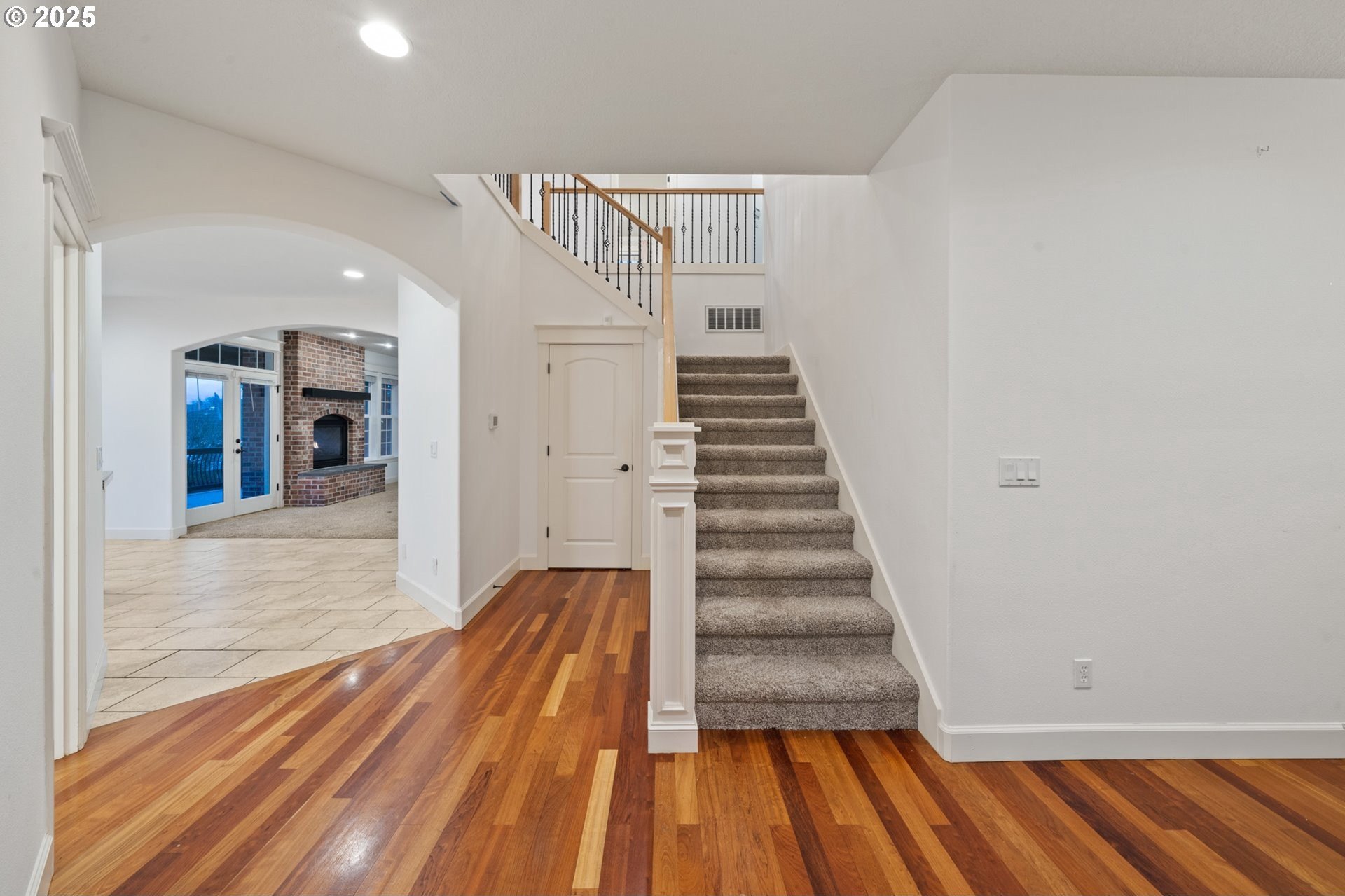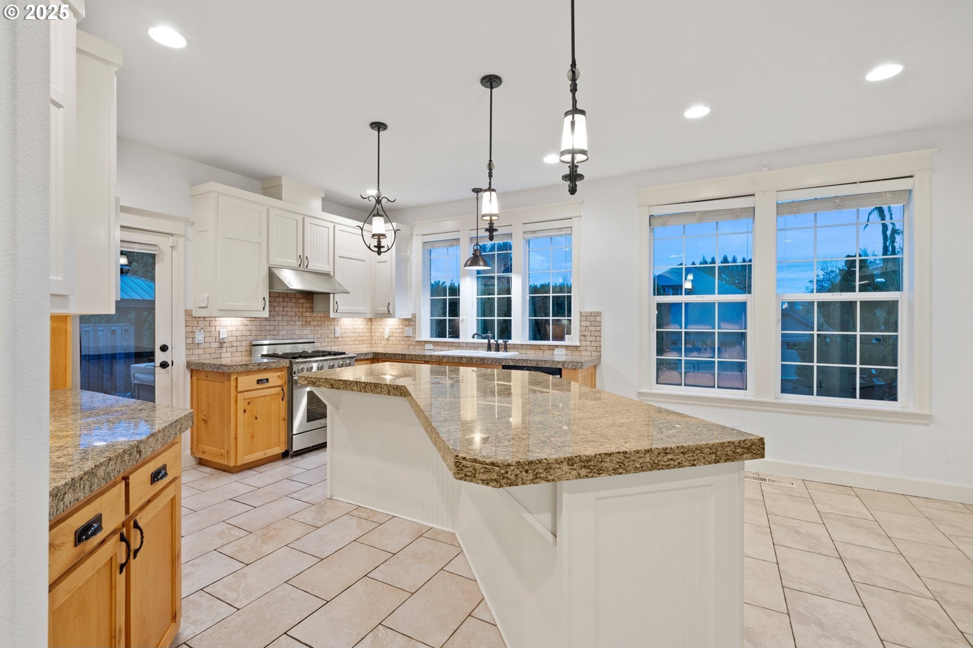 Welcome to Knights Bridge Estates, where a stunning residence that perfectly balances timeless architectural character with modern, high-end updates awaits. From the moment you arrive, the tone is set for the quality found within. This home is designed for those who appreciate a thoughtful layout, offering a seamless flow between grand entertaining spaces and cozy, private retreats. The heart of the home is the expansive, light-filled living room, anchored by a magnificent and inviting brick fireplace. Large windows and French doors flank the hearth, providing beautiful views of the outdoors and flooding the space with natural light. The open-concept design transitions effortlessly into a chef's dream kitchen, featuring a sophisticated mix of warm wood cabinetry, premium granite countertops, and a massive center island perfect for dining or meal prep. High-end stainless steel appliances, a classic subway tile backsplash, and designer pendant lighting complete this culinary haven. Beyond, the home offers incredible versatility and comfort: high ceilings plus a mix of rich hardwoods and plush carpeting create an atmosphere of understated luxury. Whether you are hosting on the deck or enjoying a quiet morning in the sun-drenched breakfast nook, every inch of this property feels like home. With a spacious three-car garage and meticulously maintained exterior, this property is a rare find that combines style, functionality, and pride of ownership in one perfect package.