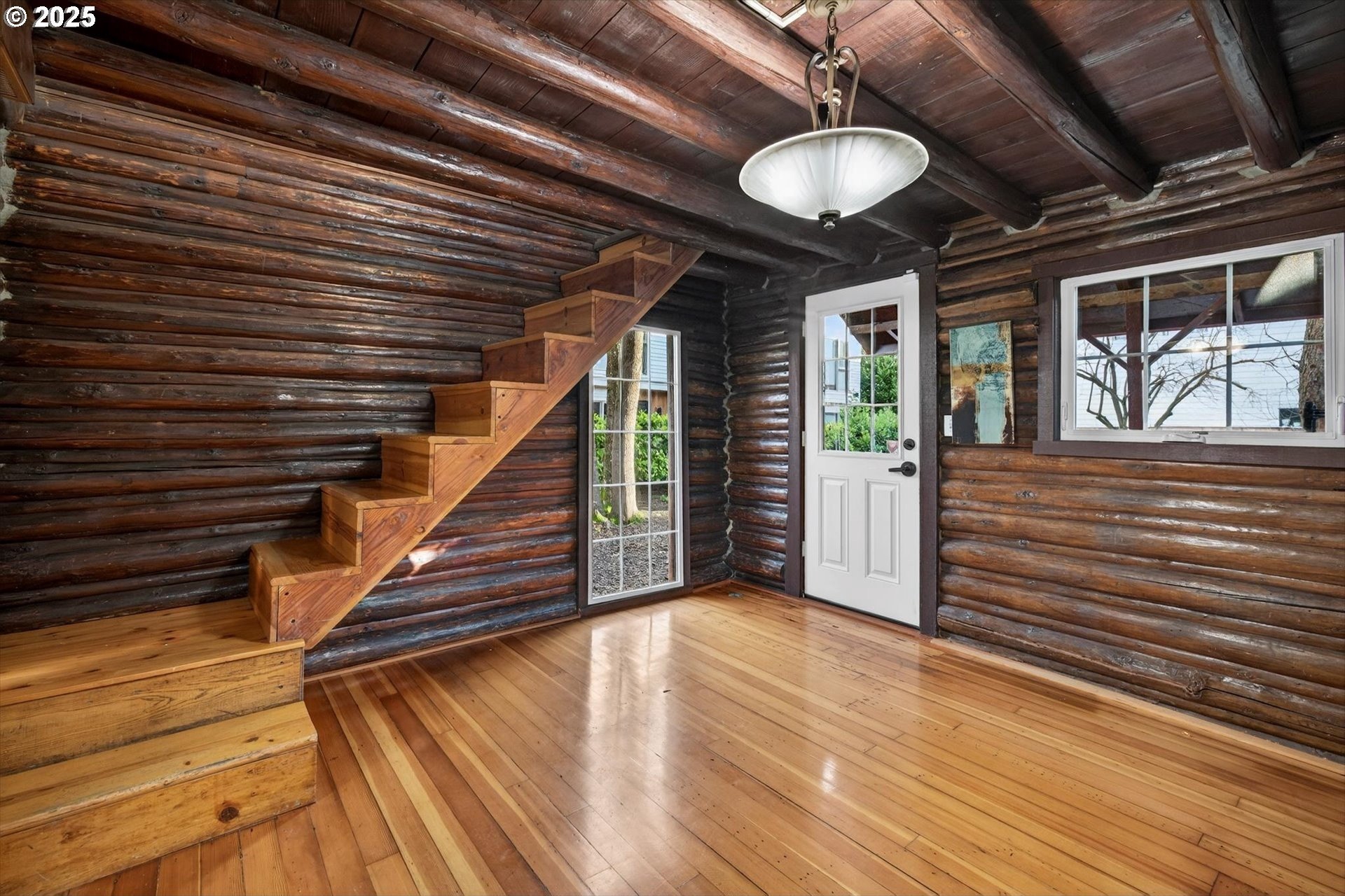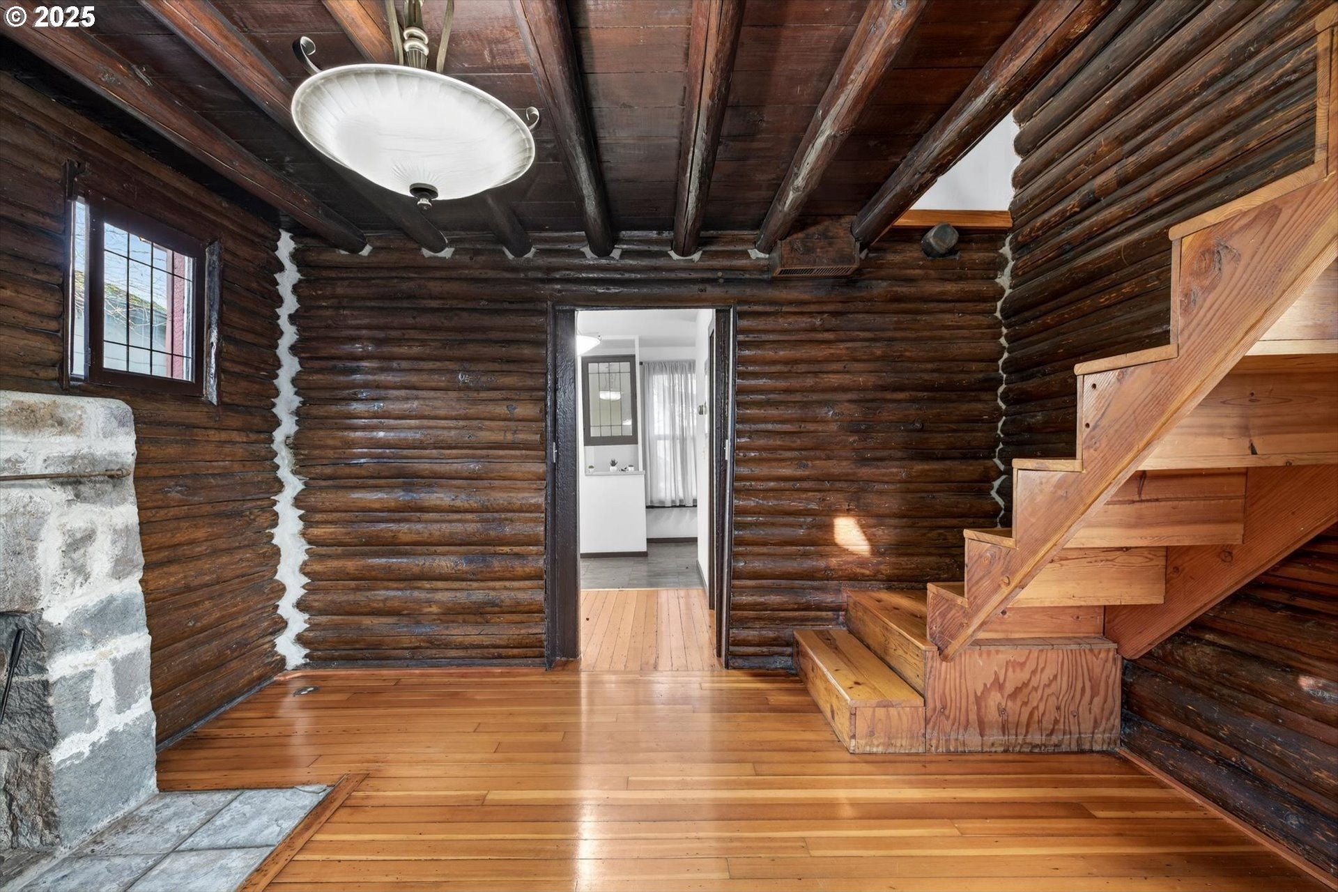 Built in 1907, this unique historic log cabin in the Portsmouth neighborhood of N Portland offers a versatile commercial/mixed-use opportunity. Rich in character, the property showcases beautifully refinished original fir floors, a cozy wood burning fireplace with insert and the original clawfoot tub--details that speak to its craftmanship & enduring charm. The light-filled loft upstairs offers additional flexibility-ideal for a private office, studio, or potential bedroom. Outside, a fully fenced and private backyard provides a peaceful retreat, while off-street parking adds convenience.Zoned CM2, the property allows for a broad mix of residential and commercial uses, making it as flexible as it is distinctive. Most recently, it served as a successful law office for over a decade, proving its functionality and appeal for professional use, live/work arrangements, or creative ventures.With its historical significance, irreplaceable character, and exceptional zoning, this one-of-a-kind cabin presents endless opportunities-for business, residence, or both!