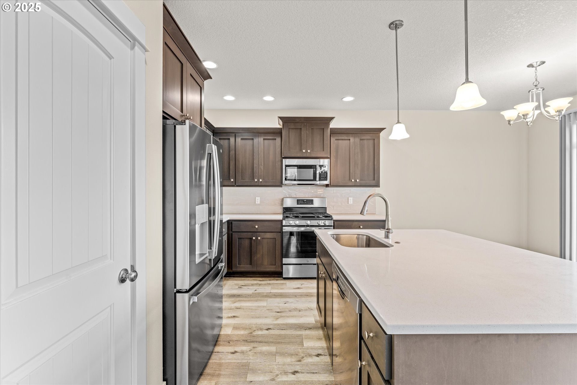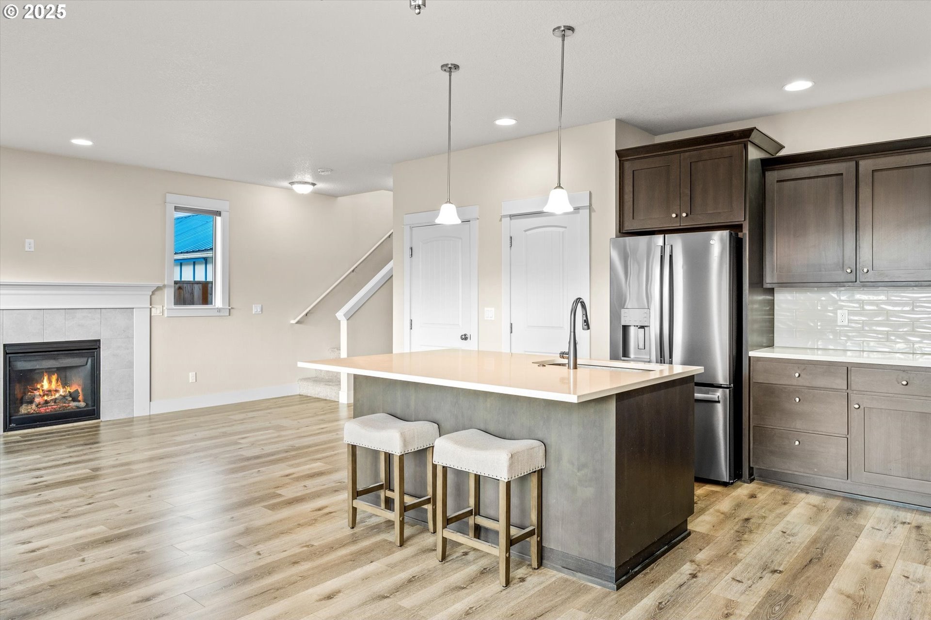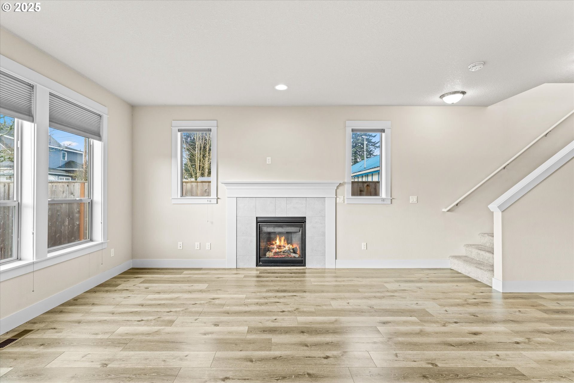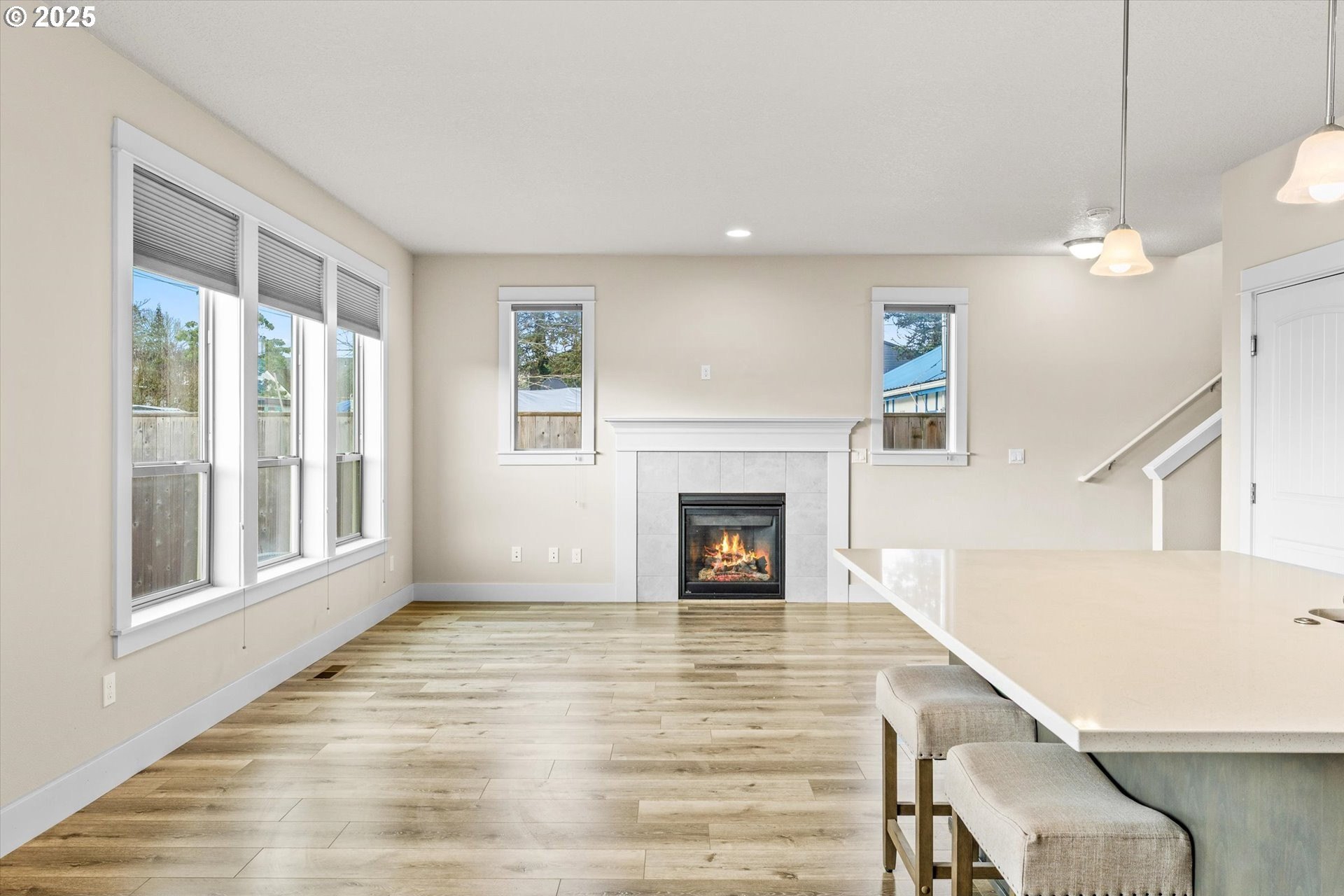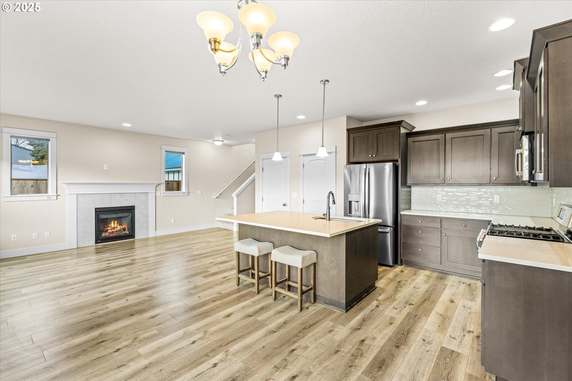 Built in 2021, this thoughtfully designed 3-bedroom, 2.1-bath Forest Grove home offers 1,661 sq ft of modern living in a quiet neighborhood backing to a natural preserve-no homes behind for exceptional privacy. The main level features durable laminate flooring, an inviting gas fireplace with blower, and an open-concept layout ideal for entertaining or everyday comfort. The kitchen is highlighted by a quartz island, stainless steel appliances, and neutral finishes throughout. Upstairs bedrooms include blackout blinds for restful nights. Enjoy year-round comfort with central A/C and the convenience of all appliances included. Energy-conscious features include a 2-car garage with 240V EV outlet and wiring for future solar. Fully fenced backyard, front yard sprinkler system, and peaceful surroundings. Located near Forest Grove parks, Pacific University, and local amenities, this move-in-ready home blends nature, efficiency, and modern style.
