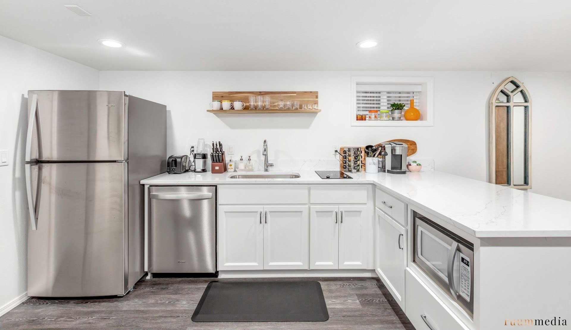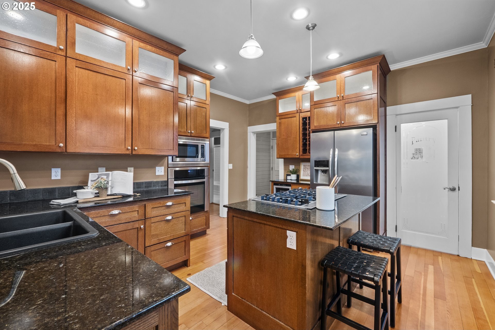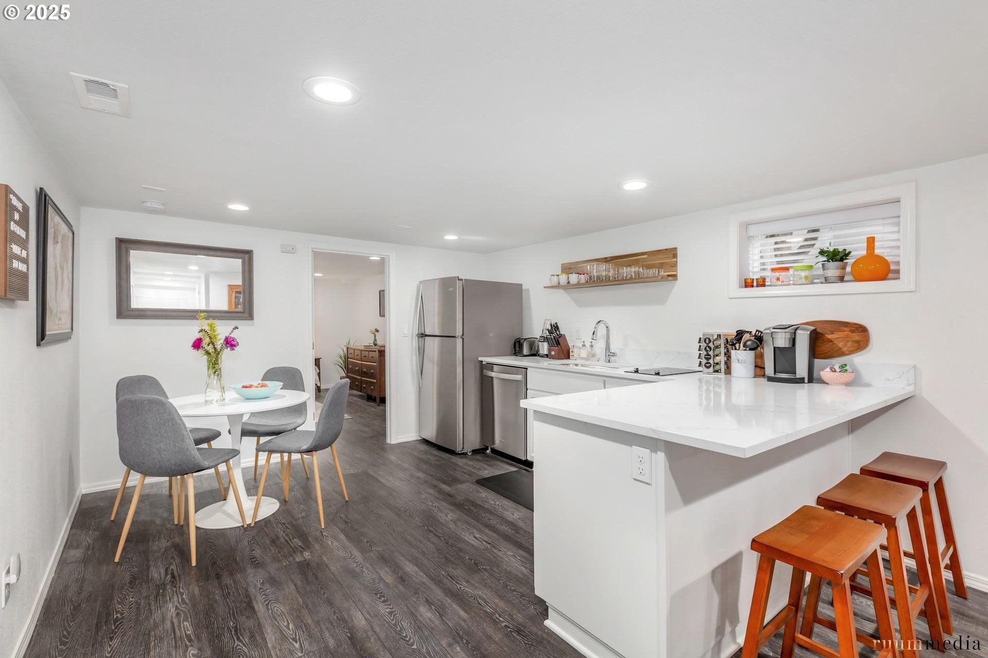 Open House Saturday noon - 2pm! Rare Irving Park Craftsman with a fully permitted 2-bed ADU and over $300,000 in improvements. This 1910 classic delivers charm, flexibility, and modern comfort in the heart of the Grant High neighborhood. Newly refinished original hardwood floors and fresh interior paint throughout pair with vaulted ceilings, updated windows, and beautiful natural light. The main residence offers a versatile layout with two bedrooms and one bath on the main level, plus two bedrooms upstairs including a primary suite with renovated en-suite. The fully permitted lower-level ADU features a private entrance and full kitchen, ideal for multigenerational living, guests, or income potential (ask about strong Airbnb history producing approx. $35,000 annually). Additional updates include two new HVAC systems, exterior paint, landscaping and stonework, backyard fencing, EV charger and 240v outlet, driveway repair, garage improvements with drywall/shelving/bar, and a new washer/dryer combo. Enjoy a private backyard built for entertaining with a fire pit, garden beds, and bar area, plus a rare 5-car driveway with space for RV/toys. Walkable to parks, shops, restaurants, Whole Foods, New Seasons, Legacy Emanuel Hospital, and close to Alberta Arts, Mississippi Ave, Grant High, Moda Center, and the riverfront. A/C. Floorplans and full upgrades list available.