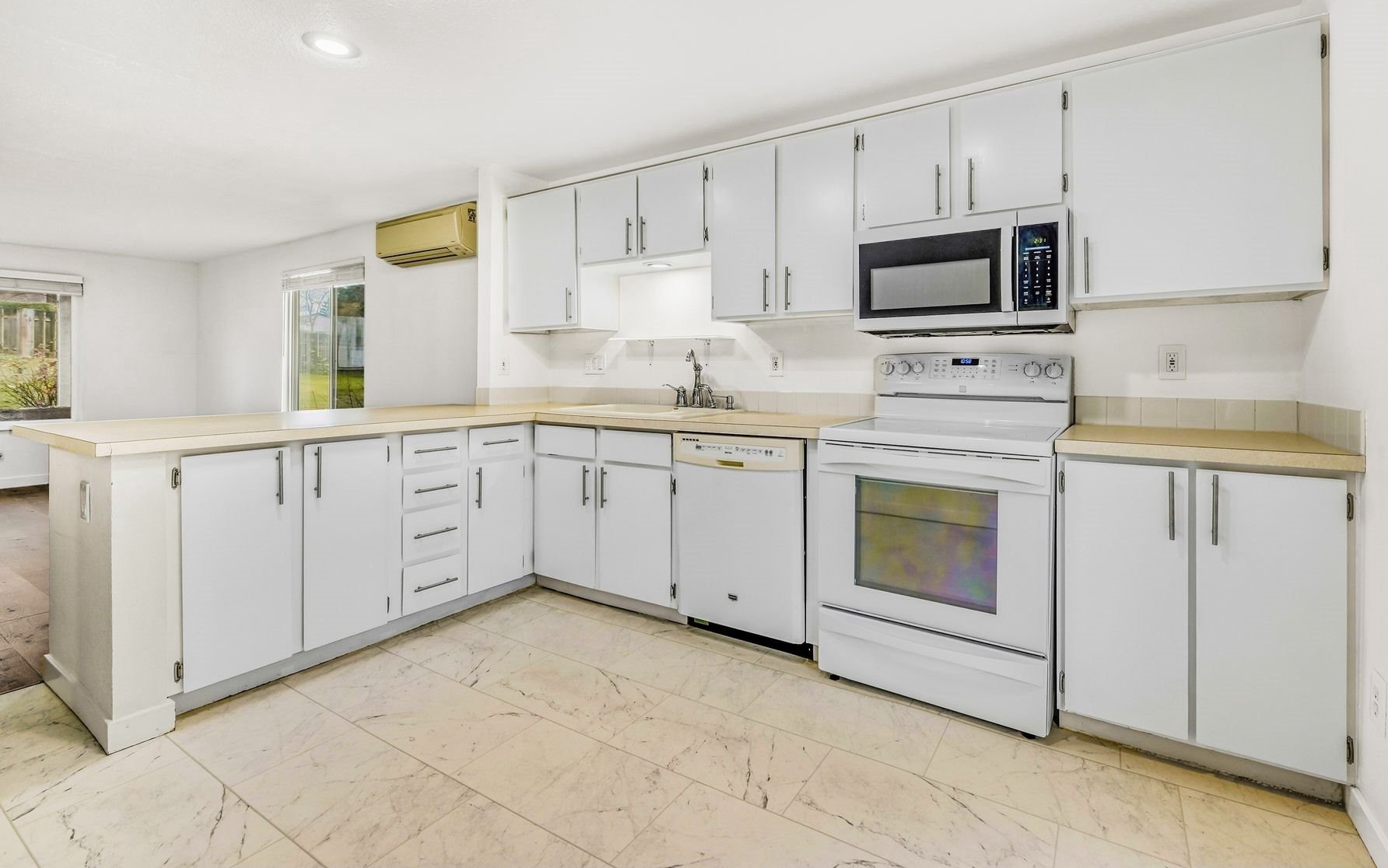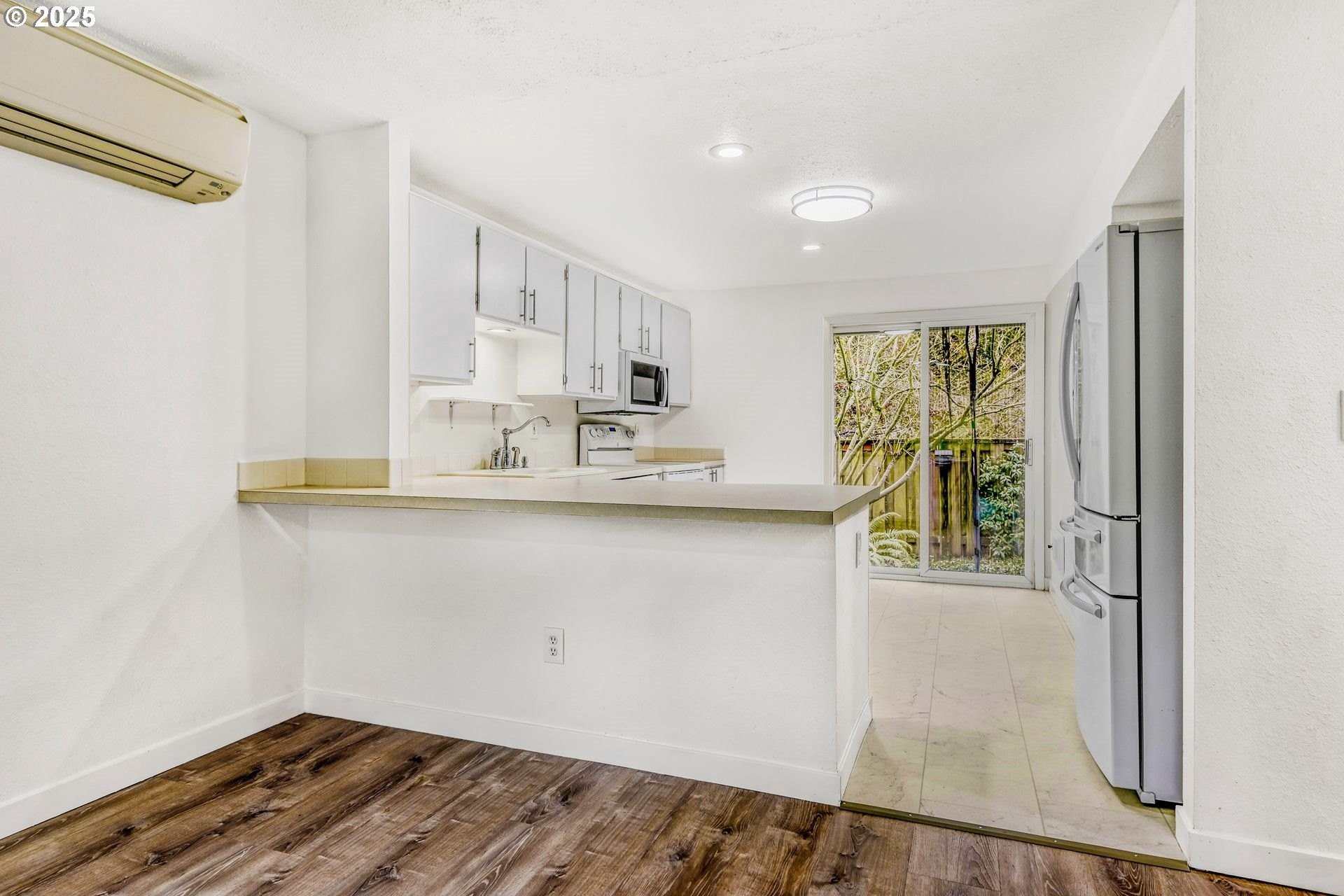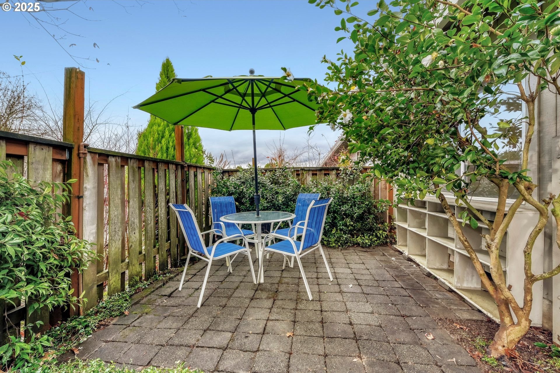 This highly sought-after end unit offers easy, one-level living in an ideal Tualatin location, tucked alongside peaceful green space for added privacy. The roomy kitchen provides plenty of space to cook and gather, and large windows throughout the home fill the space with natural light. New flooring throughout and air conditioning ensure year-round comfort.Enjoy your private patio and backyard, highlighted by fragrant star jasmine and a beautiful winter-blooming camellia, along with surrounding fall color and visiting birds-an inviting spot to relax and unwind. All appliances are included, making this home truly move-in ready. A garage provides convenient parking and additional storage.The pet-friendly community is well cared for, with the roof replaced by the HOA in 2024. The HOA covers water, sewer, and garbage. Conveniently located near public transit, restaurants, shopping, and schools, this home offers the perfect blend of comfort, location, and low-maintenance living in Tualatin.