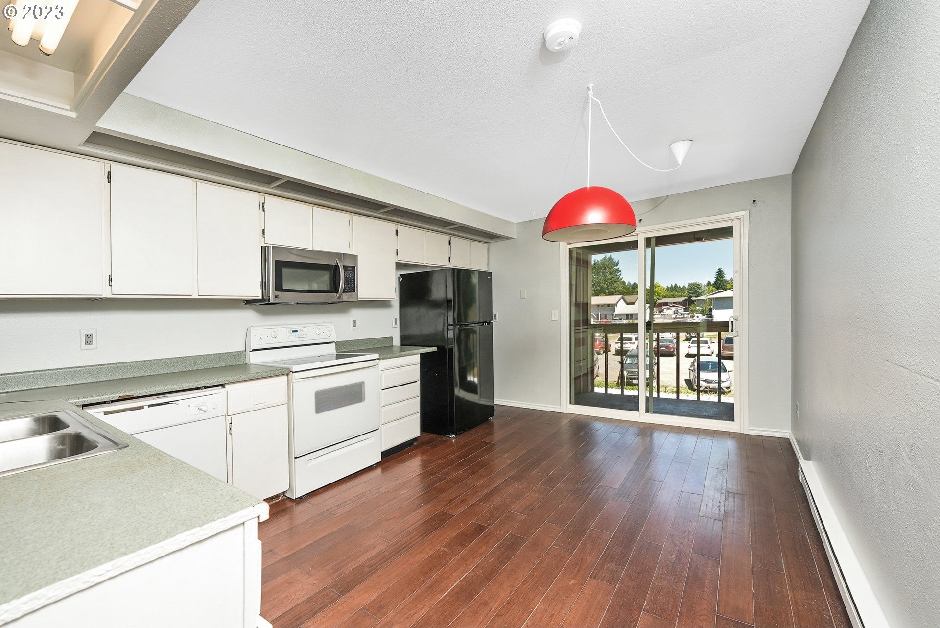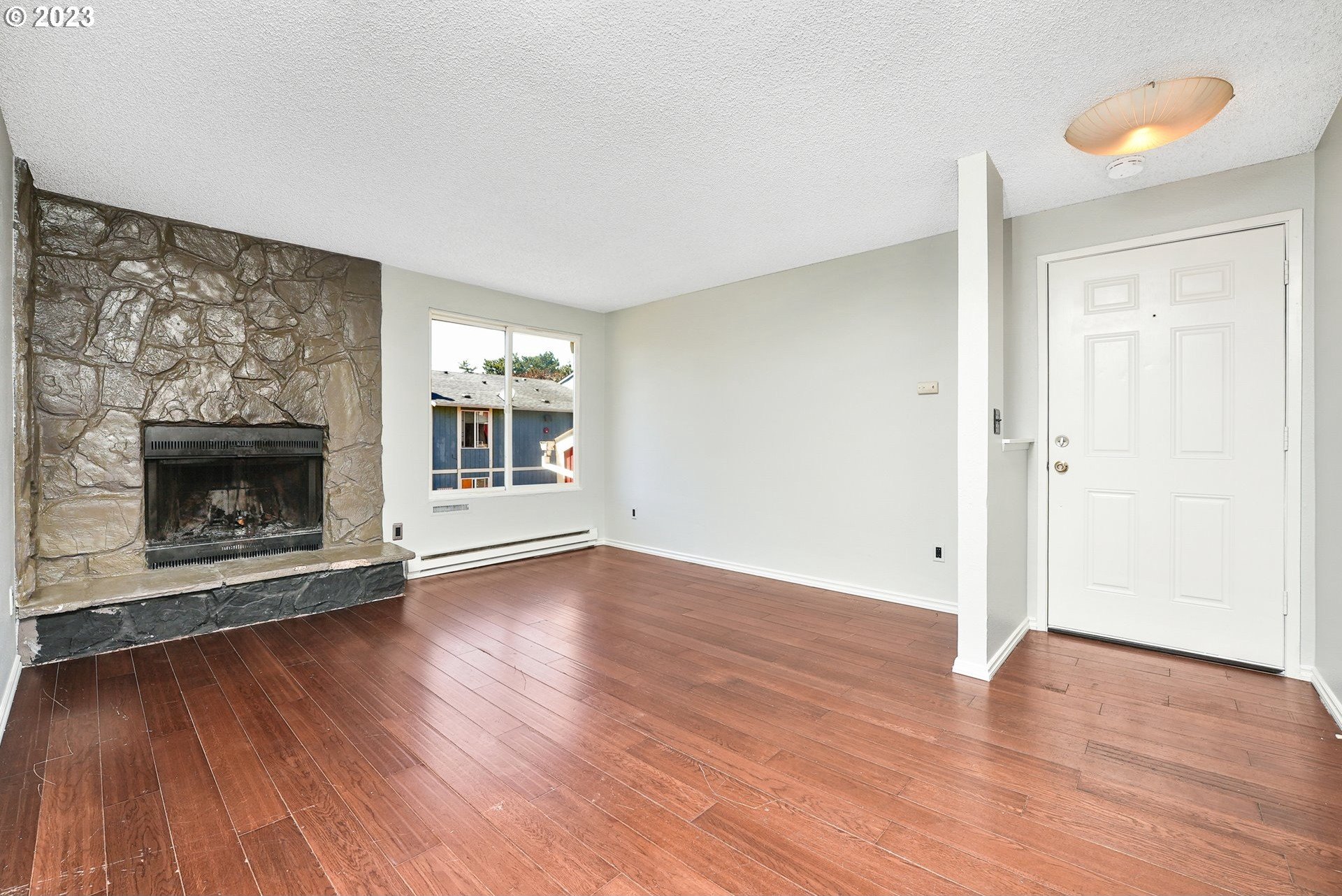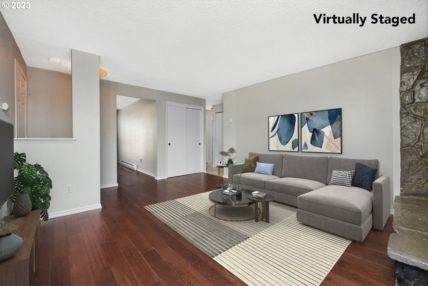 Ring in the new year with a home of your own! At an appealing price and convenient location near downtown Hillsboro, this upper level condo offers an incredible opportunity with its 3 bedroom and 2 full bathrooms. Whether you're looking for a home of your own or a great investment property, you've found it! The spacious kitchen has room for a dining table, tons of cabinet/counter space and sliding glass doors opening to the patio w/ storage. Wood laminate floors run throughout the living room (w/ a fireplace!) and all 3 bedrooms. The primary bedroom has its own private bathroom and massive closet, while the nicely sized 2nd/3rd bedrooms & additional bathroom provide everyone their own space. Kitchen appliances, the in-unit washer/dryer and newer window coverings are all included, plus reserved parking directly in front of the unit. Hillsboro Medical Center, restaurants/coffee, multiple parks, Rec Center, library, & MAX lines are all close by. The HOA covers water, sewer, garbage, exterior maintenance, etc. This condo presents a great ownership opportunity in central Hillsboro at a fantastic price!