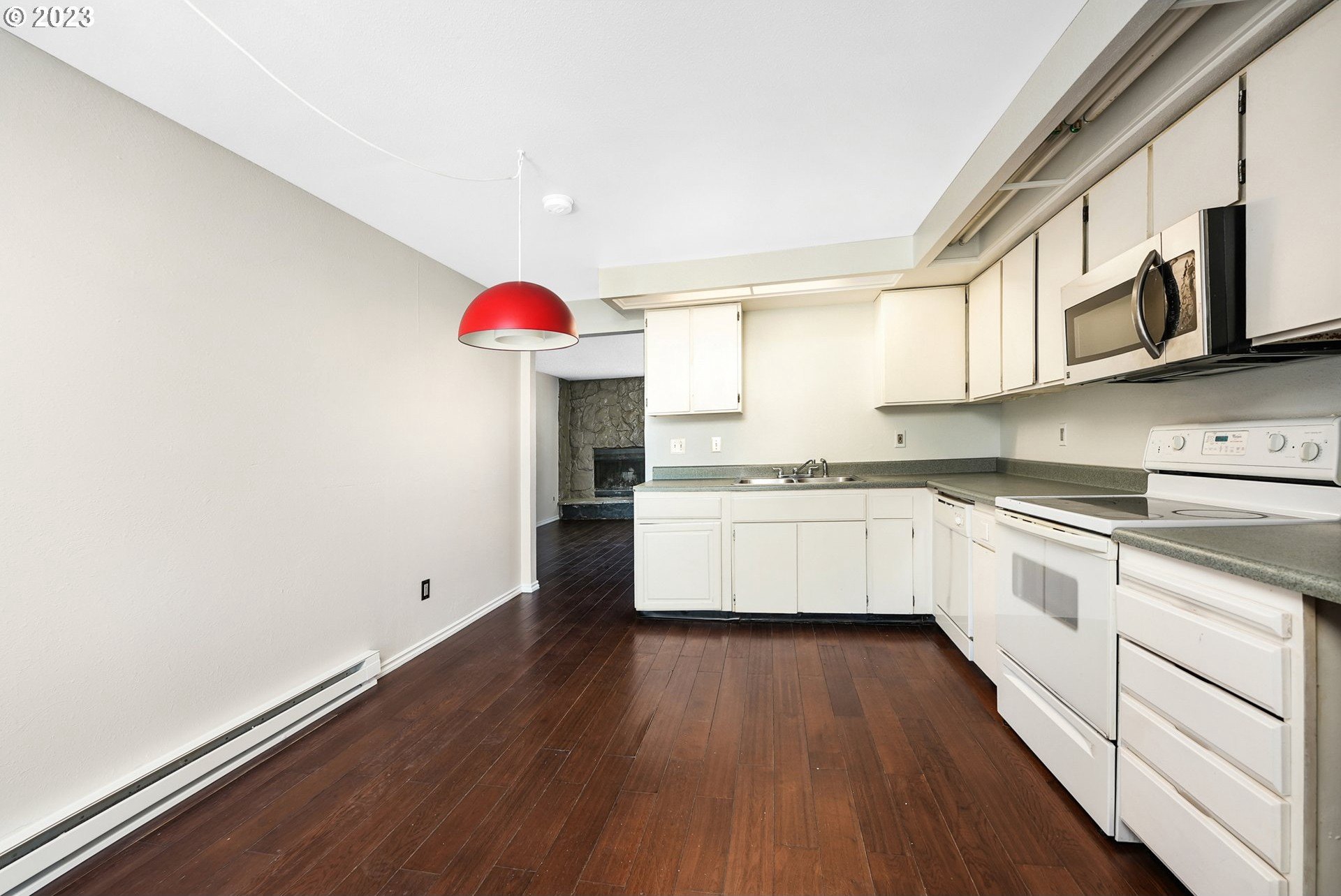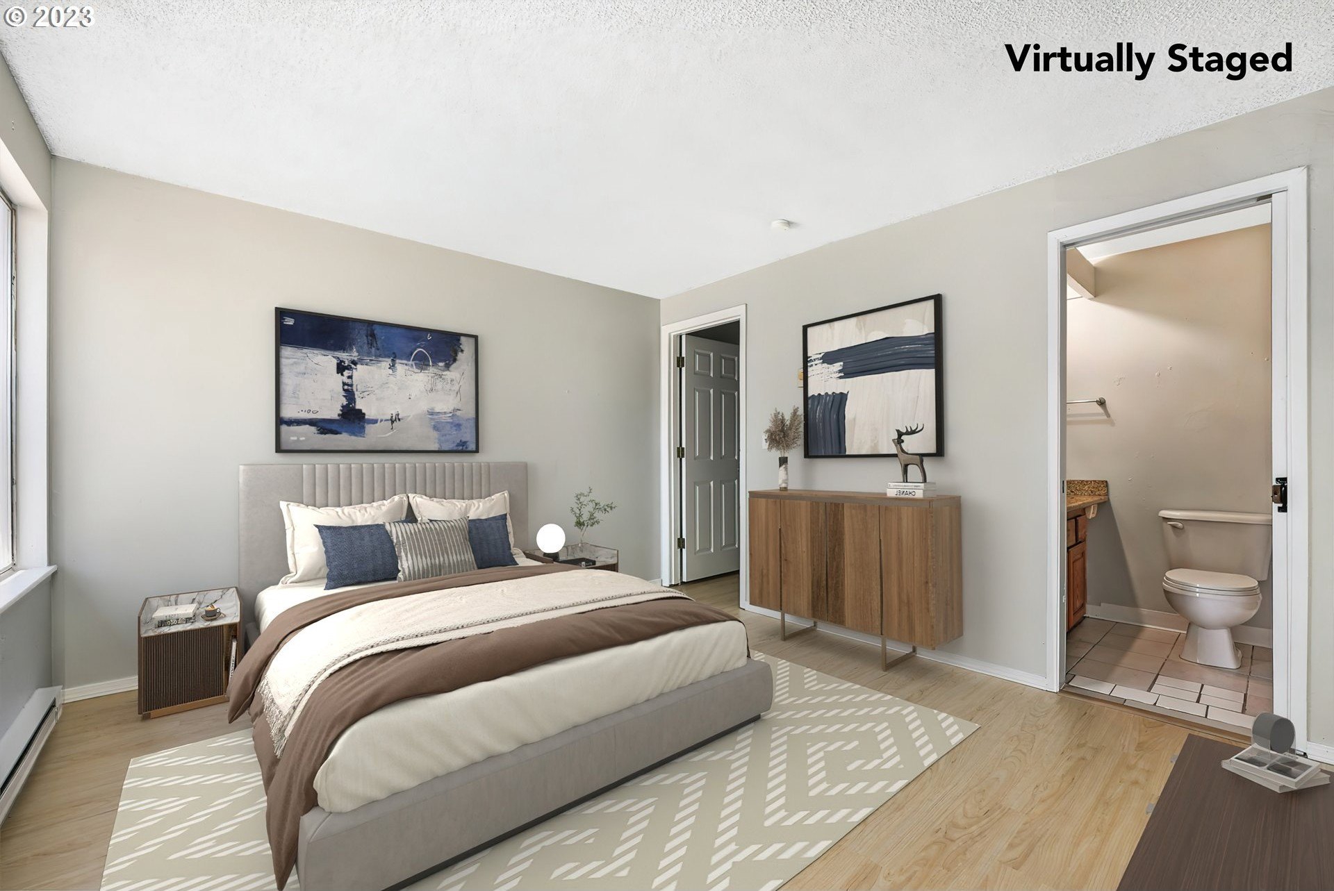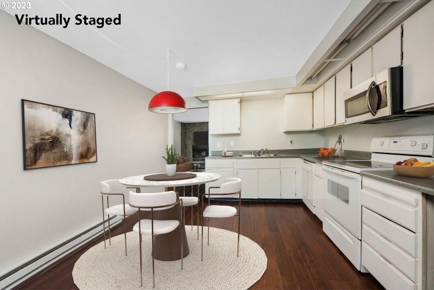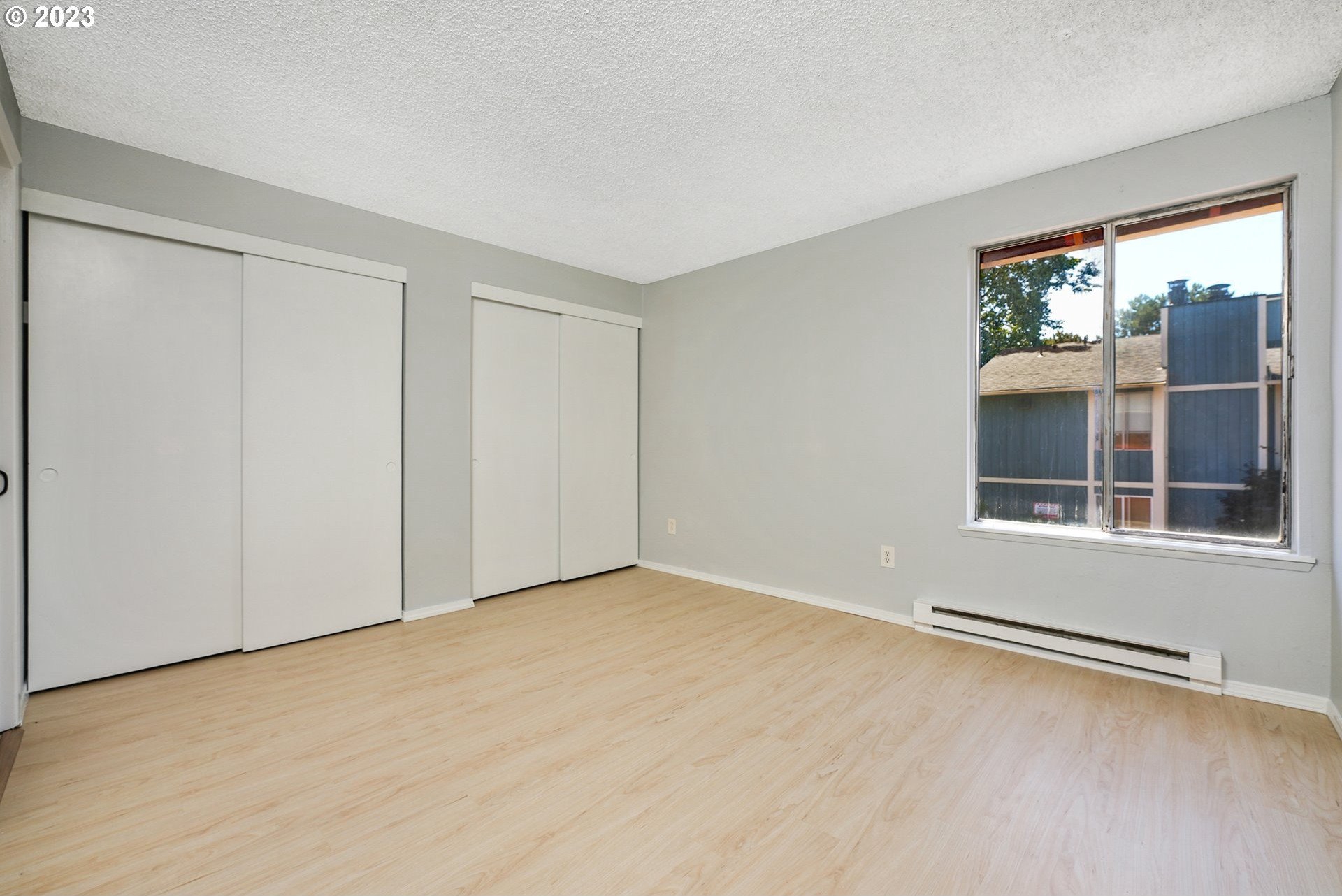 Ring in the new year with a home of your own! At an appealing price and convenient location near downtown Hillsboro, this upper level condo offers an incredible opportunity with its 3 bedroom and 2 full bathrooms. Whether you're looking for a home of your own or a great investment property, you've found it! The spacious kitchen has room for a dining table, tons of cabinet/counter space and sliding glass doors opening to the patio w/ storage. Wood laminate floors run throughout the living room (w/ a fireplace!) and all 3 bedrooms. The primary bedroom has its own private bathroom and massive closet, while the nicely sized 2nd/3rd bedrooms & additional bathroom provide everyone their own space. Kitchen appliances, the in-unit washer/dryer and newer window coverings are all included, plus reserved parking directly in front of the unit. Hillsboro Medical Center, restaurants/coffee, multiple parks, Rec Center, library, & MAX lines are all close by. The HOA covers water, sewer, garbage, exterior maintenance, etc. This condo presents a great ownership opportunity in central Hillsboro at a fantastic price!
