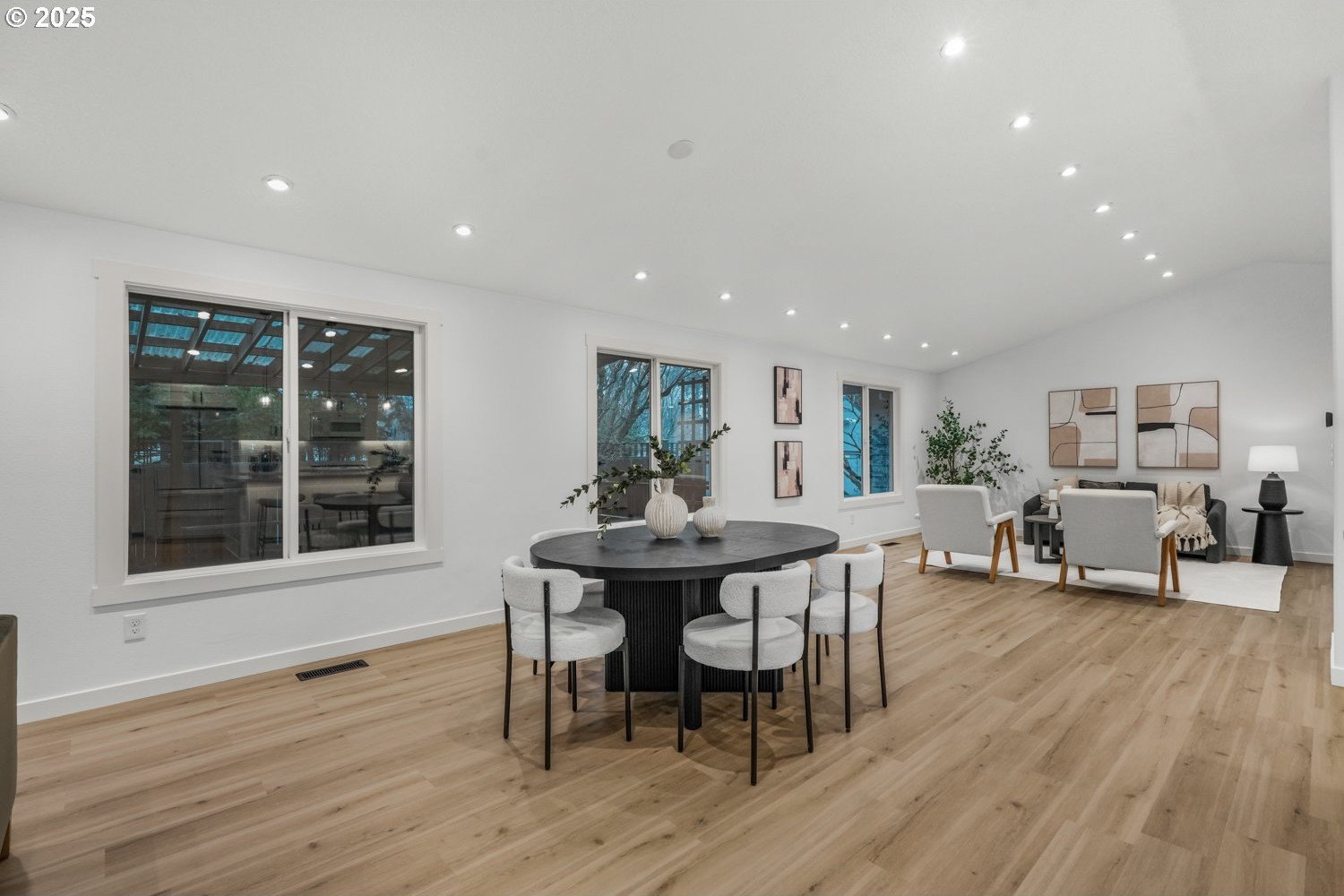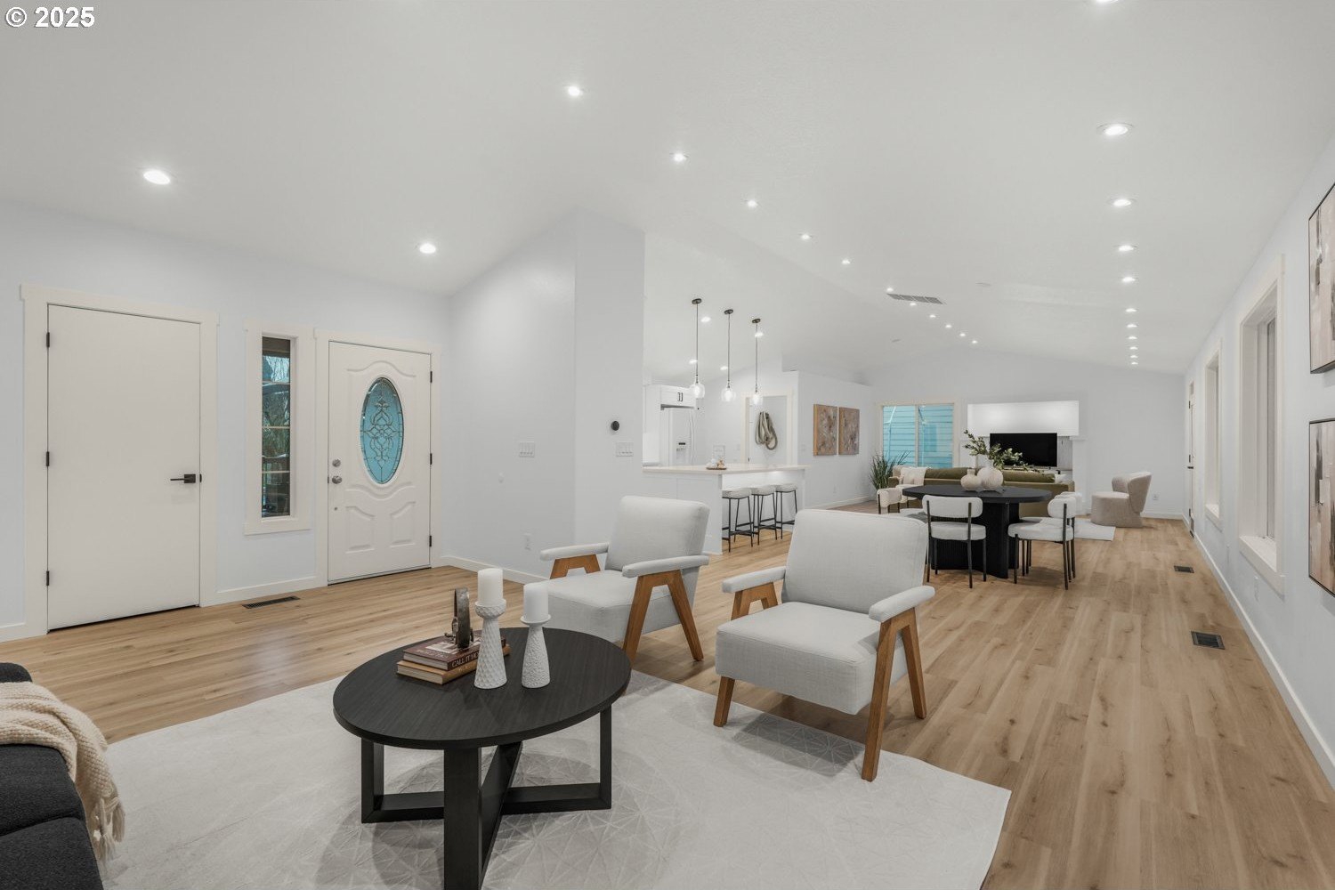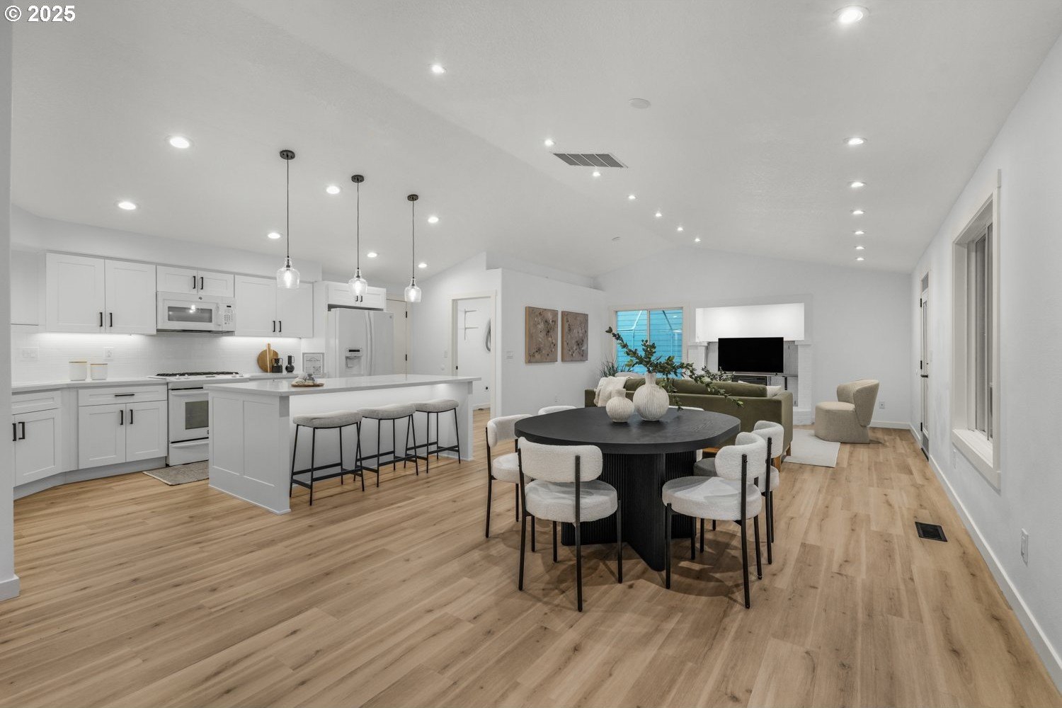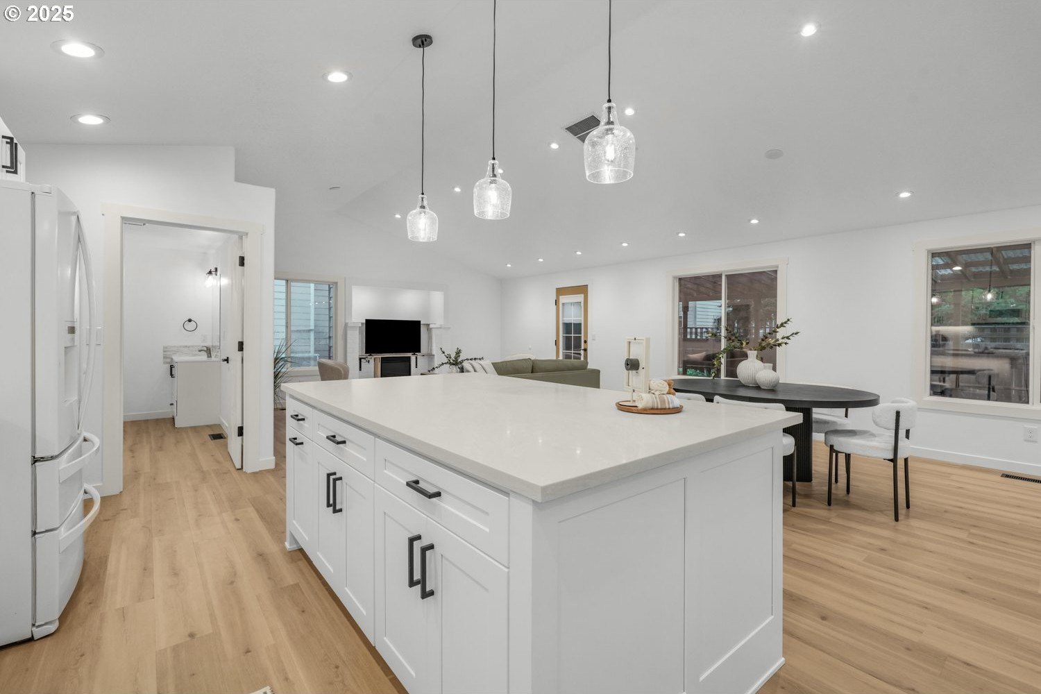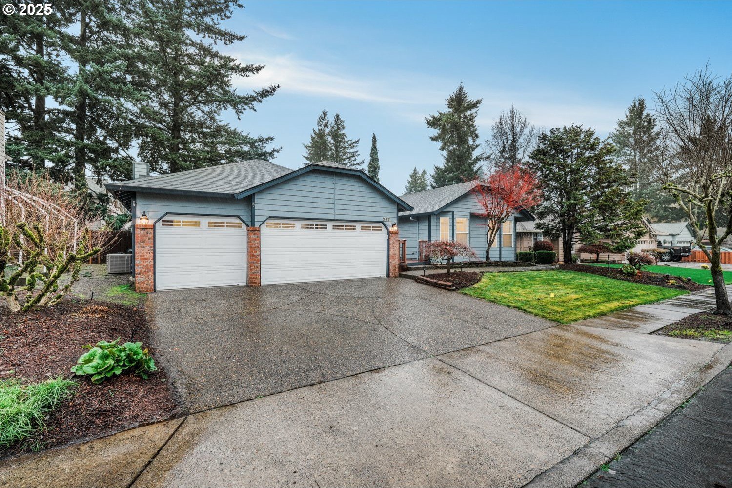 Stunning 3-bedroom, 2.5-bath home in sought-after Gentry Meadows! This light and bright residence showcases high-end finishes, vaulted ceilings, and unique architectural details throughout. Luxury vinyl plank flooring spans the main living areas, enhancing the open-concept floorplan that seamlessly connects the living, dining, kitchen and family room spaces. The gourmet kitchen features gorgeous quartz countertops, a large island with eat bar, gas appliances, and a pantry, and flows effortlessly into the inviting family room with fireplace and access to a spacious covered deck. The primary suite offers a walk-in closet and a private bath with dual vanities and a relaxing jetted tub. Two additional generously sized bedrooms, a full guest bath, a convenient laundry room with half bath complete the interior. There's a central vacuum for easy home keeping. Recent updates include a new roof in 2025, new water heater in 2021, gas furnace replacement in 2013, A/C coil replacement in 2022, and a newer garage door, giving you added peace of mind. Outdoors, enjoy a large fenced backyard with an impressive 28x14 covered deck, perfect for entertaining, plus a tool shed for extra storage. A 3-car garage provides space for vehicles and hobbies. Ideally located just minutes from dining, shopping, schools, Adventist Health Portland, nature parks with hiking trails, and a nearby country club. Excellent walk and bike scores make this an exceptional place to call home.