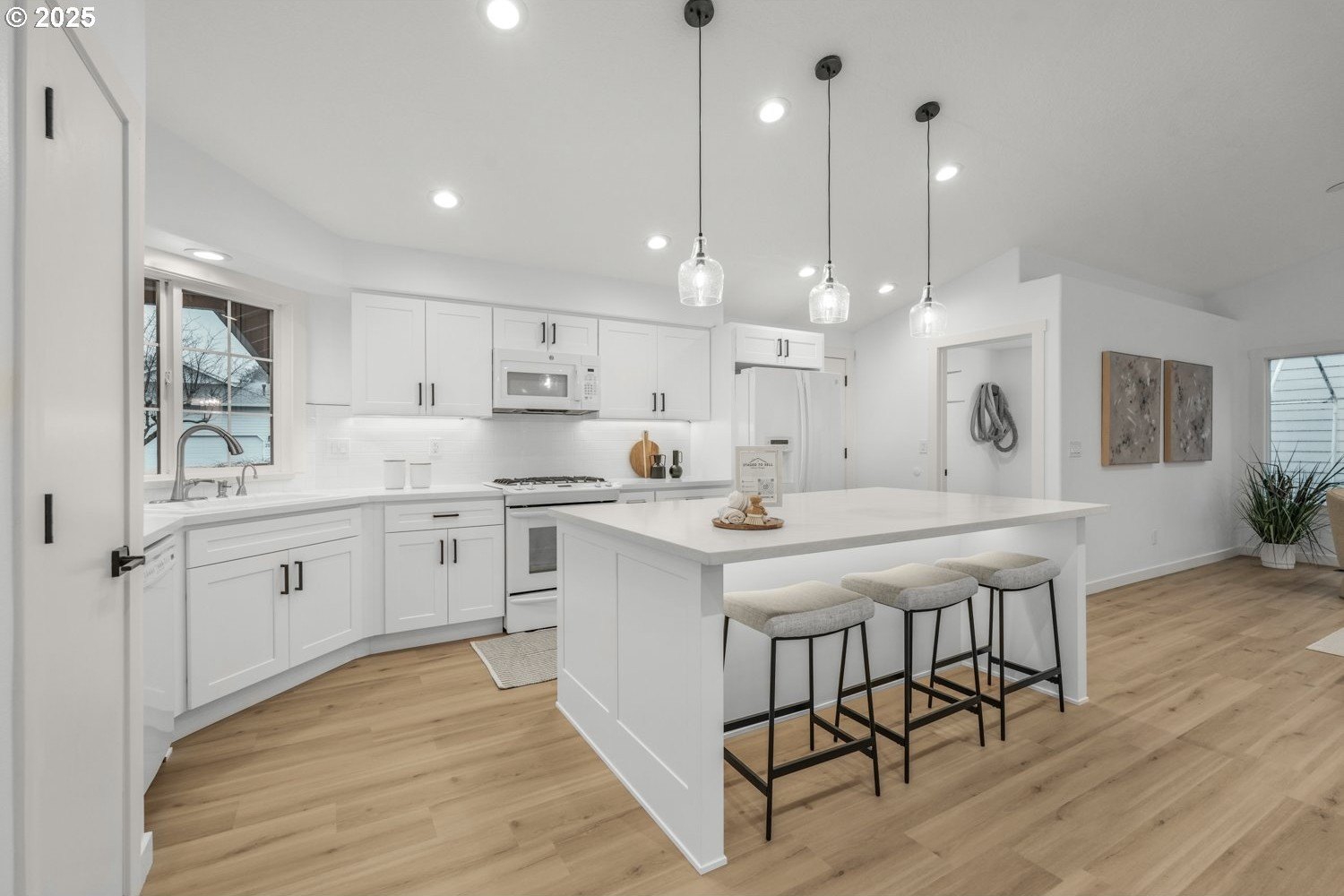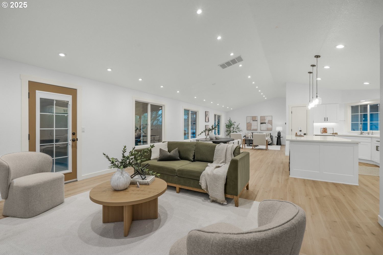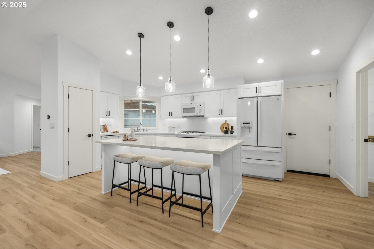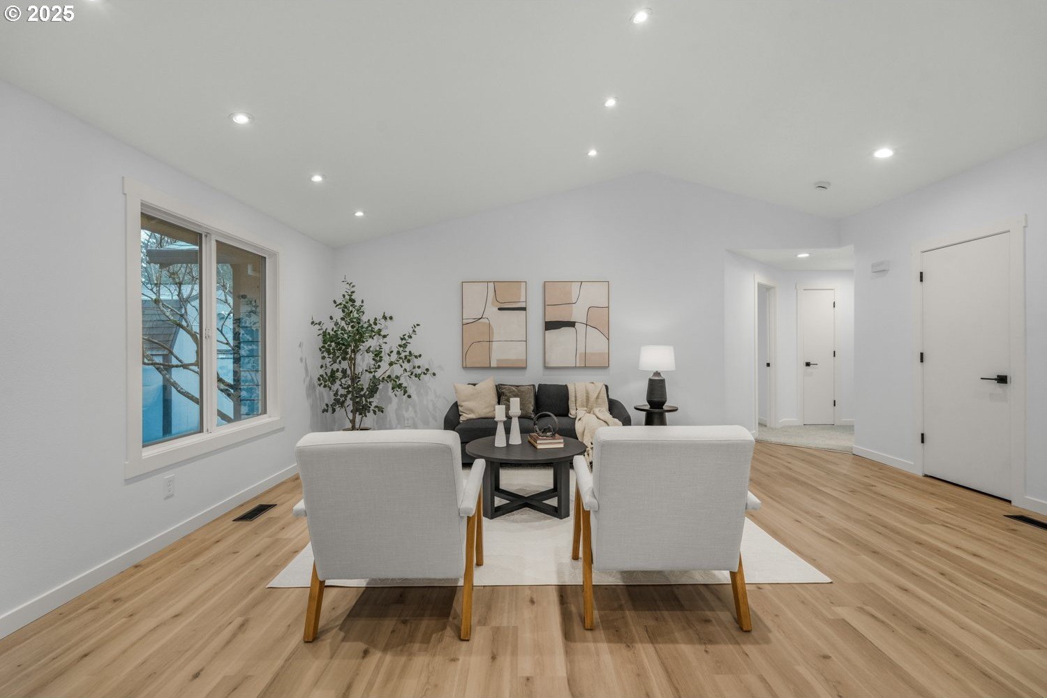 Stunning 3-bedroom, 2.5-bath home in sought-after Gentry Meadows! This light and bright residence showcases high-end finishes, vaulted ceilings, and unique architectural details throughout. Luxury vinyl plank flooring spans the main living areas, enhancing the open-concept floorplan that seamlessly connects the living, dining, kitchen and family room spaces. The gourmet kitchen features gorgeous quartz countertops, a large island with eat bar, gas appliances, and a pantry, and flows effortlessly into the inviting family room with fireplace and access to a spacious covered deck. The primary suite offers a walk-in closet and a private bath with dual vanities and a relaxing jetted tub. Two additional generously sized bedrooms, a full guest bath, a convenient laundry room with half bath complete the interior. There's a central vacuum for easy home keeping. Recent updates include a new roof in 2025, new water heater in 2021, gas furnace replacement in 2013, A/C coil replacement in 2022, and a newer garage door, giving you added peace of mind. Outdoors, enjoy a large fenced backyard with an impressive 28x14 covered deck, perfect for entertaining, plus a tool shed for extra storage. A 3-car garage provides space for vehicles and hobbies. Ideally located just minutes from dining, shopping, schools, Adventist Health Portland, nature parks with hiking trails, and a nearby country club. Excellent walk and bike scores make this an exceptional place to call home.