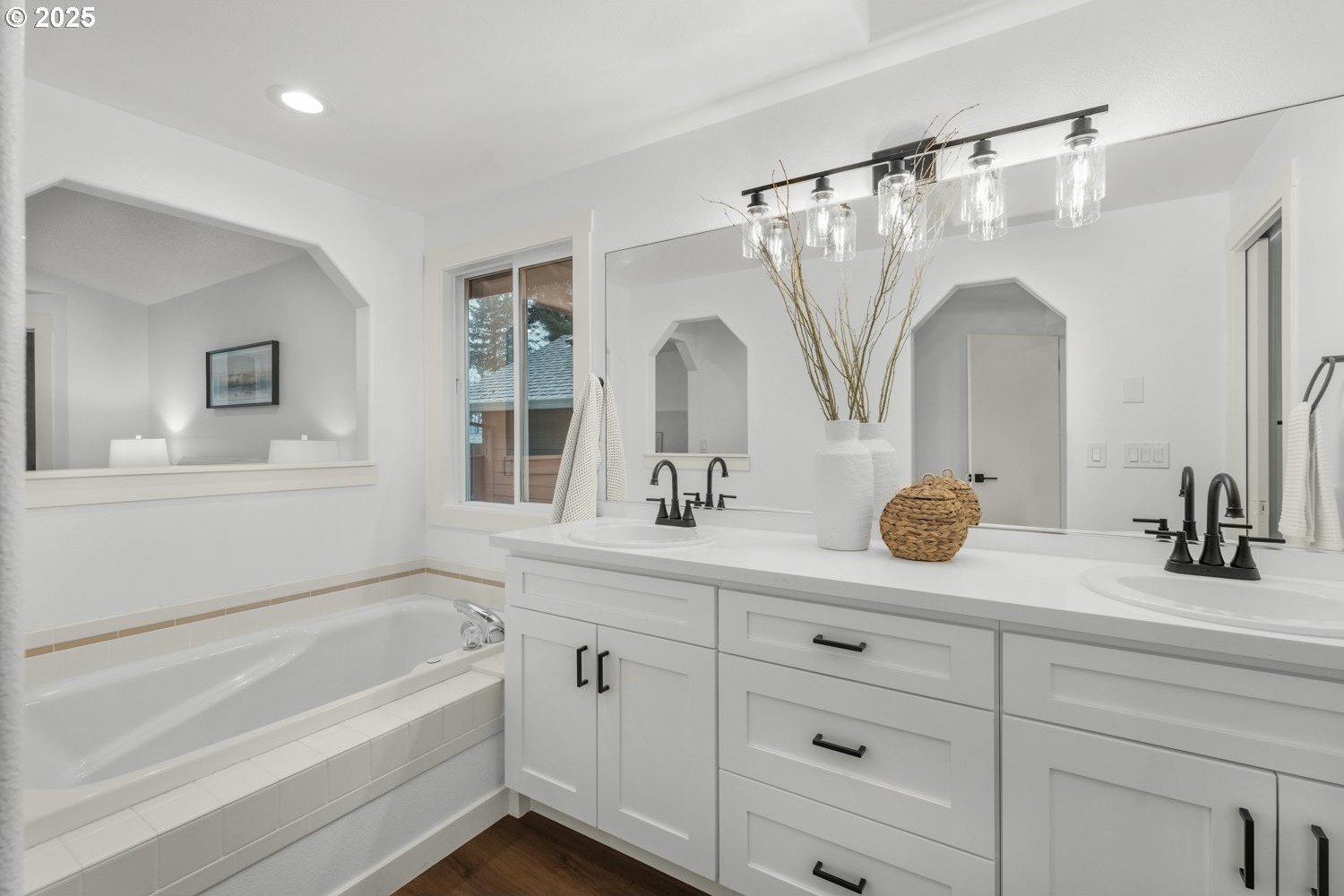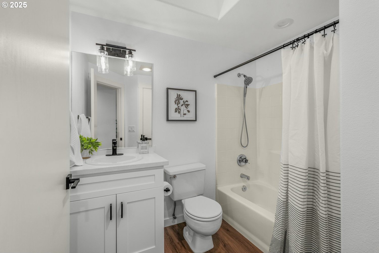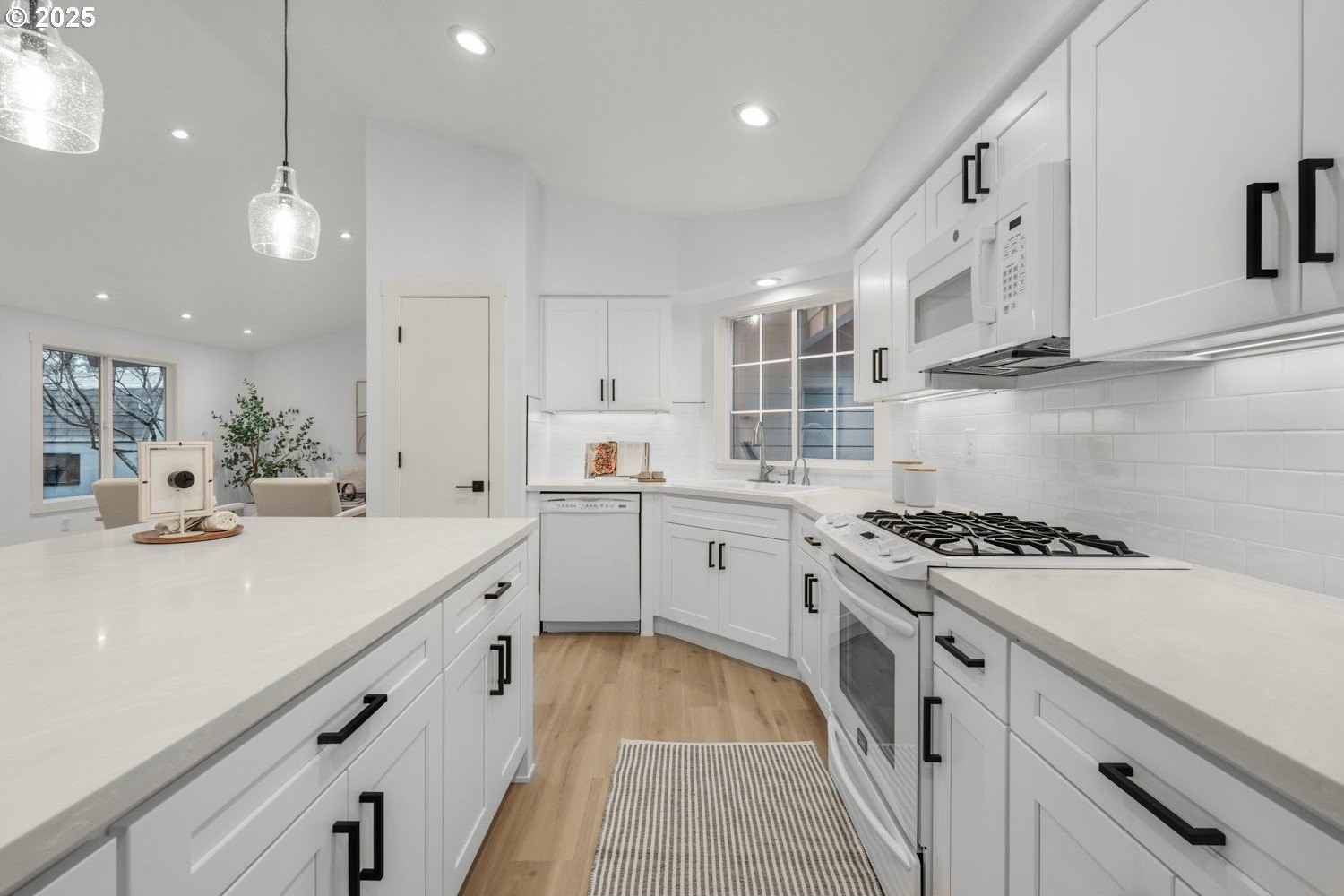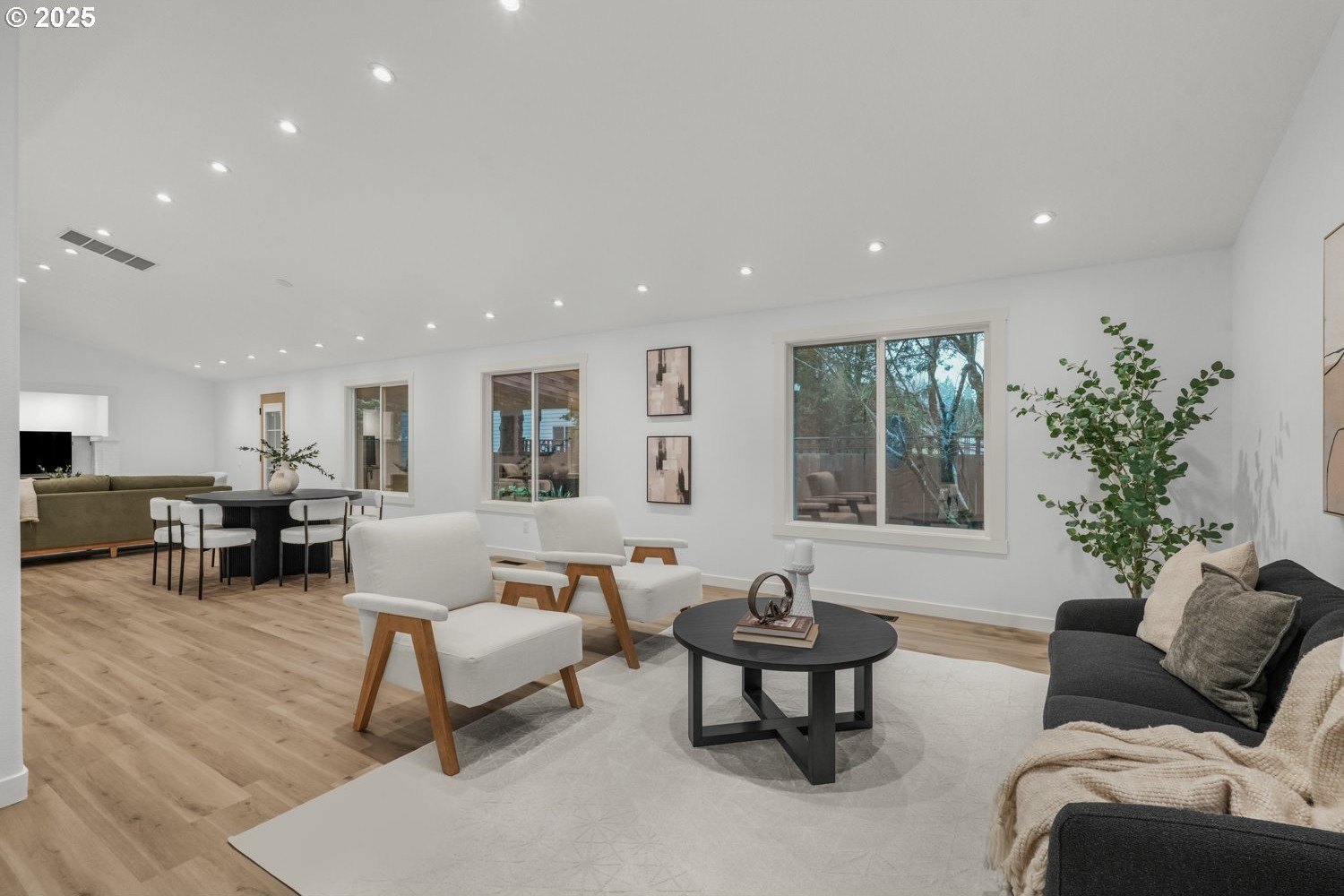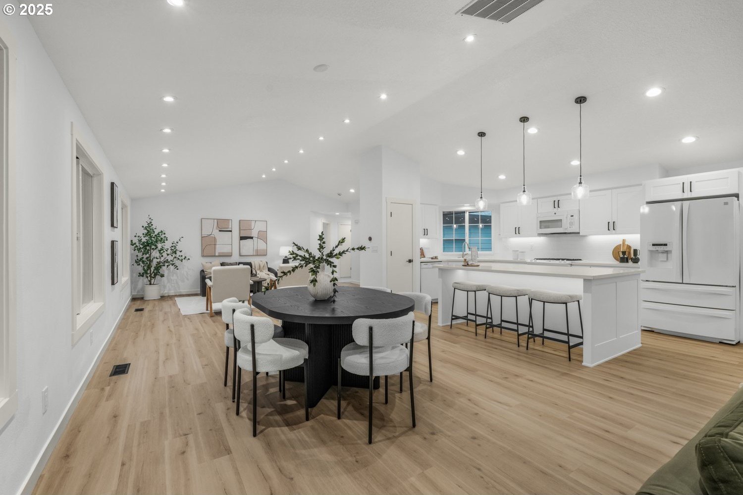 Stunning 3-bedroom, 2.5-bath home in sought-after Gentry Meadows! This light and bright residence showcases high-end finishes, vaulted ceilings, and unique architectural details throughout. Luxury vinyl plank flooring spans the main living areas, enhancing the open-concept floorplan that seamlessly connects the living, dining, kitchen and family room spaces. The gourmet kitchen features gorgeous quartz countertops, a large island with eat bar, gas appliances, and a pantry, and flows effortlessly into the inviting family room with fireplace and access to a spacious covered deck. The primary suite offers a walk-in closet and a private bath with dual vanities and a relaxing jetted tub. Two additional generously sized bedrooms, a full guest bath, a convenient laundry room with half bath complete the interior. There's a central vacuum for easy home keeping. Recent updates include a new roof in 2025, new water heater in 2021, gas furnace replacement in 2013, A/C coil replacement in 2022, and a newer garage door, giving you added peace of mind. Outdoors, enjoy a large fenced backyard with an impressive 28x14 covered deck, perfect for entertaining, plus a tool shed for extra storage. A 3-car garage provides space for vehicles and hobbies. Ideally located just minutes from dining, shopping, schools, Adventist Health Portland, nature parks with hiking trails, and a nearby country club. Excellent walk and bike scores make this an exceptional place to call home.