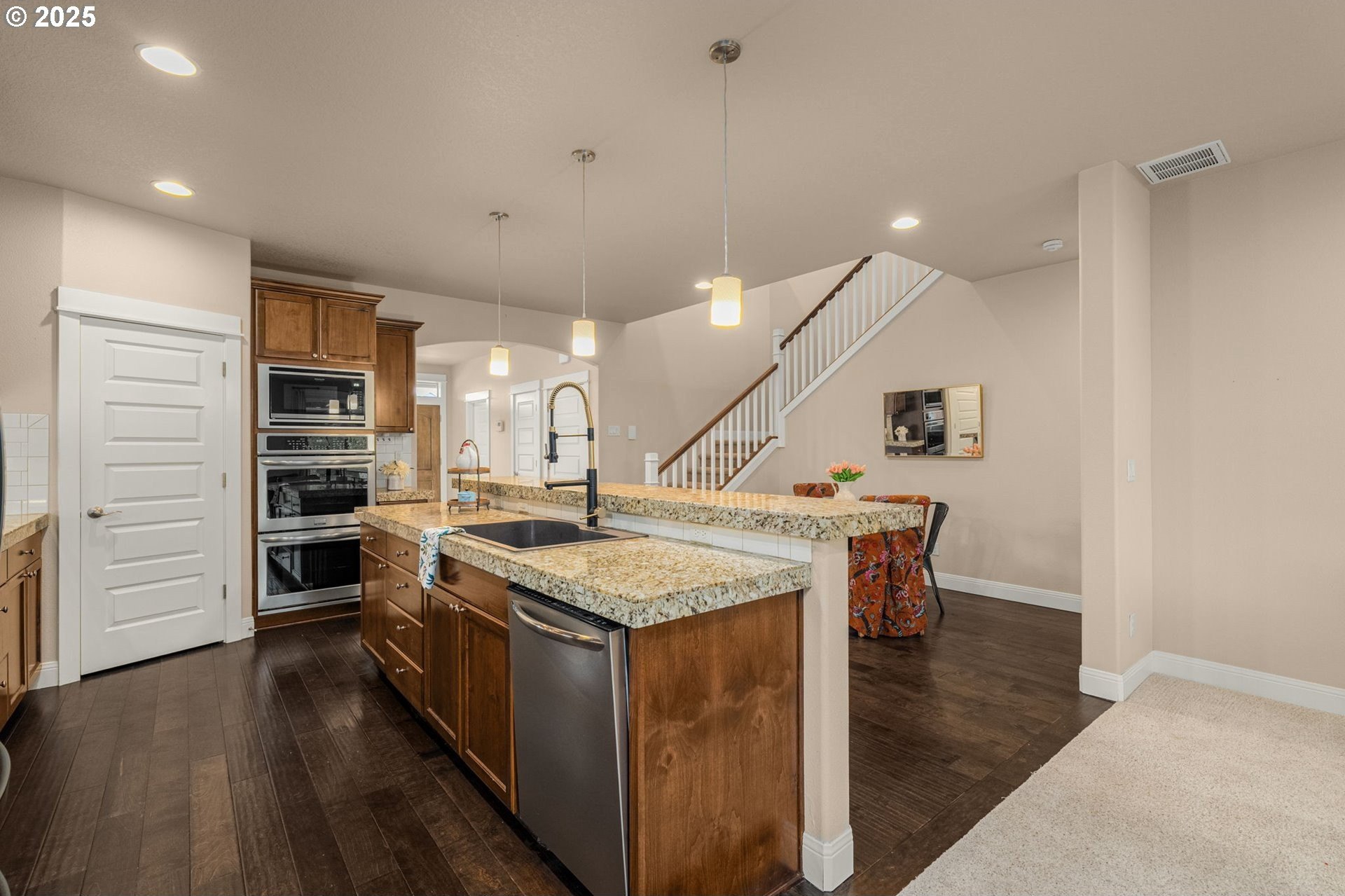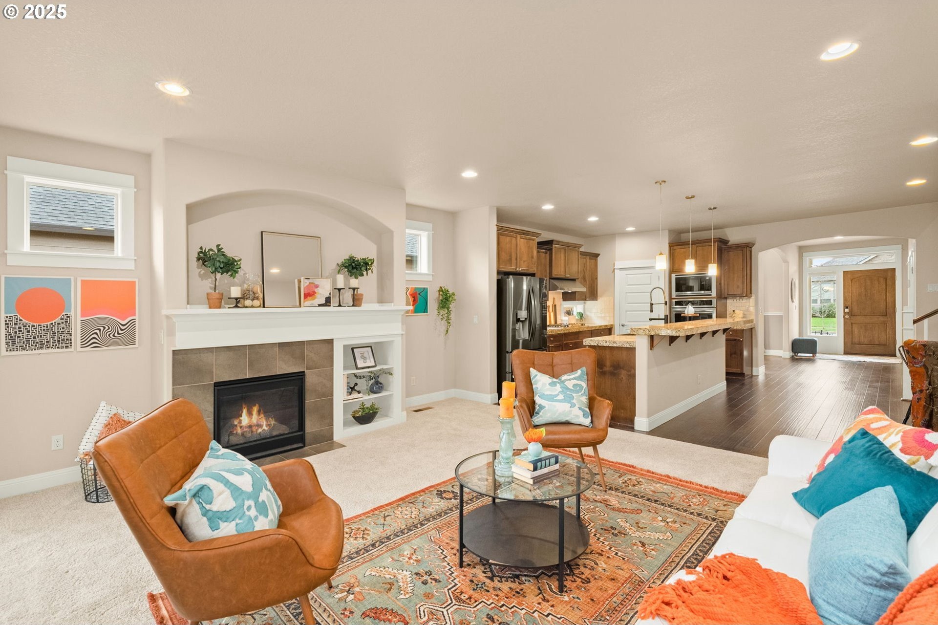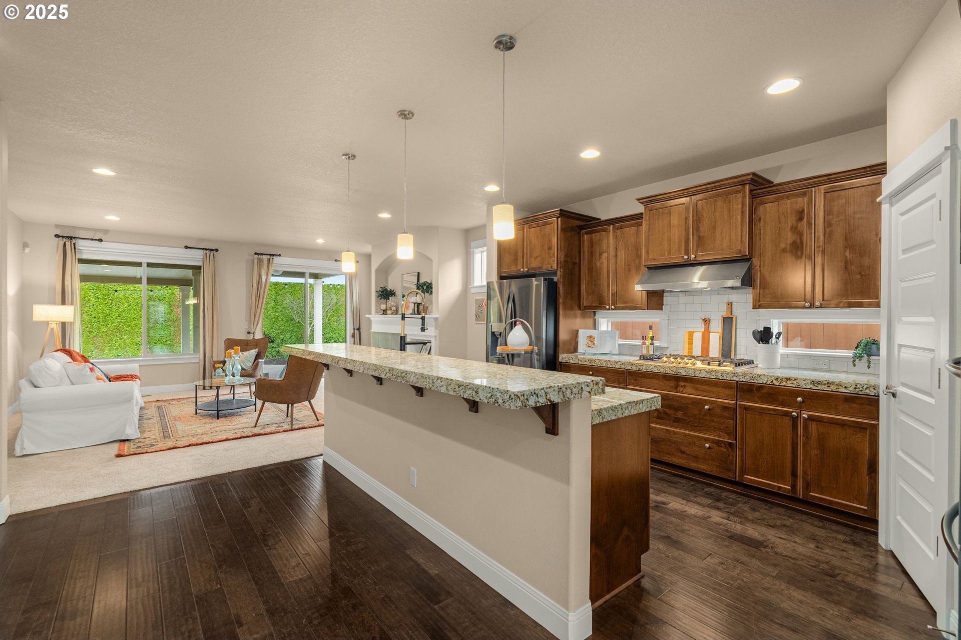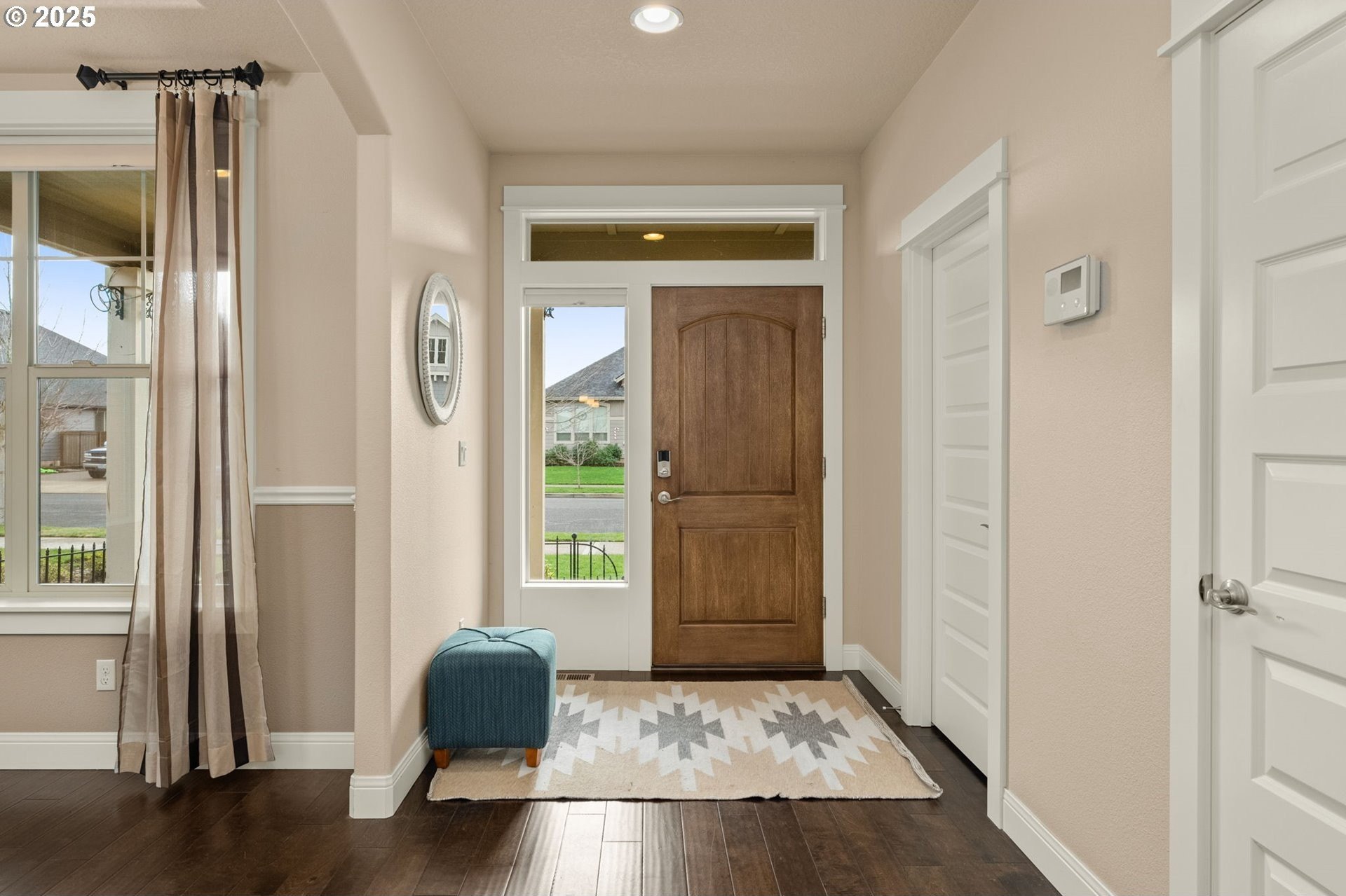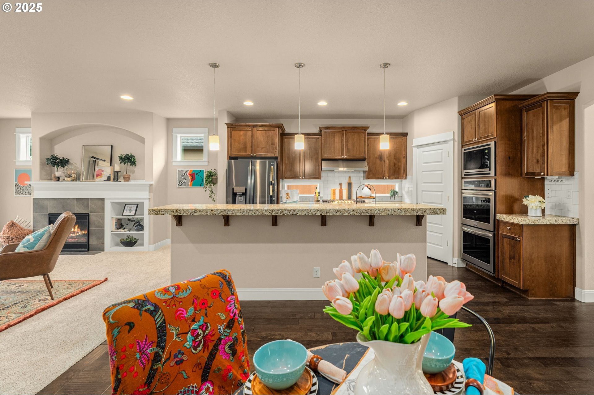 Charming Craftsman Oasis. Experience the perfect blend of modern elegance and cozy charm in this beautifully maintained 2015 traditional Craftsman home. This move-in-ready gem boasts 2,698 SQFT of thoughtfully designed living space, featuring 3 spacious bedrooms and 2.5 baths. Main level highlights include: Luxurious primary suite with ensuite bath, walk-in shower and closet. Closet also for stackable W/D if desired. Stunning kitchen with granite countertops, double ovens, gas range, pantry, and stainless-steel appliances. Formal dining room and high ceilings throughout. Kitchen, entry and dining all have lovely hand scraped engineered hardwood floors. A cozy family room with gas fireplace and built-ins. Effortless indoor-outdoor living with a sliding door to a manicured backyard and covered patio. Water feature, raised beds and tool shed all included in the backyard. Upstairs, discover spacious bedrooms and a versatile bonus nook perfect for work, play, or relaxation. The oversized garage offers extra storage and a third bay, providing ample space for all your needs. Conveniently located near dining, food carts, shopping, and all that Canby has to offer. Don't miss out on this incredible opportunity!