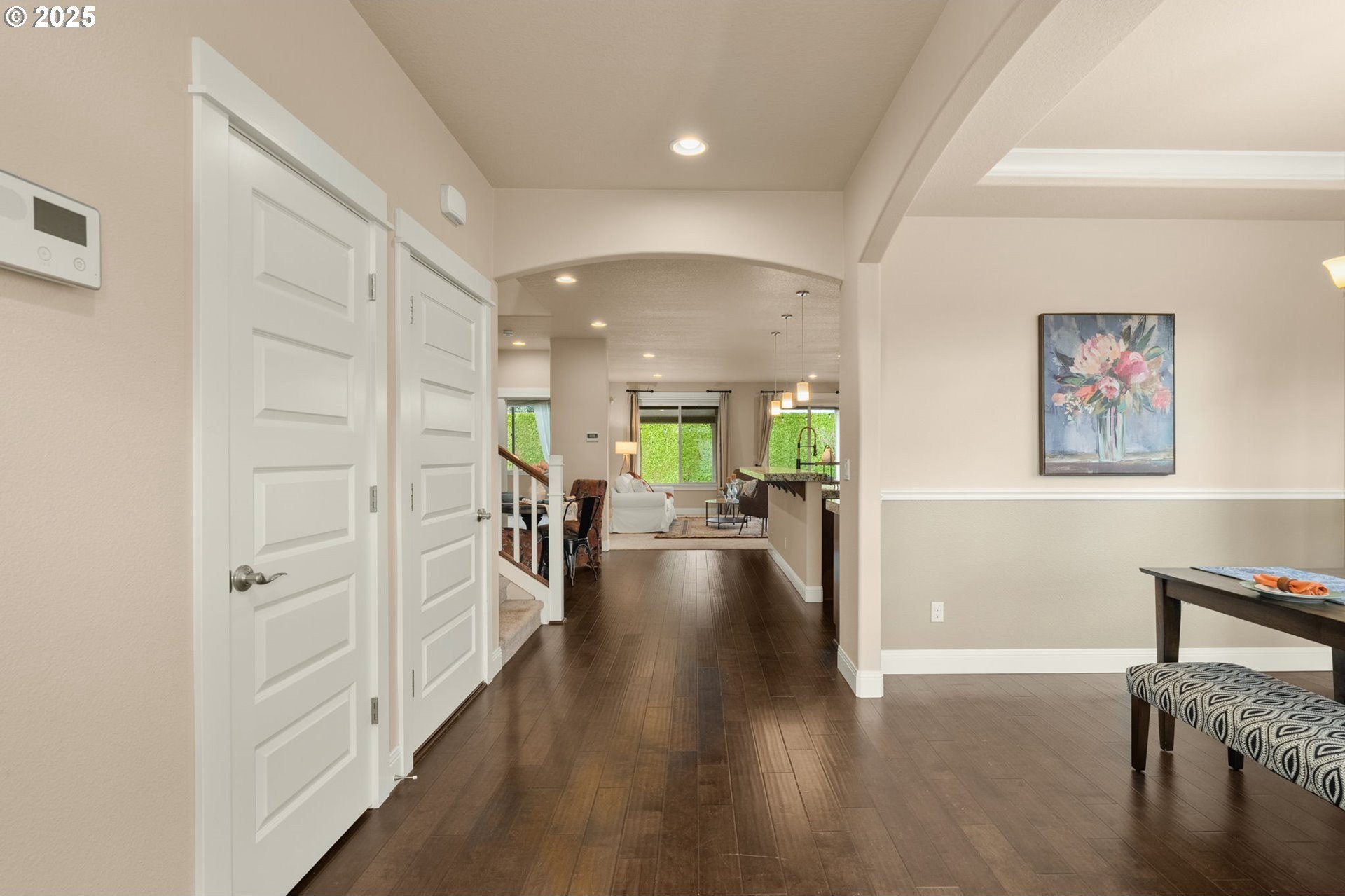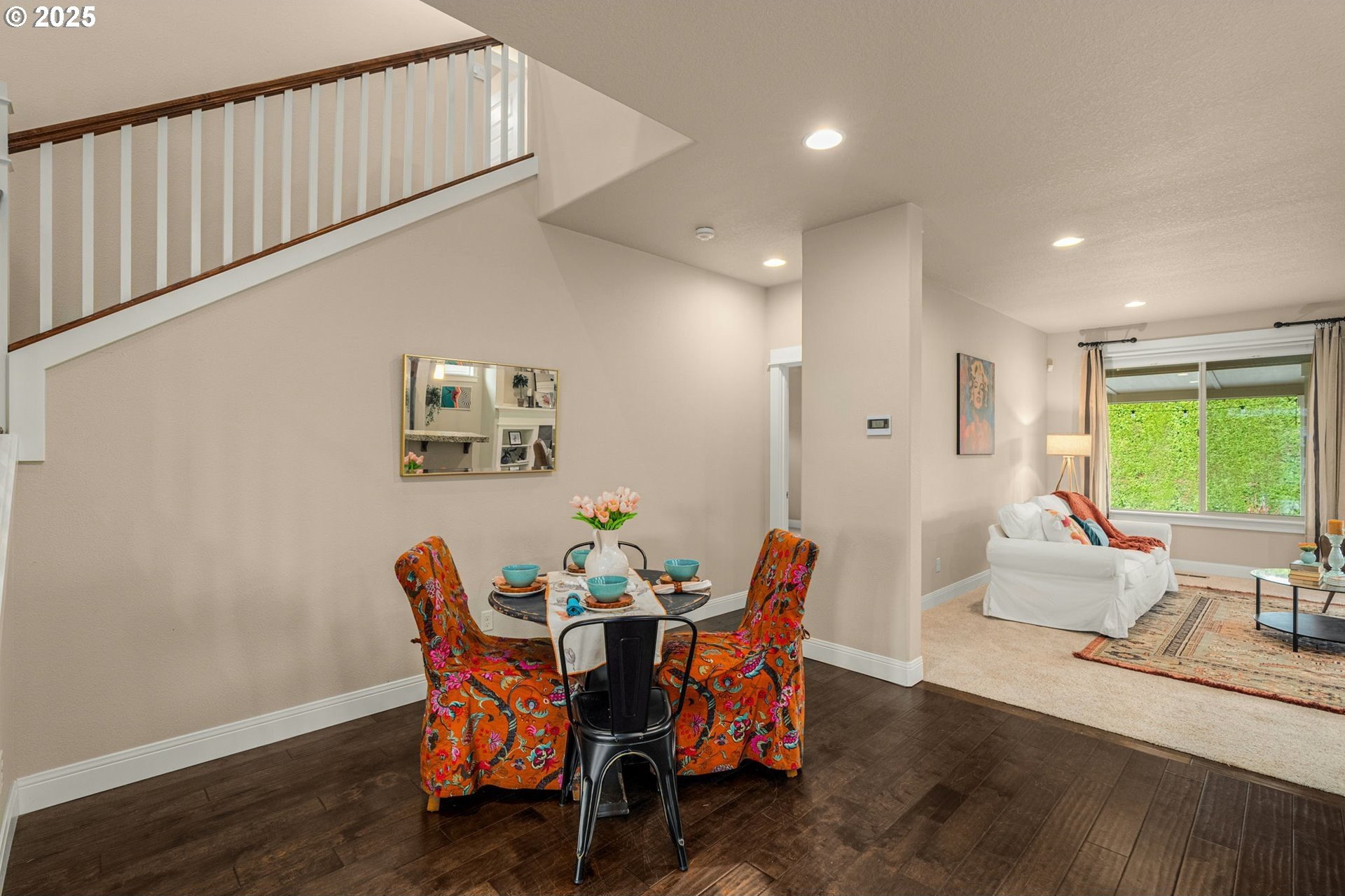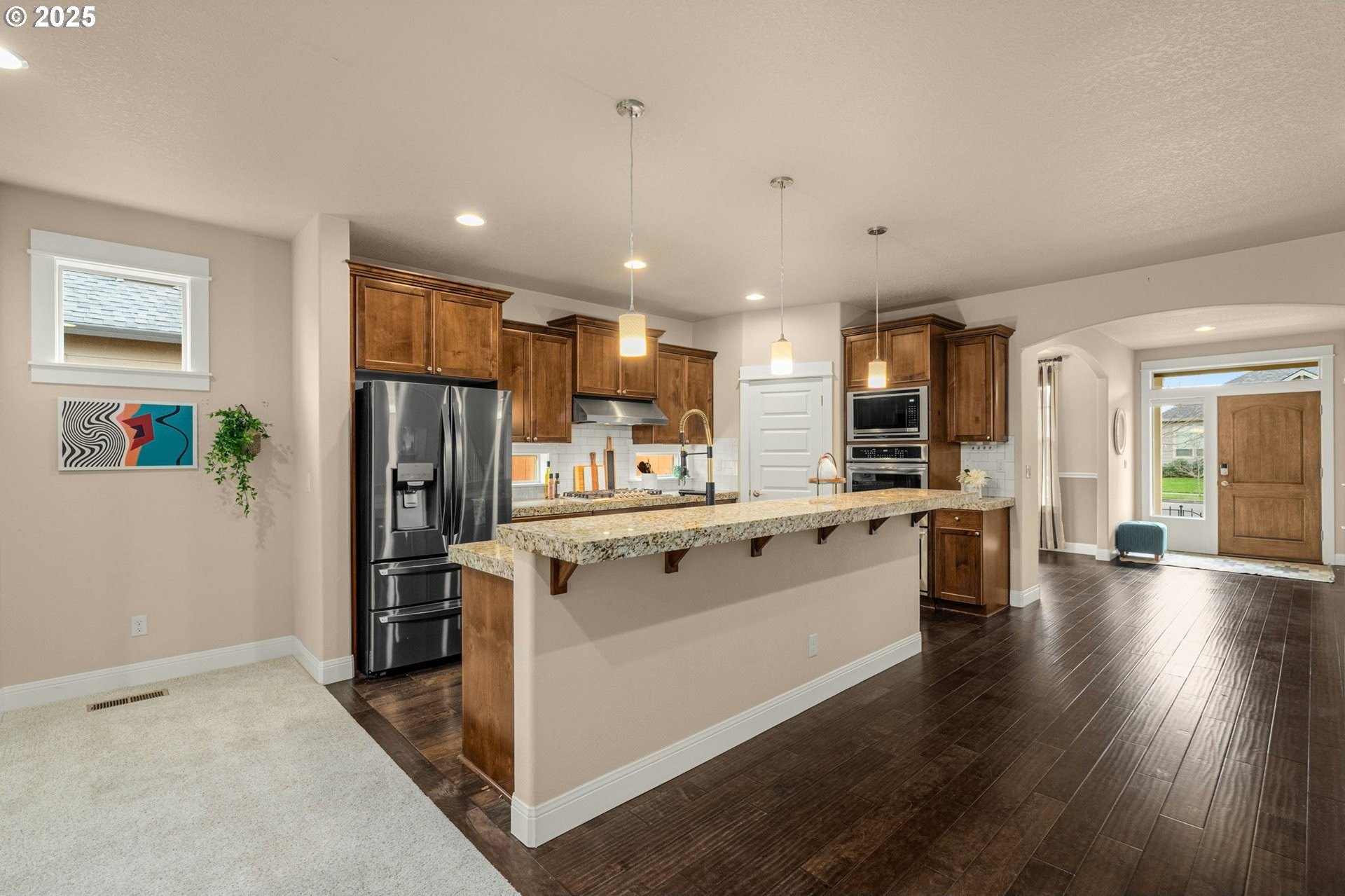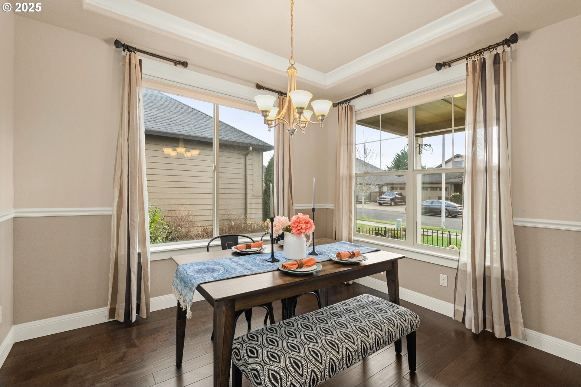 Charming Craftsman Oasis. Experience the perfect blend of modern elegance and cozy charm in this beautifully maintained 2015 traditional Craftsman home. This move-in-ready gem boasts 2,698 SQFT of thoughtfully designed living space, featuring 3 spacious bedrooms and 2.5 baths. Main level highlights include: Luxurious primary suite with ensuite bath, walk-in shower and closet. Closet also for stackable W/D if desired. Stunning kitchen with granite countertops, double ovens, gas range, pantry, and stainless-steel appliances. Formal dining room and high ceilings throughout. Kitchen, entry and dining all have lovely hand scraped engineered hardwood floors. A cozy family room with gas fireplace and built-ins. Effortless indoor-outdoor living with a sliding door to a manicured backyard and covered patio. Water feature, raised beds and tool shed all included in the backyard. Upstairs, discover spacious bedrooms and a versatile bonus nook perfect for work, play, or relaxation. The oversized garage offers extra storage and a third bay, providing ample space for all your needs. Conveniently located near dining, food carts, shopping, and all that Canby has to offer. Don't miss out on this incredible opportunity!