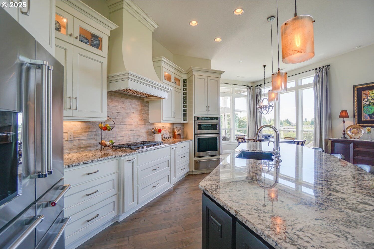 Experience the best of Pacific Northwest living in this Cascade West custom home, where unmatched craftsmanship meets sweeping mountain and territorial views. Soaring 12' ceilings and walls of 8' windows flood the open-concept main level with natural light, framing the scenery at every turn. The gourmet kitchen is a chef's dream, featuring a 12' bar with granite countertops, custom cabinetry, stainless steel appliances, and an oversized island ideal for entertaining. The luxurious primary suite offers a private retreat with a spa-inspired bath, Jacuzzi tub, walk-in shower, and expansive closet. The lower level is designed for relaxation and entertainment, complete with a custom bar, wine cooler, quiet suite and spacious lounge area. Outdoor living is equally impressive, with composite decking, a paver patio with gas fire pit, hot tub patio, and beautifully landscaped grounds. Tucked away from the street, this home offers exceptional privacy, with owner driveway and no traffic, with a peaceful setting that enhances its panoramic views. Additional features include maple hardwood floors, central vacuum, tankless water heater, Lennox high-efficiency HVAC, and an oversized 4-car garage. This home is the perfect balance of elegance, comfort, and unforgettable views. Dec.2025 appraisal means instant equity and more SF.
