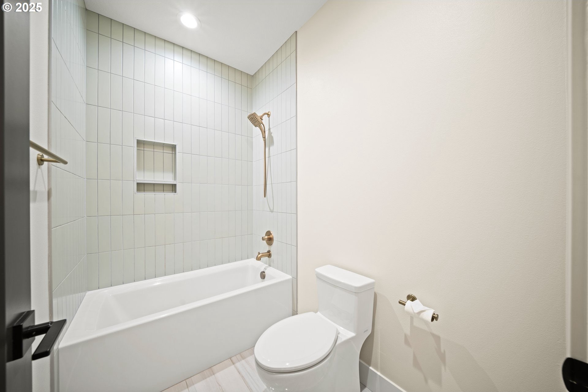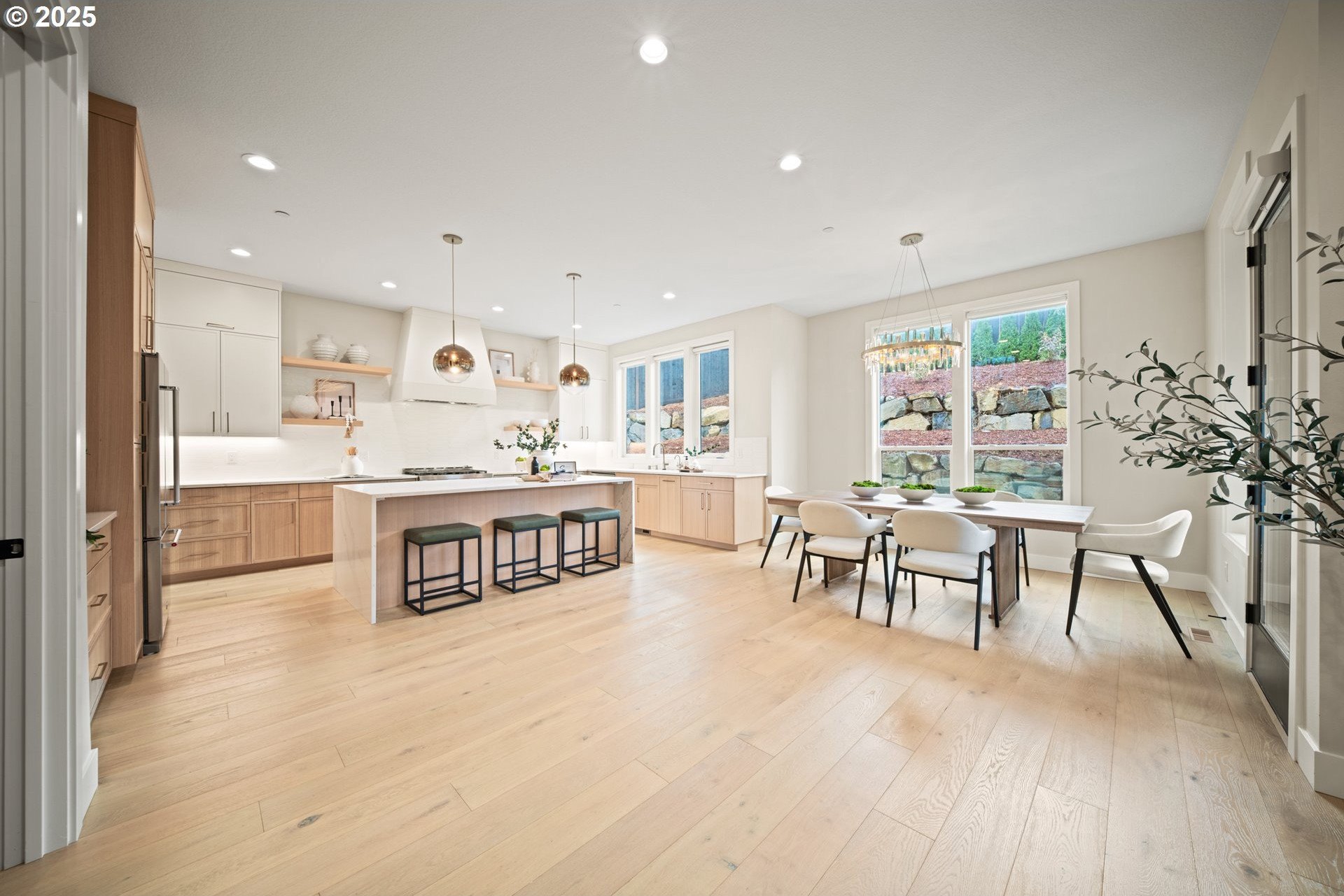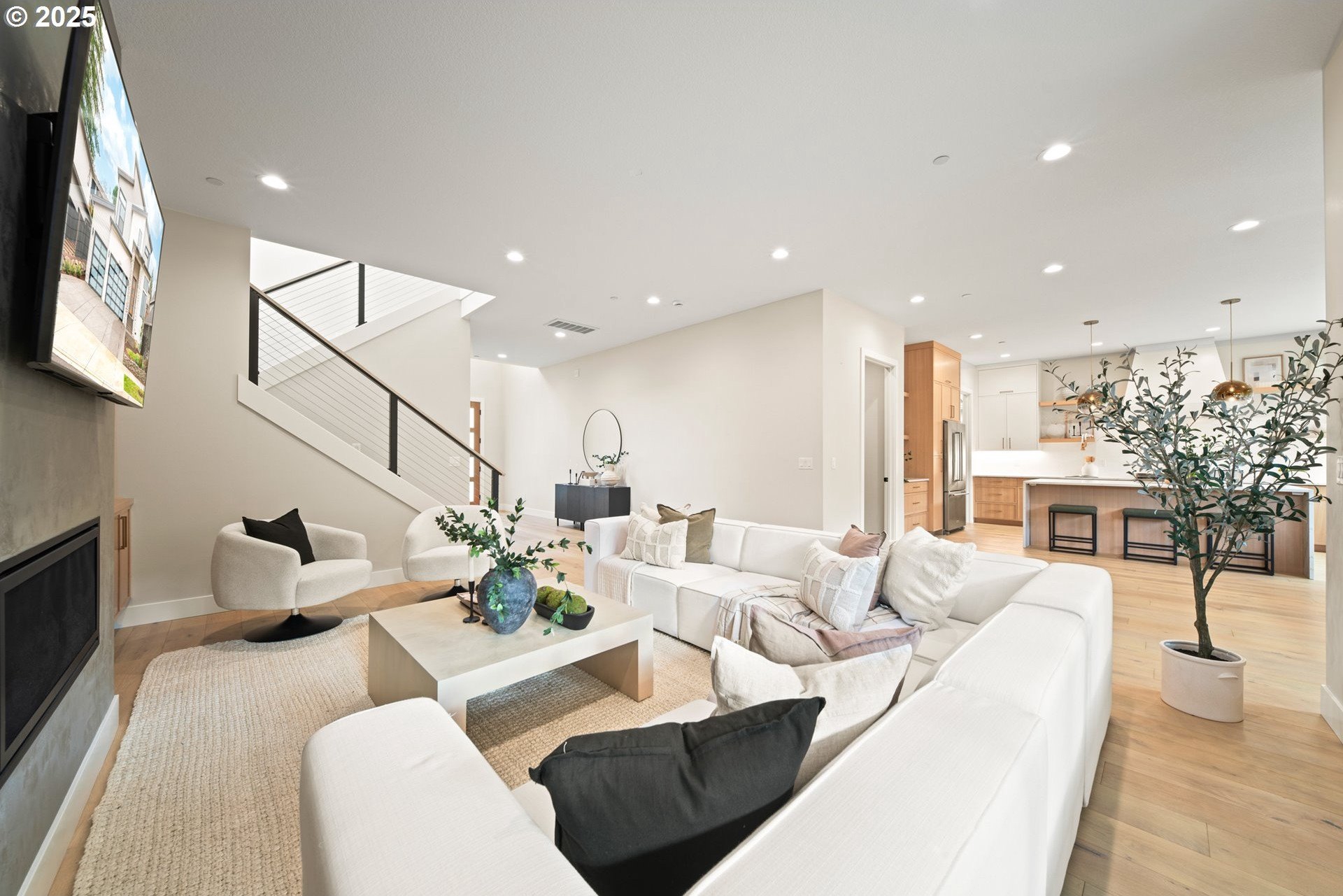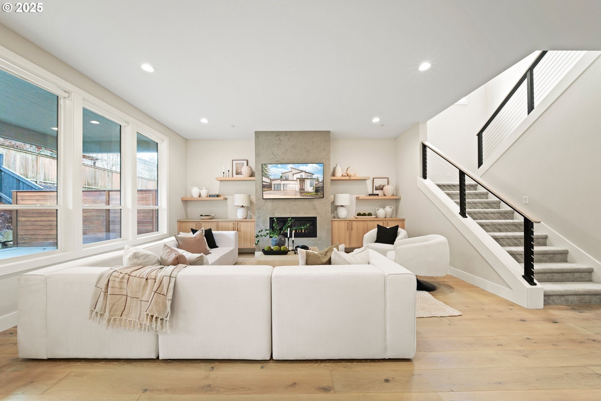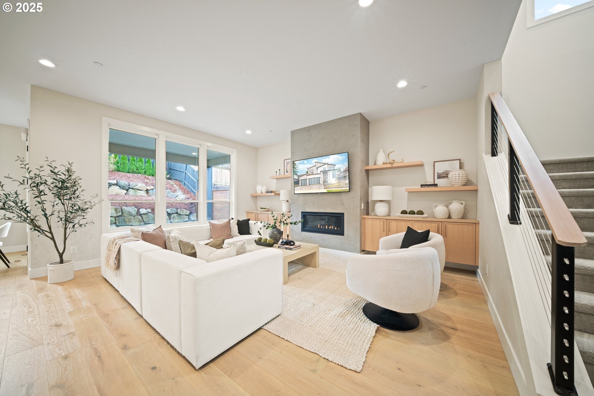 Beautiful modern custom home built by local boutique builder in Summit Terrace on Prune Hill. The exterior is just as stunning as the interior. Open concept style that is light and bright with 10' foot ceilings on main and 8' doors throughout. Dream kitchen with Rift Oak Cabinets and shelving, spacious waterfall quartz island, walk-in pantry with butcher block counter, high end appliances, and oak engineered hardwood flooring all throughout main floor. This home has four bedrooms on upper floor, den/office on main including closet and a full bathroom on main floor. The spacious primary bedroom includes a spa like bathroom with floor to ceiling tile, rain shower head and freestanding tub, a large walk in closet with ample shelving. Plush carpet with memory foam pad underneath throughout second floor. Two of the upstairs bedrooms have walk-in closets, generous storage space. HOA covers front lawn maintenance; low maintenance backyard has a partially covered deck that can be enjoyed year round. Home backs to a parklike trail. No details were spared from all of the custom cabinetry, tile choices, lighting, fixtures and handles. Located in the highly desirable, top rated Camas Schools. Lovely neighborhood with walking trails, minutes to Lacamas Lake , and prime location to freeway, PDX airport, Vancouver waterfront. You will love to call this place home!