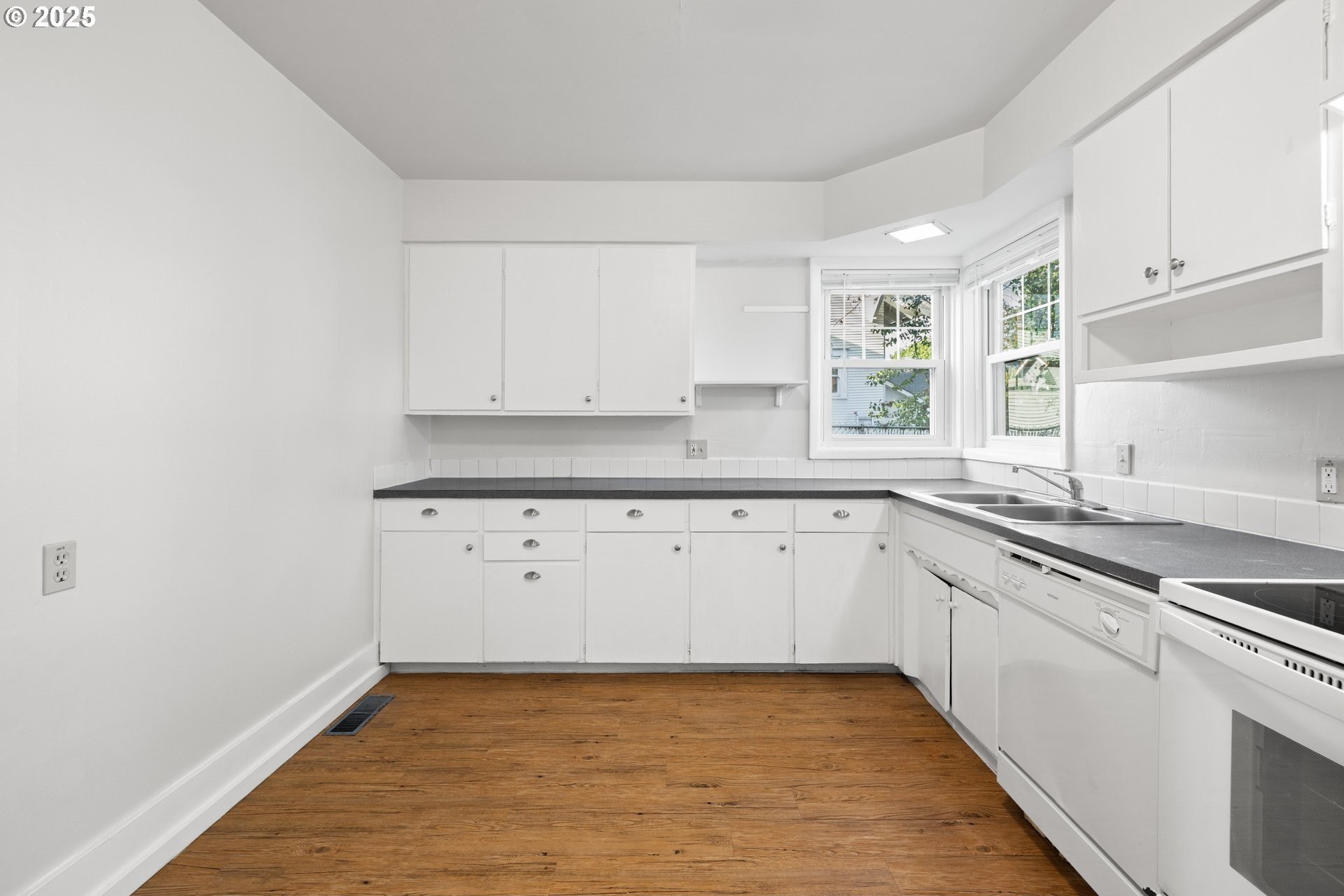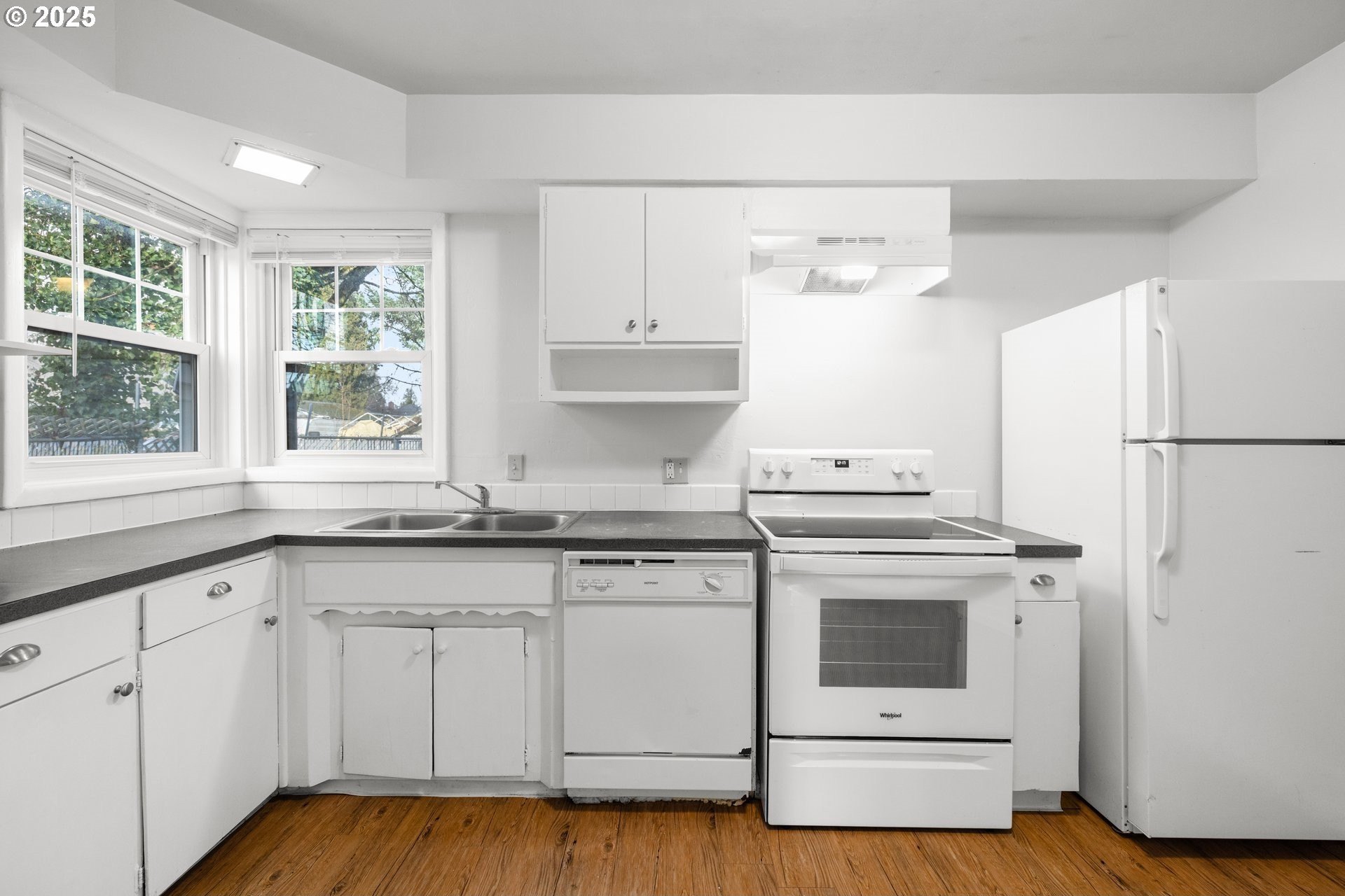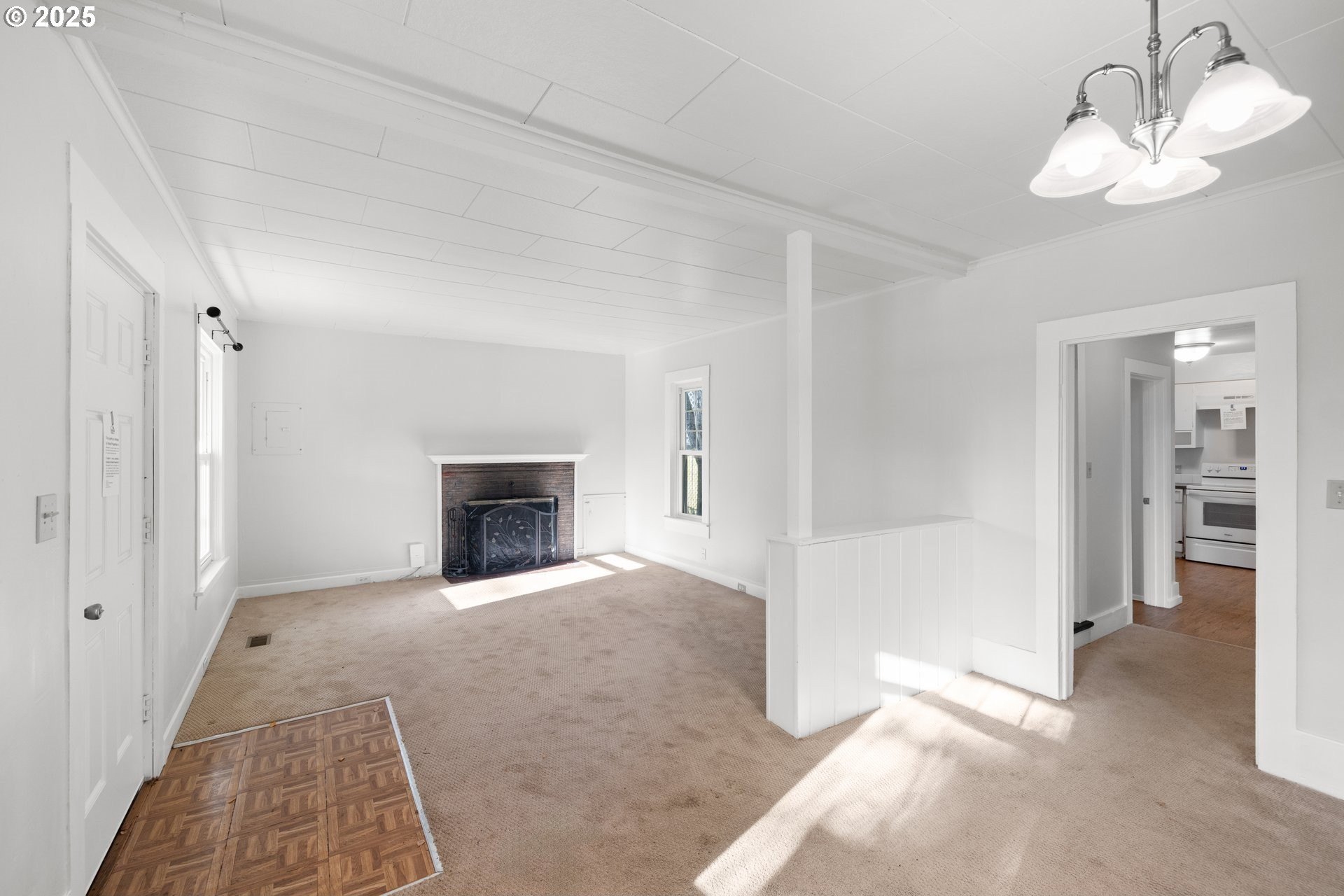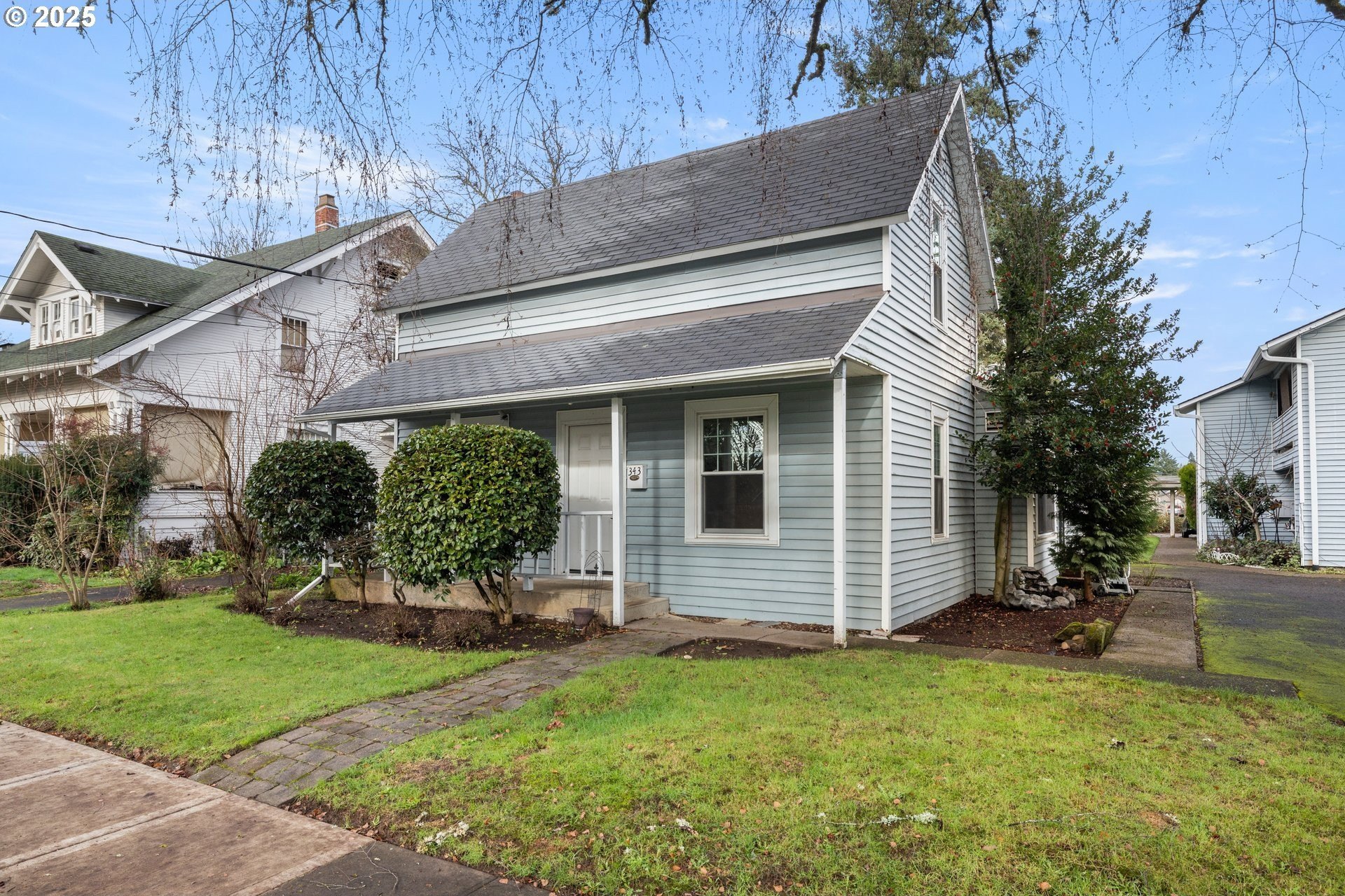 Charming four bedroom home featuring a covered front porch and a welcoming parquet wood entry that opens to spacious living and dining areas. The living room offers a cozy fireplace insert and built-in bookcase. The kitchen includes painted wood cabinetry and appliances, including refrigerator, range, and dishwasher. One bedroom, a full bathroom, and a utility room are located on the main level, with convenient access to the backyard. Upstairs features three additional bedrooms and a second full bathroom. The partially fenced backyard includes a paved walkway. Ideally located near Bagley Park, Lincoln Street Elementary, shopping, and restaurants. OPEN: Sat 12/27 & Sun 12/28 1-3pm