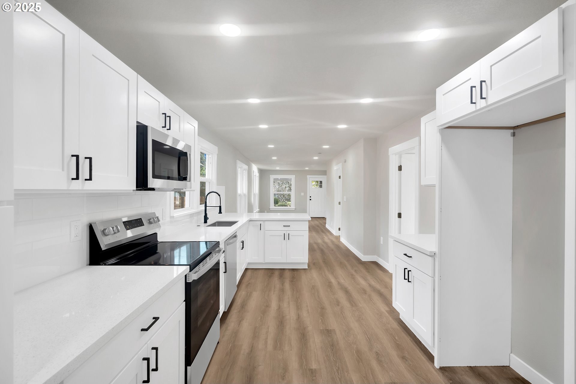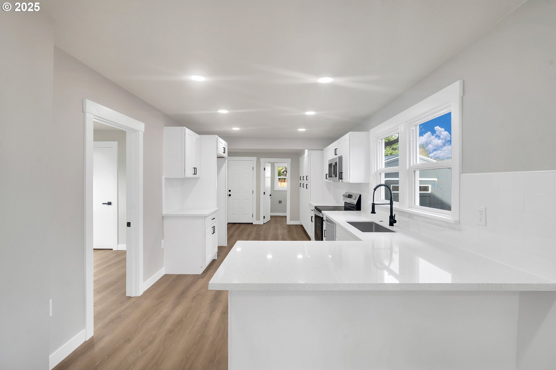 Welcome to this beautifully designed, newly built one-level home offering modern comfort and effortless living in a convenient Southeast Portland location. With three bedrooms and a thoughtfully designed open-concept layout, this home feels bright, airy, and incredibly spacious. LVP flooring flows throughout, while oversized windows in the main living areas fill the home with natural light and enhance the seamless connection between the living, dining, and kitchen spaces-perfect for both everyday living and entertaining.The primary bedroom features a private ensuite bathroom with a walk-in shower, creating a relaxing retreat. Step outside to a fully fenced backyard with a tool shed, ideal for storage, hobbies, or gardening.This home offers easy access to parks, schools, shopping, and dining, with quick connections to I-205 and public transportation for an easy commute throughout Portland. Enjoy nearby green spaces, neighborhood amenities, and the convenience of being minutes from both urban essentials and outdoor recreation. Move-in ready and completely new, this home delivers style, comfort, and an excellent location.
