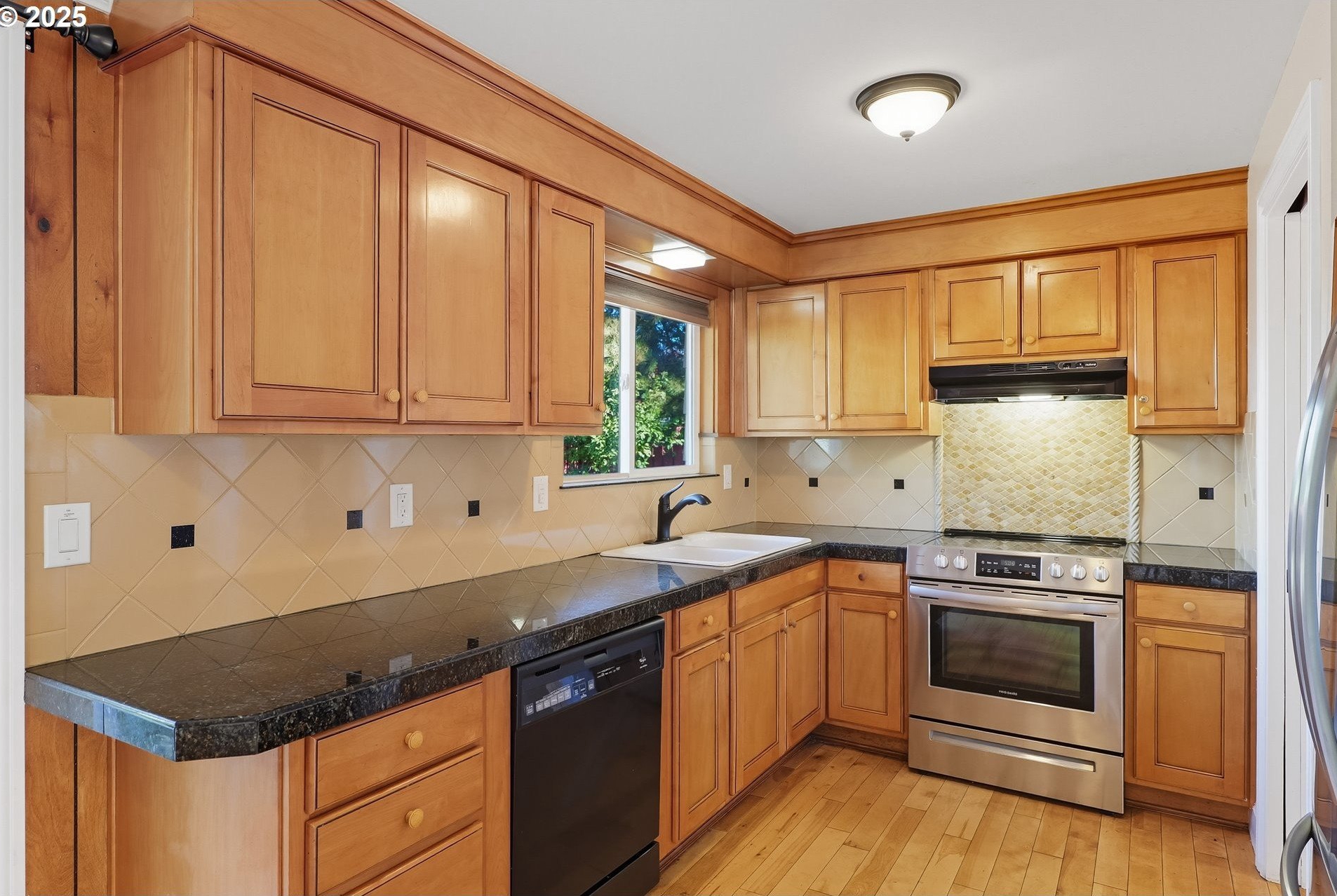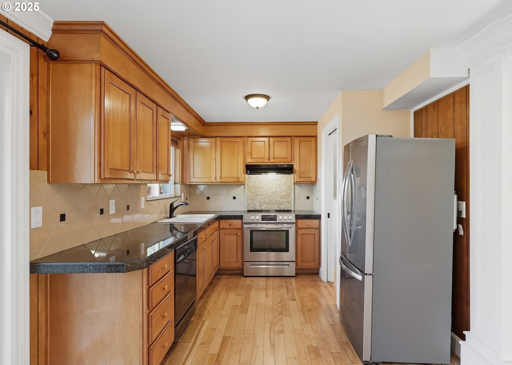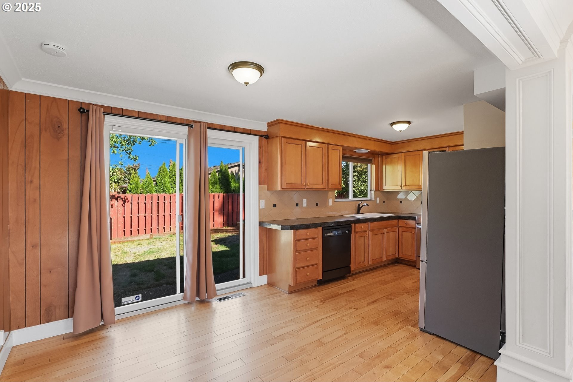 Welcome home to this well-maintained property nestled on a quiet cul-de-sac! Step inside to beautiful hardwood floors and a bright living room with a large picture window, opening seamlessly to the dining area and kitchen with direct access to the garage. The upper level features three comfortable bedrooms and a full bath. The finished basement adds two additional bedrooms, a second bath, and convenient outside access to the backyard-perfect for guests or multigenerational living. Enjoy peace of mind with a newer A/C (installed within the last 3 years), new 200amp electrical panel and a nearly new refrigerator (6 months old). The home is move-in ready and includes range, refrigerator, washer, and dryer. The spacious, fully fenced yard offers plenty of room for outdoor living and play. Easy access to I-84 completes this fantastic find!