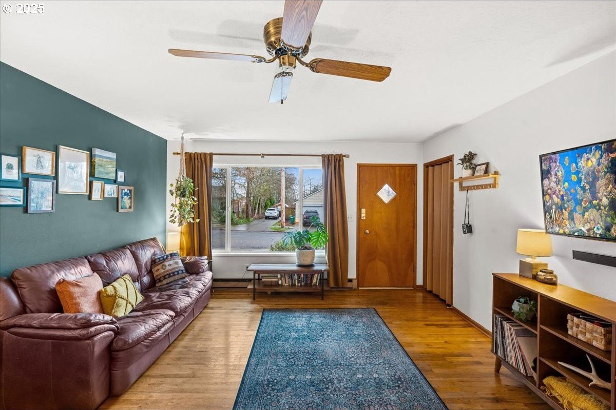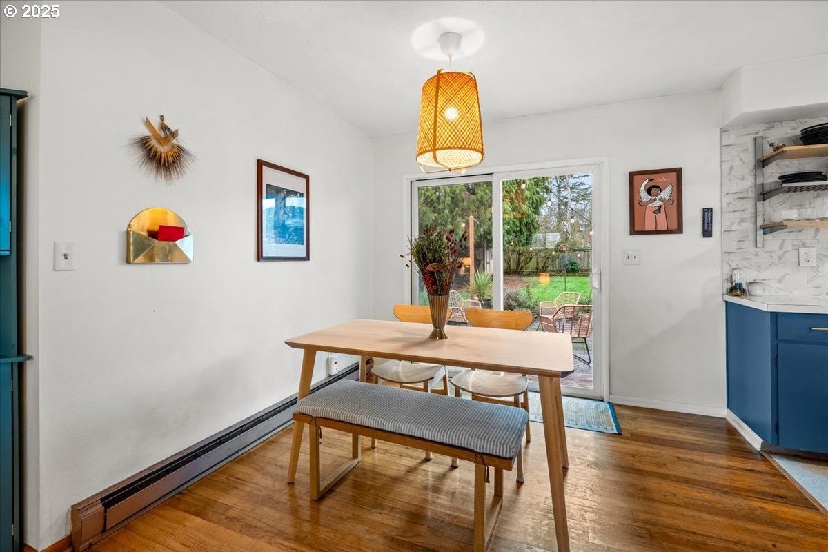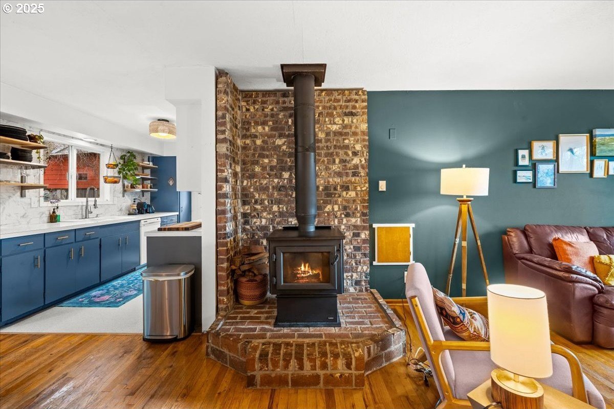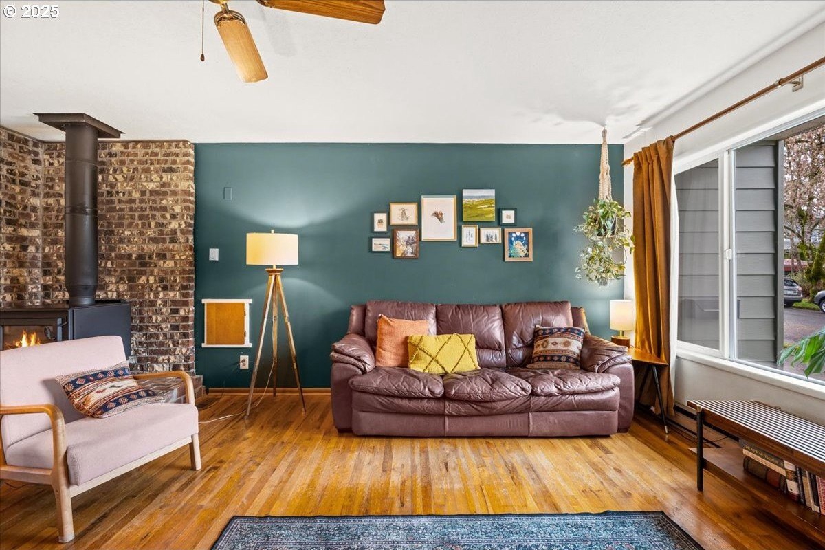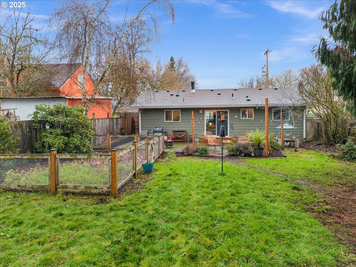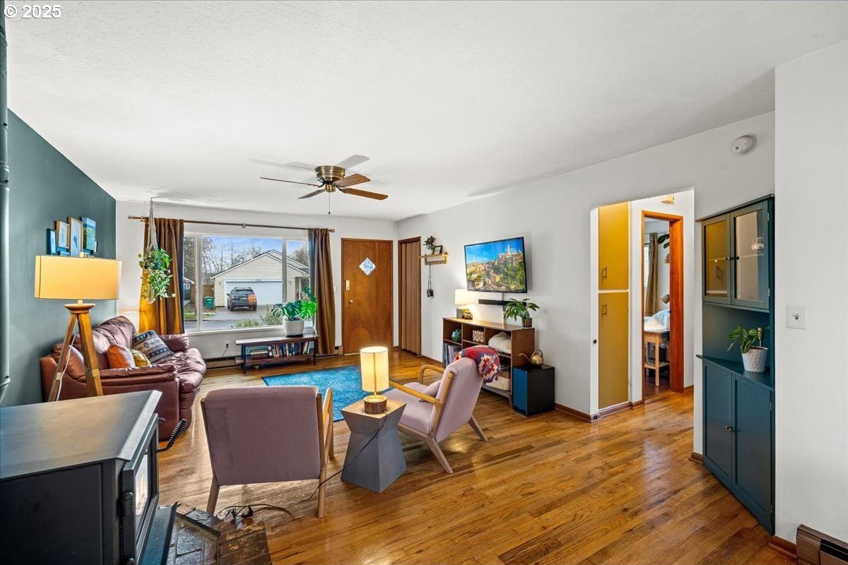 Charming and thoughtfully updated Forest Grove bungalow with the confidence of a completed pre-listing inspection. This light-filled 2-bedroom, 1-bath home offers warm wood floors, a cozy wood-burning stove, and an inviting living space that blends comfort with character.The kitchen features updated cabinetry, open shelving, built-in microwave, dishwasher, and generous counter space-ideal for everyday living and entertaining. Step outside to a fully fenced backyard with garden beds, patio space, and room to relax, gather, or grow. Attached garage, driveway parking, and mature trees complete the setting.Pre-listing inspection available, offering buyers clarity and peace of mind. Conveniently located near schools, parks, and downtown Forest Grove amenities.