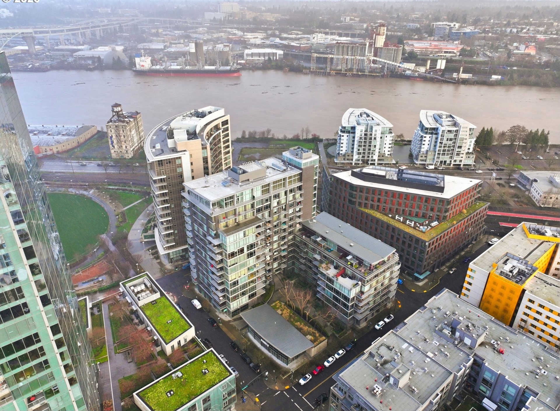 Exceptional opportunity in the coveted Pinnacle building in Portland's premier Pearl District. Units 411 & 413 have been seamlessly combined to create a spacious, light-filled residence with a fully permitted, high-end remodel. Enjoy sweeping river views through dramatic floor-to-ceiling windows and an unbeatable central location just steps to dining, shopping, parks, river path and transit.Designer finishes elevate every detail, including quartzite countertops, Blanco sinks, and premium Dacor appliances highlighted by a 48" chef's range with pot filler. High-end engineered wood flooring flows throughout, complemented by a formal entry and an oversized laundry room with abundant storage and a secondary entry-ideal for modern living and work-from-home flexibility.This offering includes two deeded parking spaces in a secured, gated garage and two deeded storage units. The building features a secure, key fob-accessed front entry for added peace of mind. Residents also enjoy access to the 7th-floor outdoor patio-perfect for a happy hour cocktail, a midday work-from-home break, or catching up with friends. A rare, turn-key Pearl District residence that combines luxury, functionality, and location.