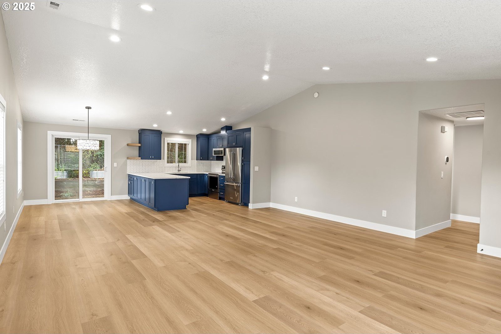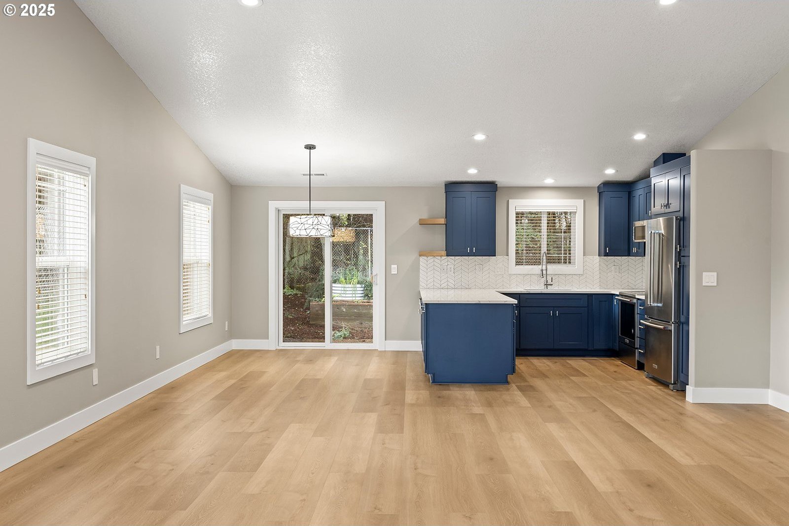 Welcome to low-maintenance living in this thoughtfully designed, custom-built ranch-style home. Tucked away on a quiet street and set on a beautifully landscaped lot, this move-in-ready, single-level residence features fresh interior paint and new luxury vinyl plank flooring throughout.Lovingly maintained by its original owners, the home offers numerous upgrades, including a remodeled kitchen with new cabinetry, quartz countertops, a large island, and new appliances-all opening seamlessly to a spacious great room filled with natural light. Additional improvements include a newer roof, an updated forced-air heating system with air conditioning, and generously sized bedrooms.The primary suite provides a comfortable retreat with a walk-in closet and an ensuite bathroom featuring a walk-in shower. Outdoors, enjoy raised garden beds, a fully fenced backyard, and the peaceful setting of adjacent green space backing to wooded acreage-perfect for privacy and relaxation.Even more to appreciate in person-schedule your showing today.