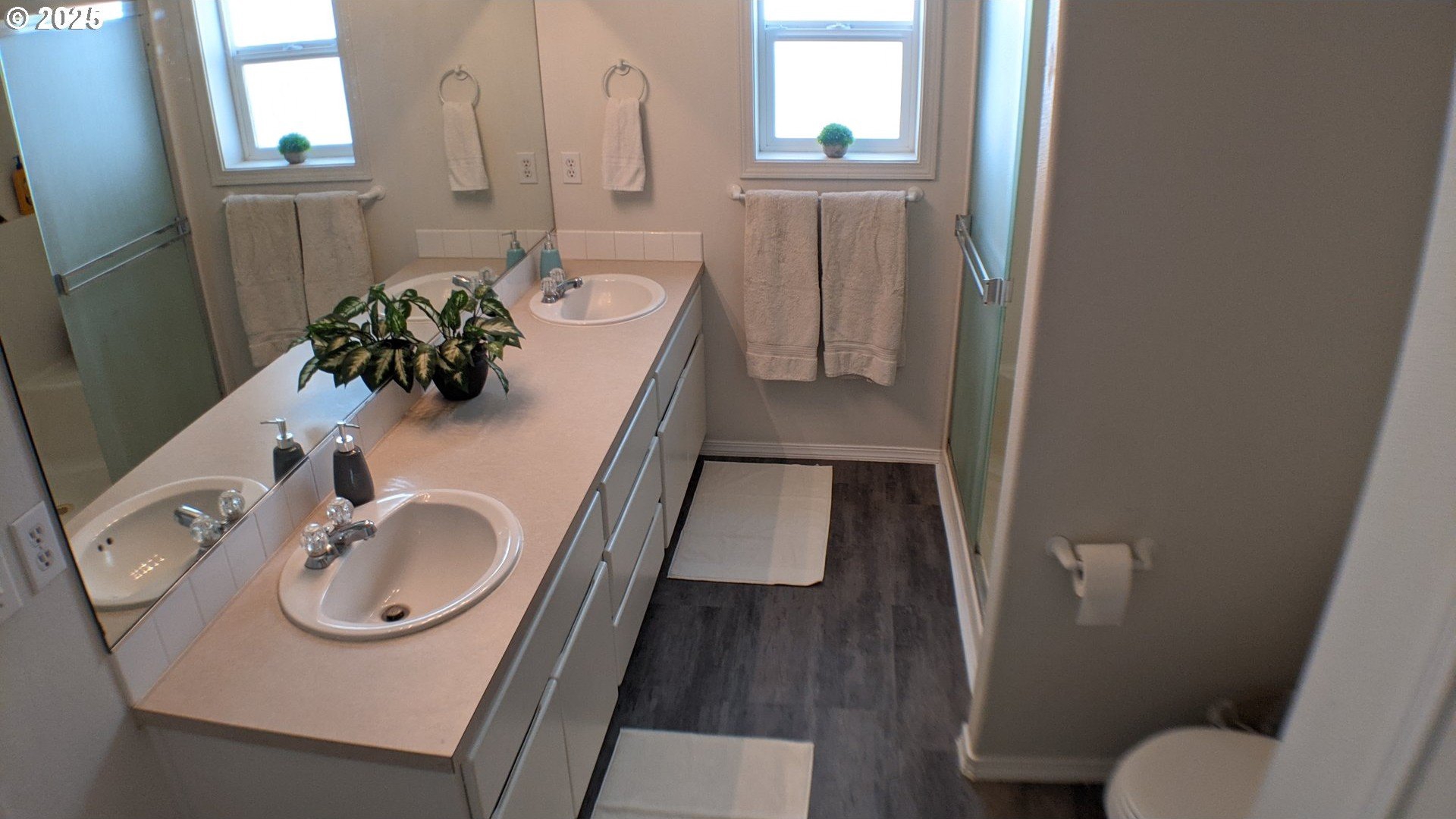 Welcome to this large, 4 bedroom home located in the heart of Ridgefield. Open the door to a soaring entryway and walk into the open concept living room and half-bathroom. Continue on to the kitchen complete with oak cabinets, island, eating area and a full size pantry. The primary bedroom has close access to the kitchen for those midnight snacks. It also includes a cozy, gas fireplace, walk-in closet and a double sink bathroom Upstairs, enjoy a big bonus room with a full length window seat. Walk down an extra wide hallway to the bathroom, laundry room and three more bedrooms with large closets. One could be used as an office or exercise room. The central air keeps the home comfortable in the winters and summers. As a bonus, there's a heat pump serving as a backup heat source. Located on a quiet street with easy access to neighborhood greenspace walking trail and playground. There's NO HOA. Great location halfway between downtown Ridgefield and the Rosauers shopping area. Costco and the only In-N-Out Burger in Washington are a quick drive down the street! Close freeway access but no freeway noise! *NEW ROOF* Installed last year! Updated flooring: COREtec Plus - Large Tile Weathered Concrete Vinyl Flooring. LIFETIME Warranty! Installed in main living area, kitchen, entry way, bathrooms and laundry room. This is 100% waterproof and will never swell when exposed to water. Also contains "cork underlayment for a quieter, warmer vinyl floor that is naturally resistant to odor causing mold and mildew". Carpet in all bedrooms/bonus room, hallways and stairs has "Prime Comfort" Premium Carpet Pad with HyPURguard and SpillSafe Double-sided Moisture Barrier. Great house for a fantastic price! Come see it today!