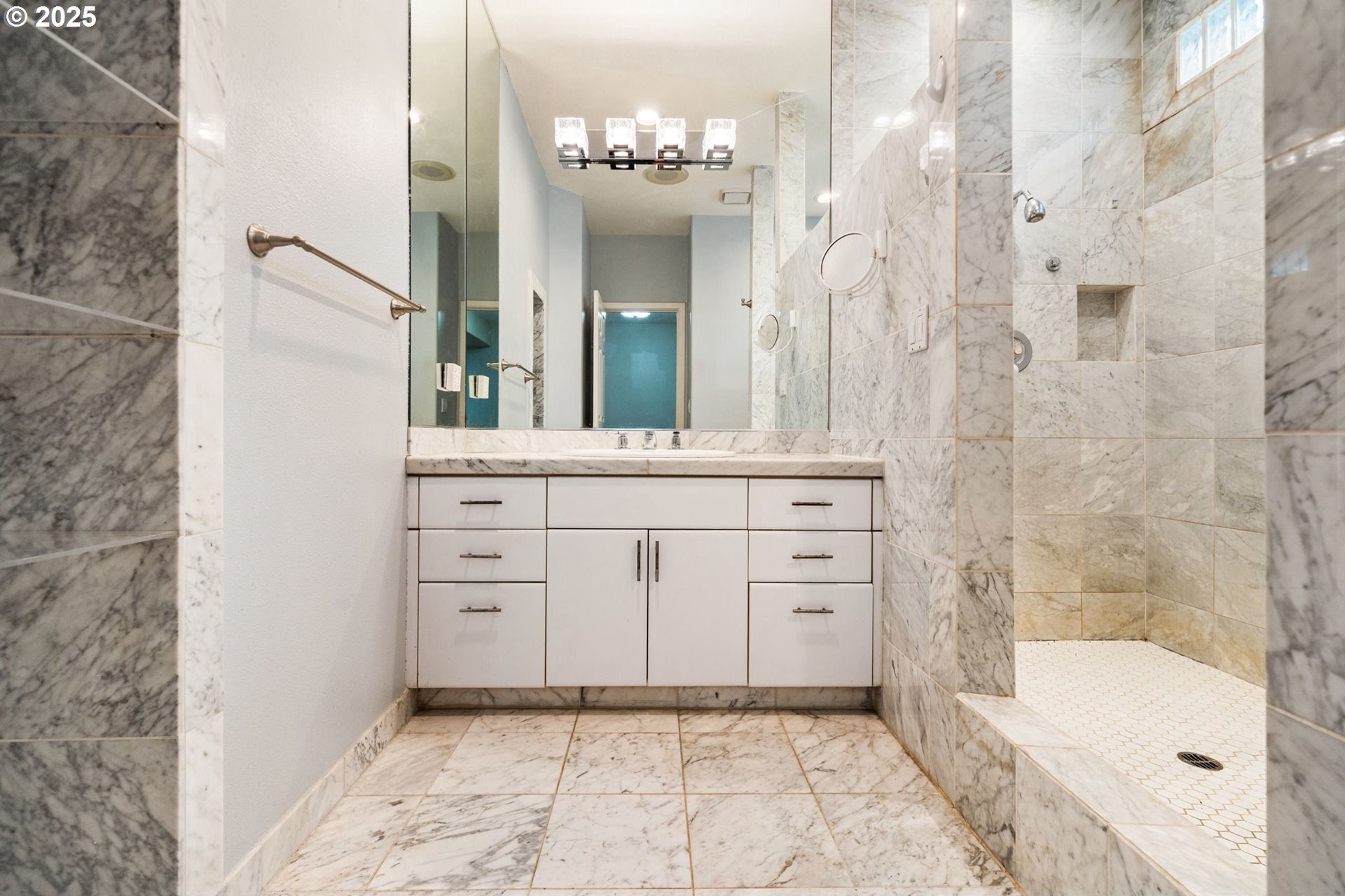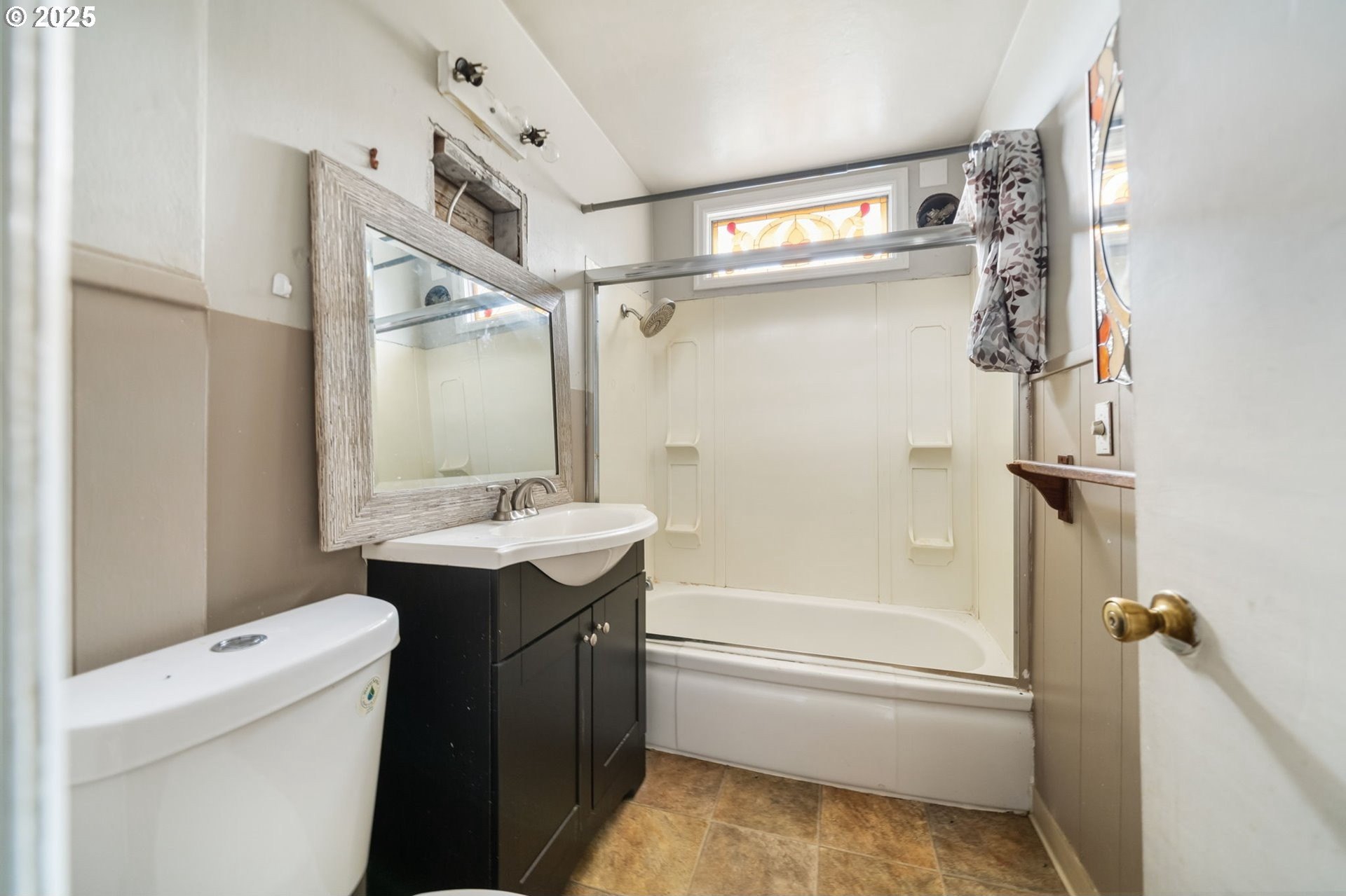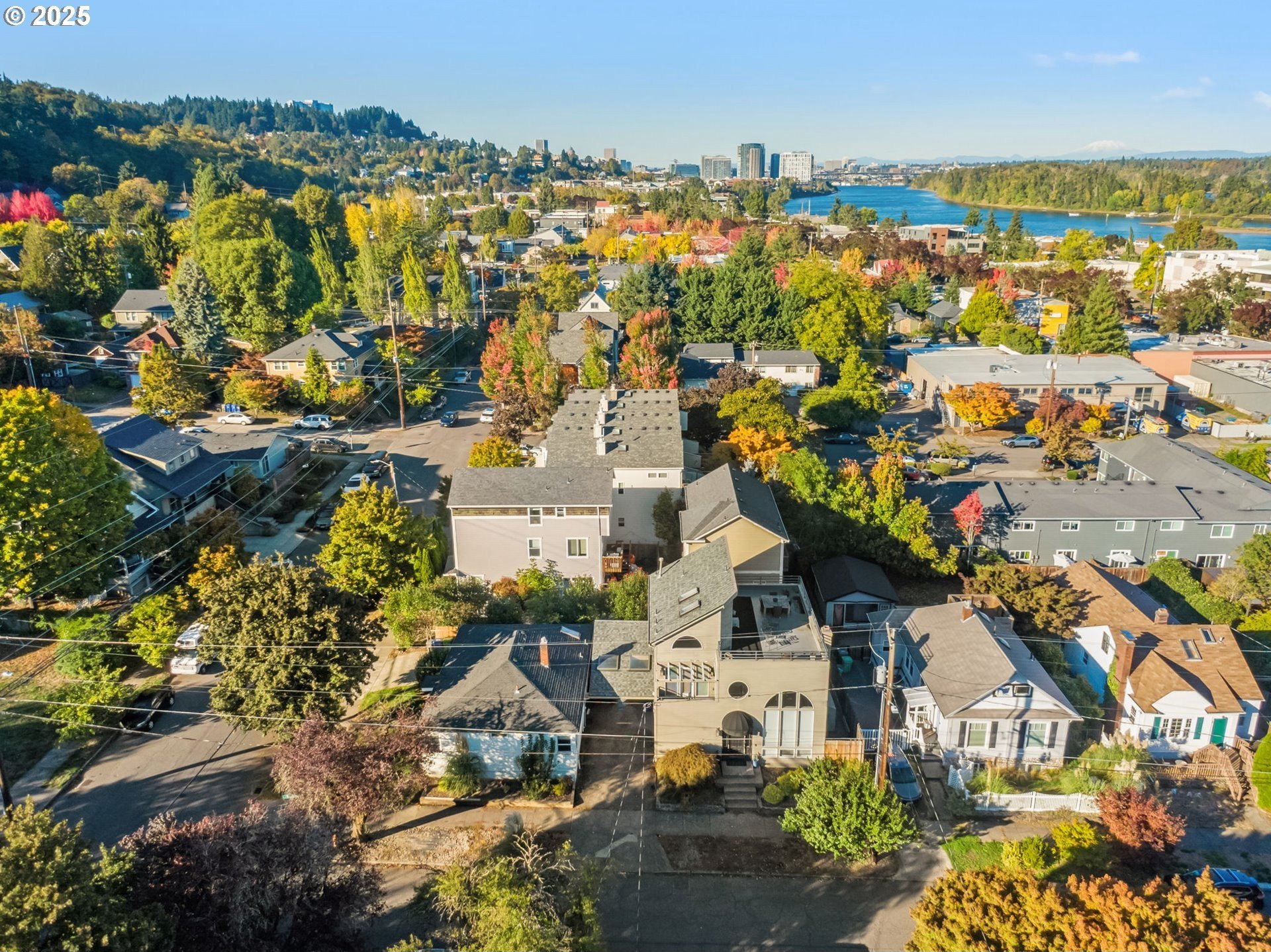 Rare opportunity in John's Landing. Two homes on one tax lot offering flexibility for multigenerational living, income potential, or future Multi-Family Development. The main residence on SW Vermont St is a showcase of modern light and space with soaring 20+ ft ceilings, floor-to-ceiling windows, and an open kitchen featuring a center island and sleek white cabinetry. The main level primary suite provides comfort and privacy. Upstairs, two spacious bedrooms each enjoy ensuite baths, while the top floor offers a versatile bonus room and seating area that opens to a spectacular east-facing rooftop terrace with sweeping views of Mt. Hood. The second home, set on the corner of the lot, is approx. 1,100 SF with 2 bedrooms and 1 bath. Ideal for a guest house, rental, or creative studio. Both homes are sold as is, with seller to make no repairs. All of this in one of Portland's most desirableneighborhoods, just blocks from coffee shops, restaurants, groceries, and the Willamette Park waterfront, and only 5 minutes to downtown Portland. This is your chance to make an investment in lifestyle, location, and opportunity. Schedule your showing today.