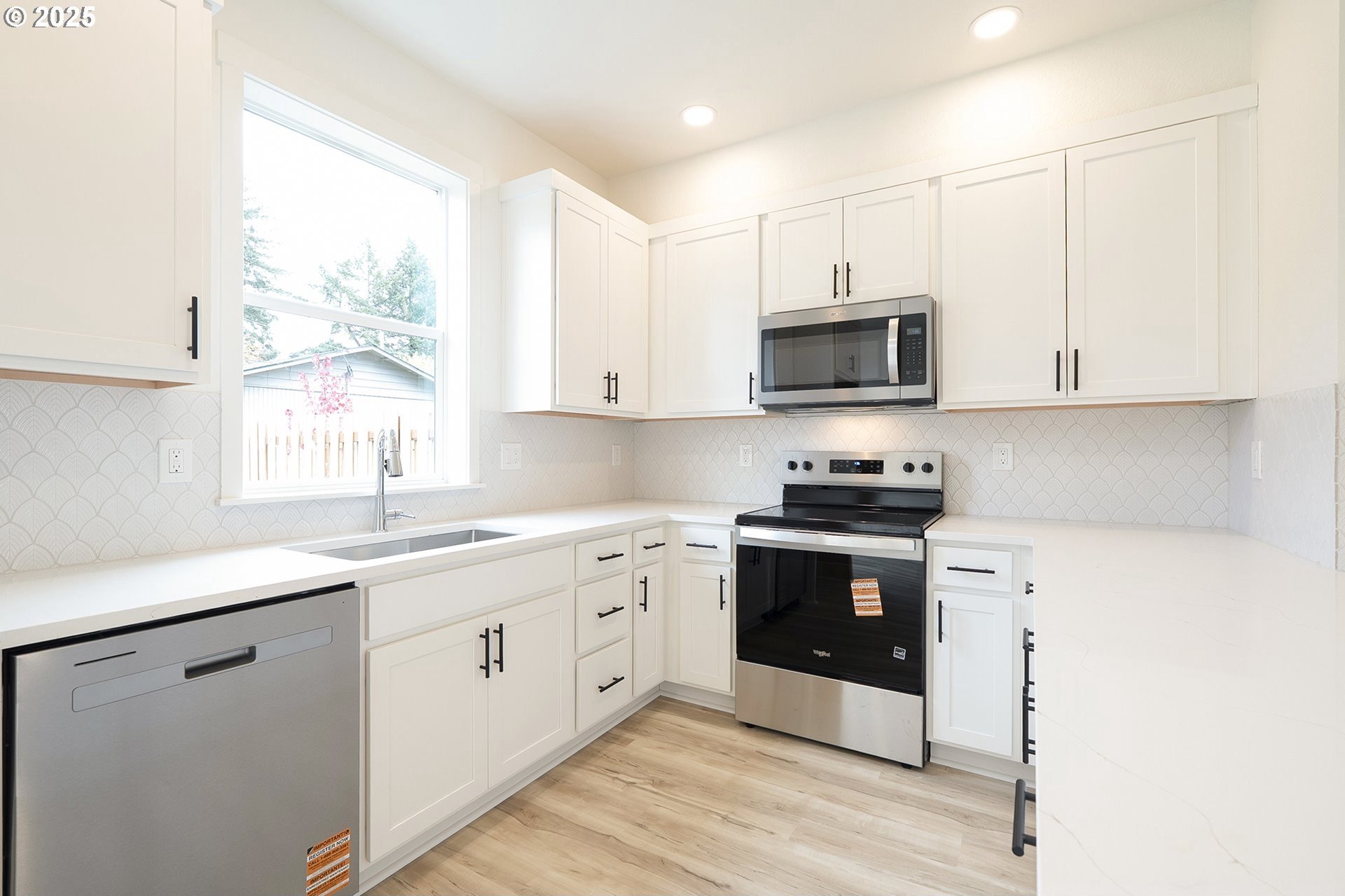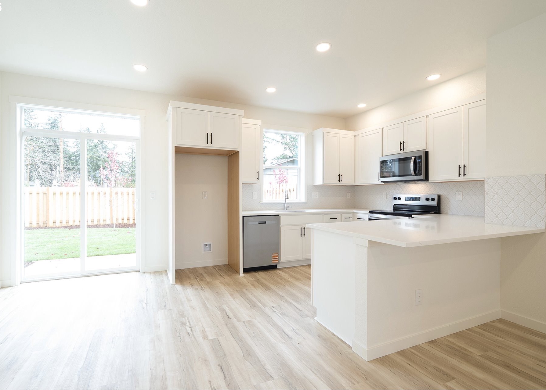 Brand new construction with 3 bedrooms, 2 1/2 bathrooms, garage and a large, fenced yard. This home sits well off Powell Blvd along with three other homes. All four homes come with an available TEN YEAR PROPERTY ABATEMENT! Typically, property taxes with tax abatement run $900 to $1,200 per year. The kitchen comes with a stylish hood vent, quartz countertops with an eat bar and stainless steel appliances. This home comes with refrigerator, range, window coverings, washer and dryer, dishwasher. The main floor has 9' ceilings and Luxury Vinyl Plank floors. Three bedrooms upstairs with vaulted ceilings, primary bedroom has a walk in closet and full bathroom. [Home Energy Score = 8. HES Report