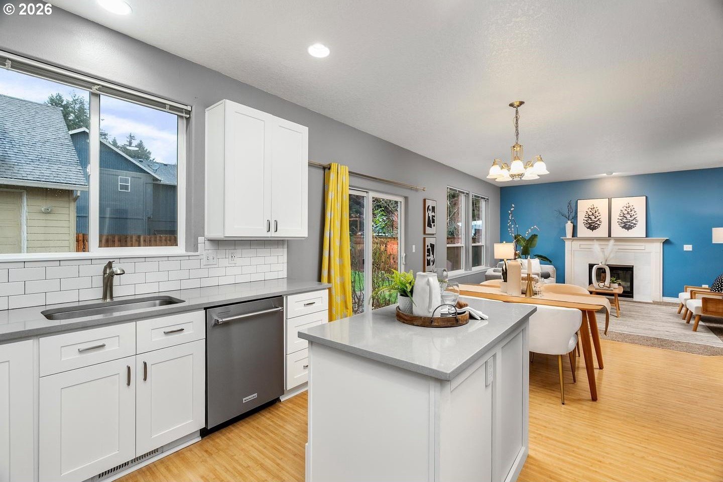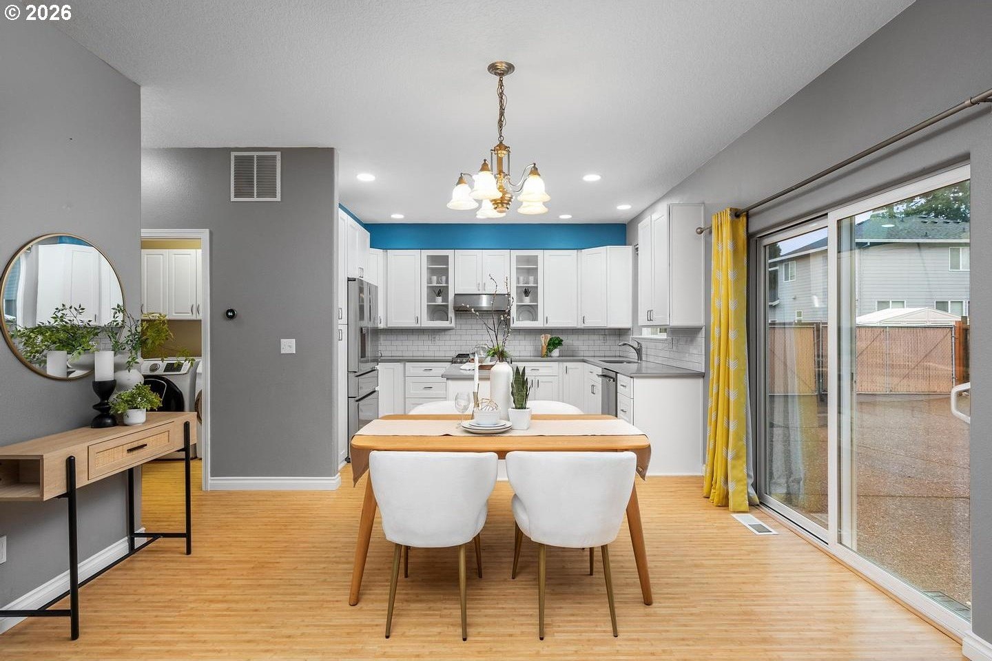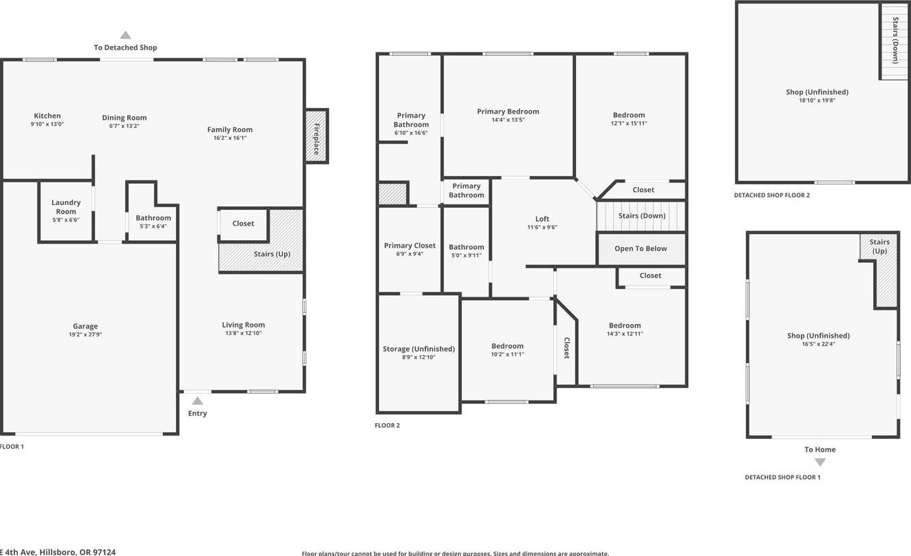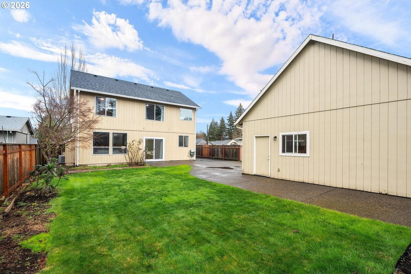 Move-in ready house with huge shop within walking distance of downtown Hillsboro. Beautifully remodeled island kitchen features quartz counters, subway tile backsplash, and stainless gas appliances, open to dining and family room with gas fireplace. Wood-like laminate floors in all four upstairs bedrooms, including primary suite with dual sinks, soaking tub, separate shower and walk-in closet. Large detached shop has space for a third vehicle, sink and sewer connection for future bathroom, dedicated electrical panel and second floor with good ceiling height. Space to park either an RV or a boat. Level yard and quiet, non-through street. Worry-free living with updated roof in October 2022, high-efficiency furnace and central air in 2021. [Home Energy Score = 5. HES Report