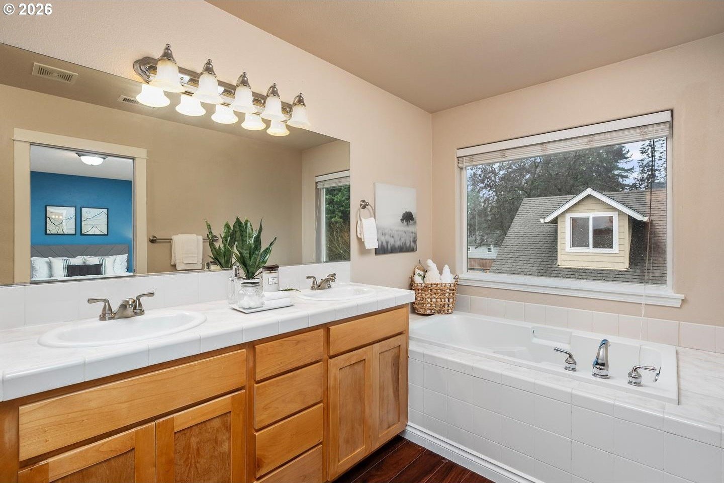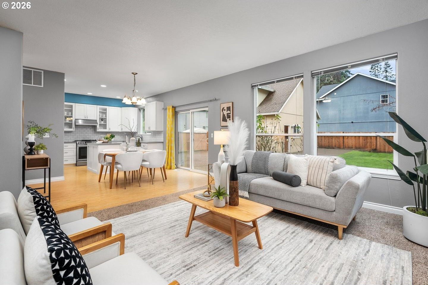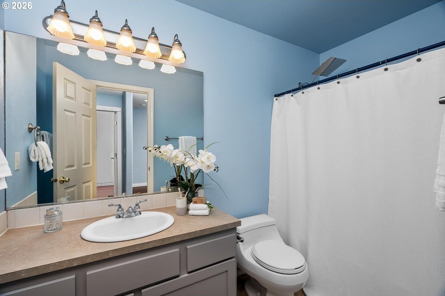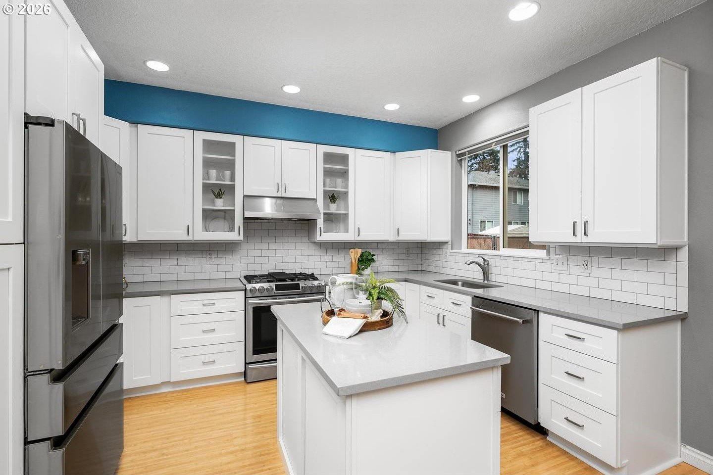Move-in ready house with huge shop within walking distance of downtown Hillsboro. Beautifully remodeled island kitchen features quartz counters, subway tile backsplash, and stainless gas appliances, open to dining and family room with gas fireplace. Wood-like laminate floors in all four upstairs bedrooms, including primary suite with dual sinks, soaking tub, separate shower and walk-in closet. Large detached shop has space for a third vehicle, sink and sewer connection for future bathroom, dedicated electrical panel and second floor with good ceiling height. Space to park either an RV or a boat. Level yard and quiet, non-through street. Worry-free living with updated roof in October 2022, high-efficiency furnace and central air in 2021. [Home Energy Score = 5. HES Report