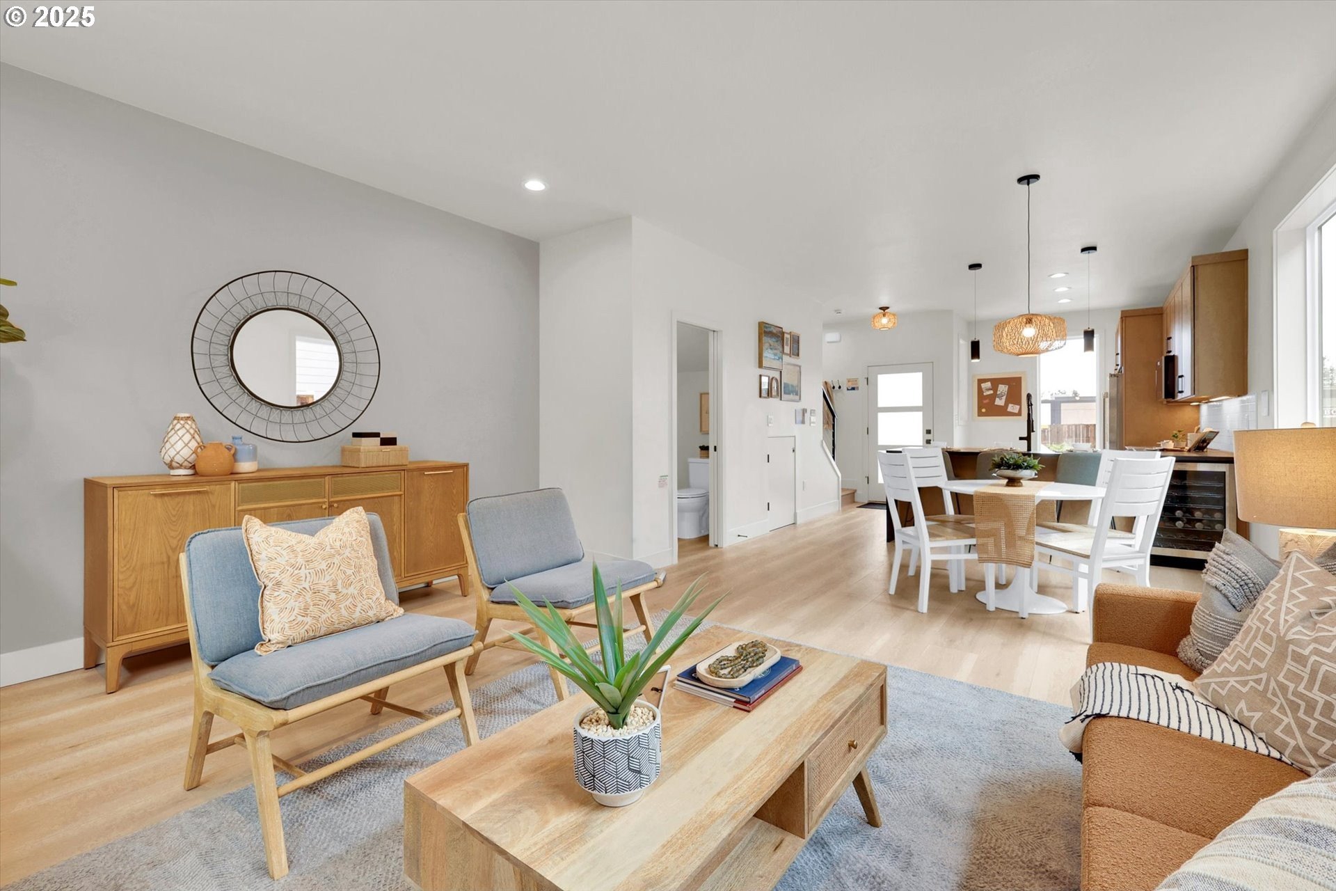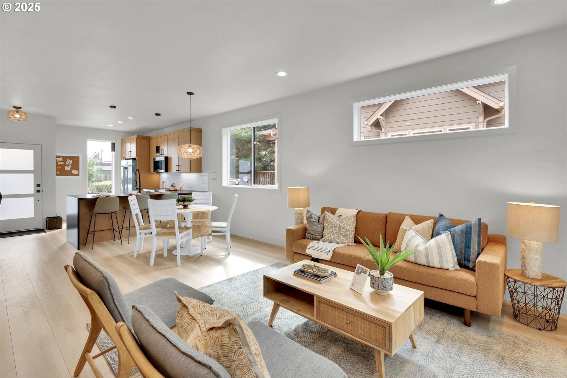 Take advantage of this opportunity to ask your questions about new construction in a relaxed setting. Exceptional quality new home in a great Johns Landing location just two blocks to Jola and walkable to the Willamette River Greenway Trail and Elephants. Walk score 79, bike score 97. Exceptionally light and bright with plentiful windows including transoms. Both bedrooms have their own bath and vaulted ceilings. Many special features including a wine refrigerator, under counter lighting, quartz countertops (waterfall in the kitchen), central vacuum, soft close cabinet doors and drawers, fully wrapped windows upstairs and down, and even a built-in safe! It's the perfect urban home replete with a large front patio for enjoying the sun and your new neighbors. [Home Energy Score = 10. HES Report