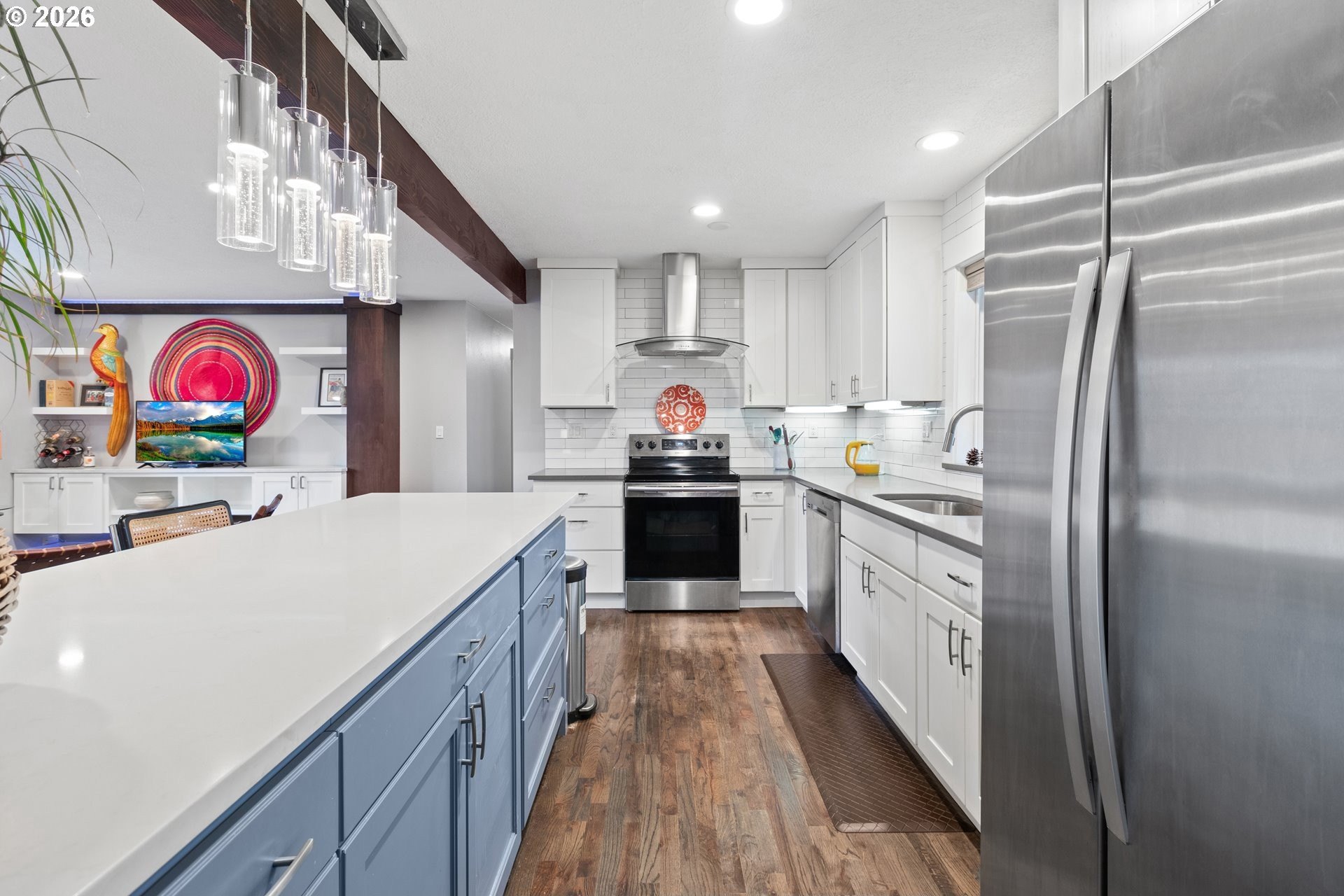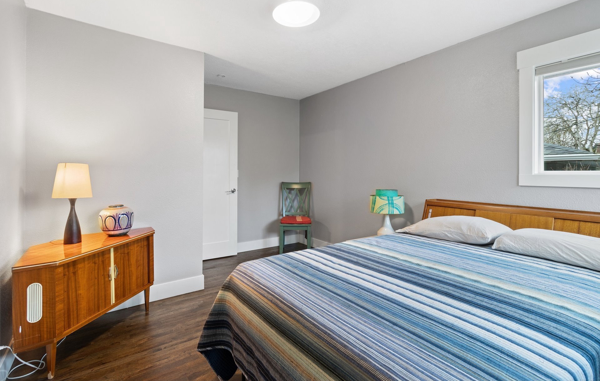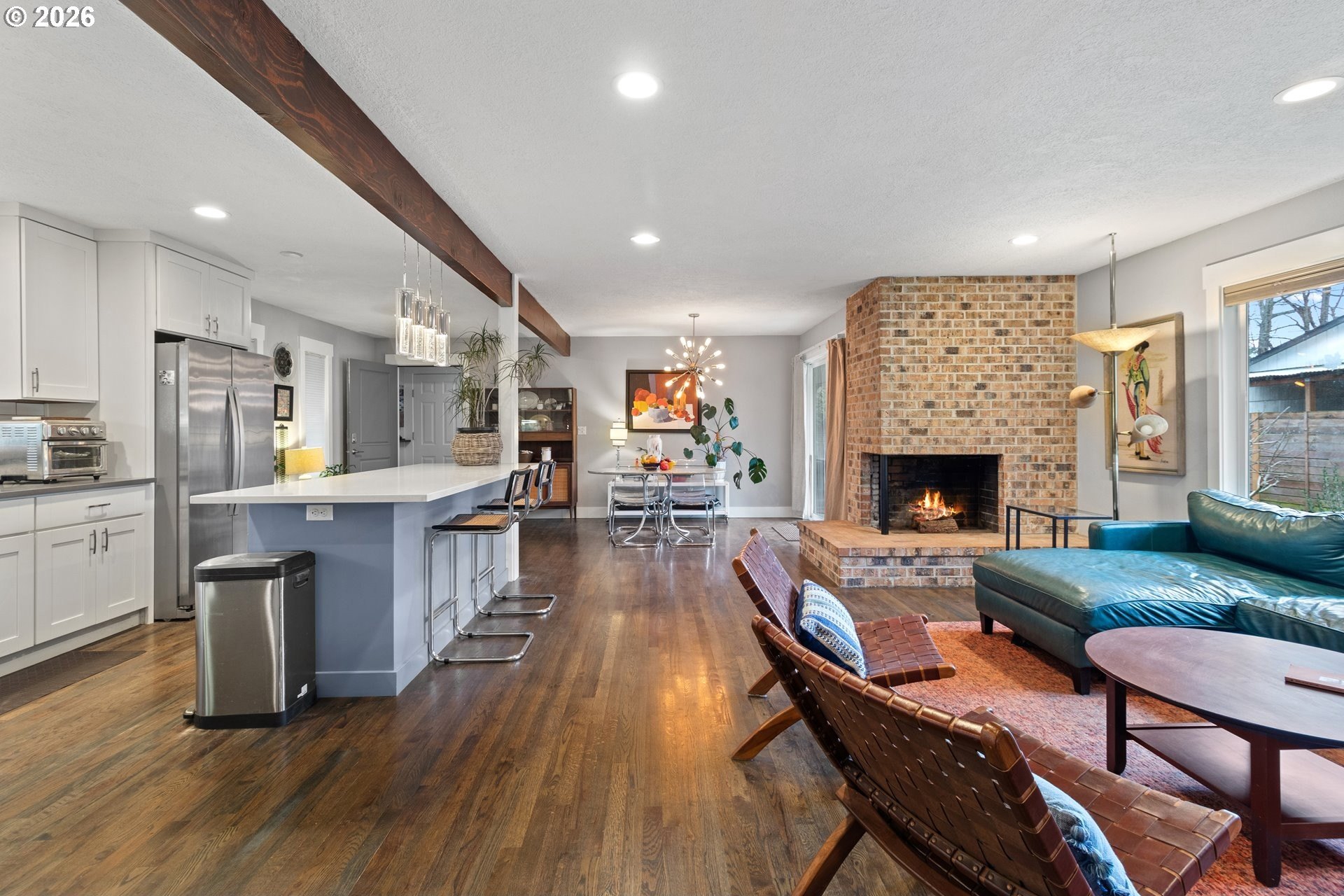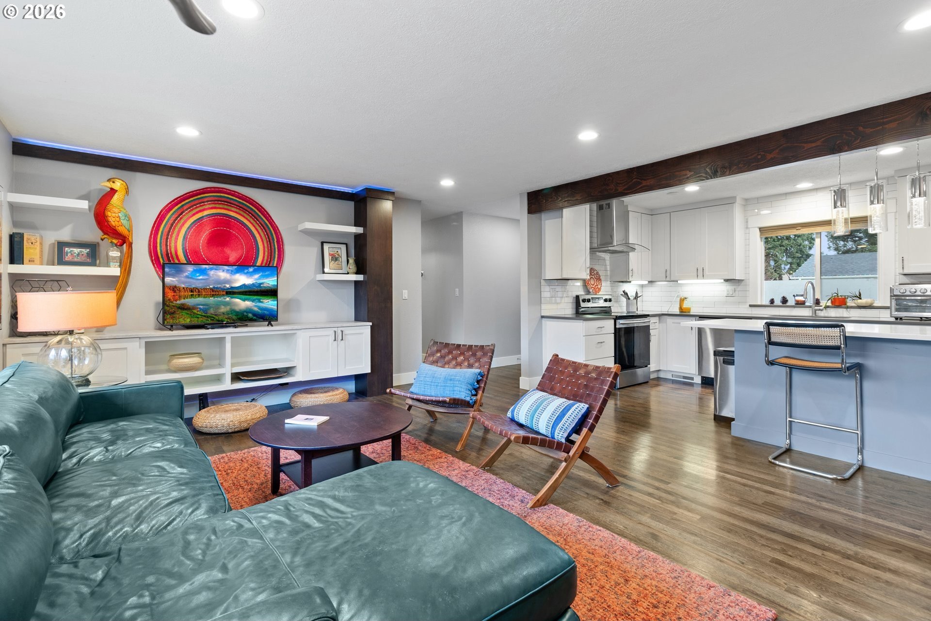 Remodeled Mid-Century Modern. Dazzling open-concept kitchen with extensive quartz island and breakfast bar. Living room with stunning hardwoods, oversized windows, and fireplace. Dining area with slider to patio. Three bedrooms up with hardwood floors and spacious bathroom with double sinks. Separate exterior entrance to lower level with shared laundry area. Three bedrooms downstairs, living room, family room, kitchenette, and full bathroom. Wonderful outdoor spaces with covered patios, gardening areas, and more. Long list of updates including recently added central air, egress windows, extended patios, 11x7 shed, attic and garage insulation, updated exterior paint, and more. Home has fantastic solar power potential. 3 blocks from Knott City Park with playground and sports fields. This modern, spacious home provides tons of flexible living options. Click the virtual tour link for a 3D tour and floorplan.