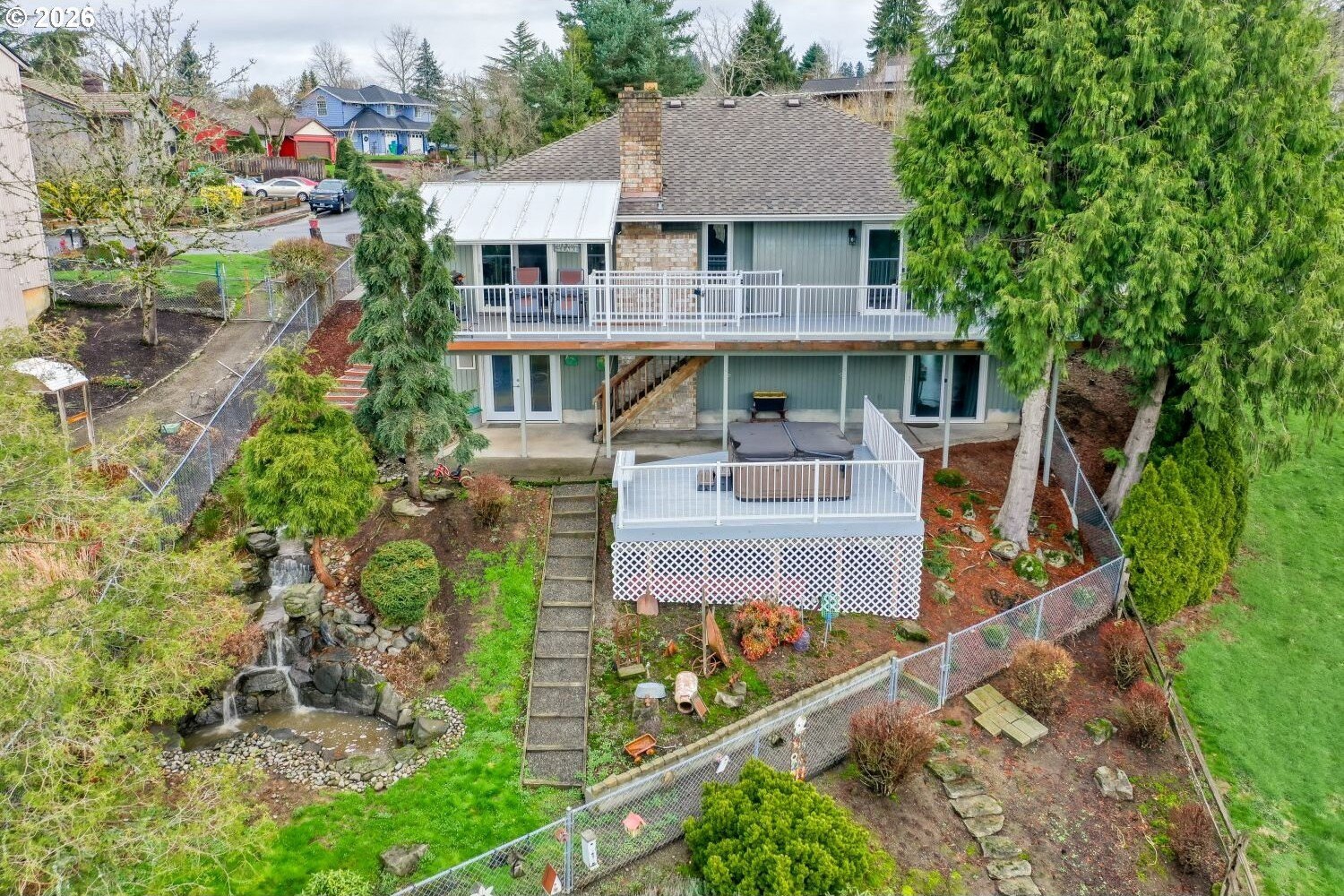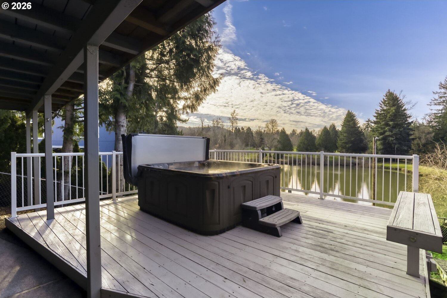 Discover this stunning 3+1 bedroom, 3 full bathroom daylight ranch in South West Gresham, adjacent to Butler Creek Park. Enjoy breathtaking views of Butler Creek Reservoir from the back deck, family room, kitchen, dining area, and primary bedroom. The updated kitchen features stainless steel appliances and a distinctive copper backsplash, blending style with functionality.The lower level offers a spacious, light-filled area with exterior access, perfect for an office or craft room, with cozy family space and complete with a full bathroom. Step outside to an elegant water feature, garden area opportunities, and included hot tub, with direct access to the trails and parkland along Butler Creek Park and Butler Creek Reservoir. Located near the heart of Gresham, this home is a perfect blend of beauty, comfort, and convenience, ready for you to make it your own!