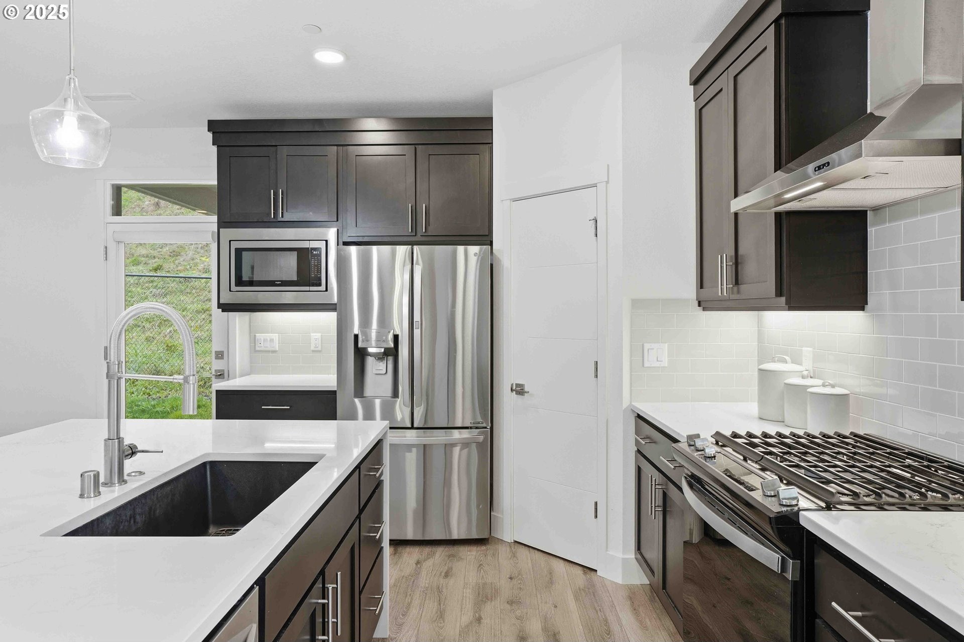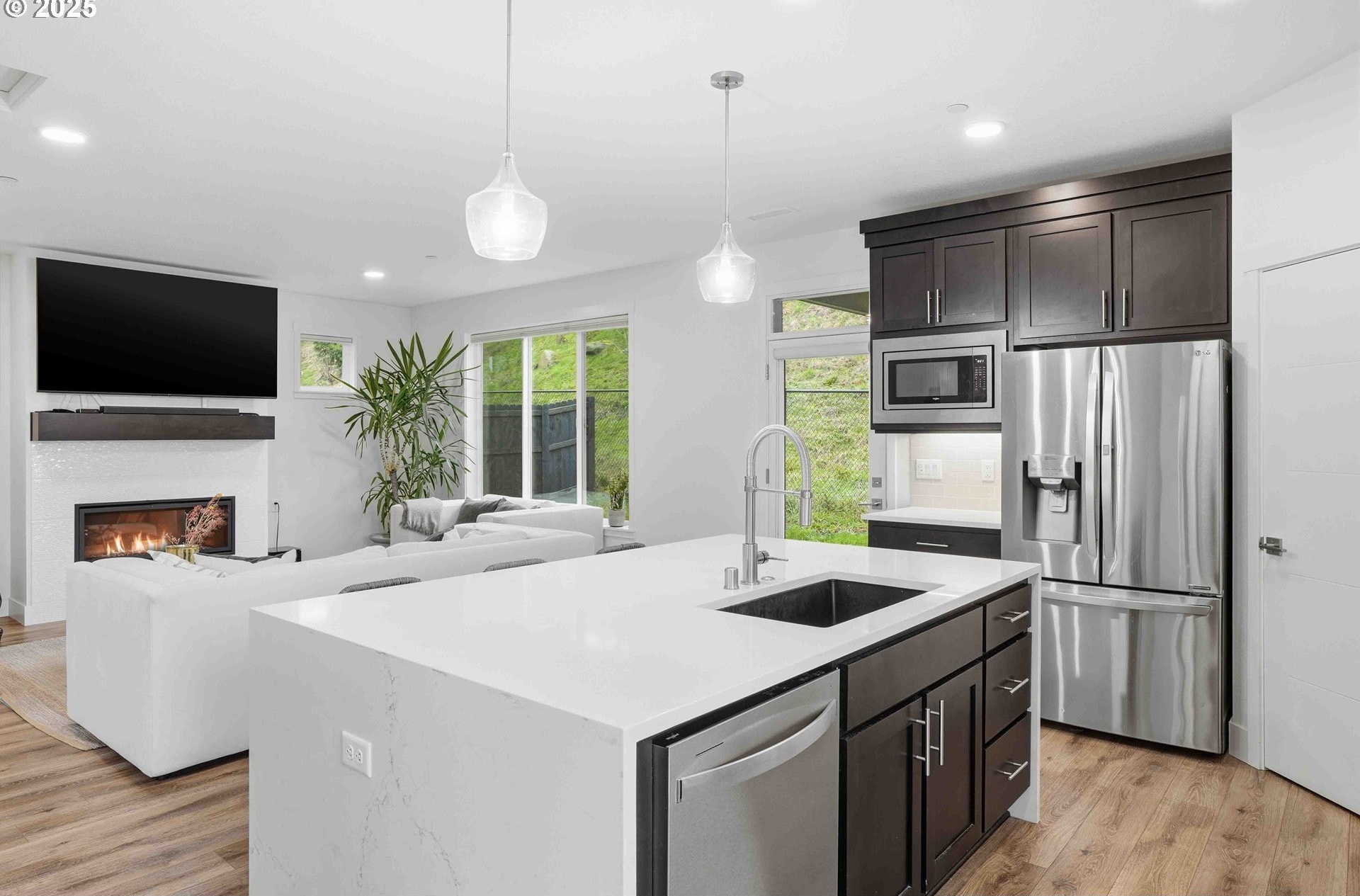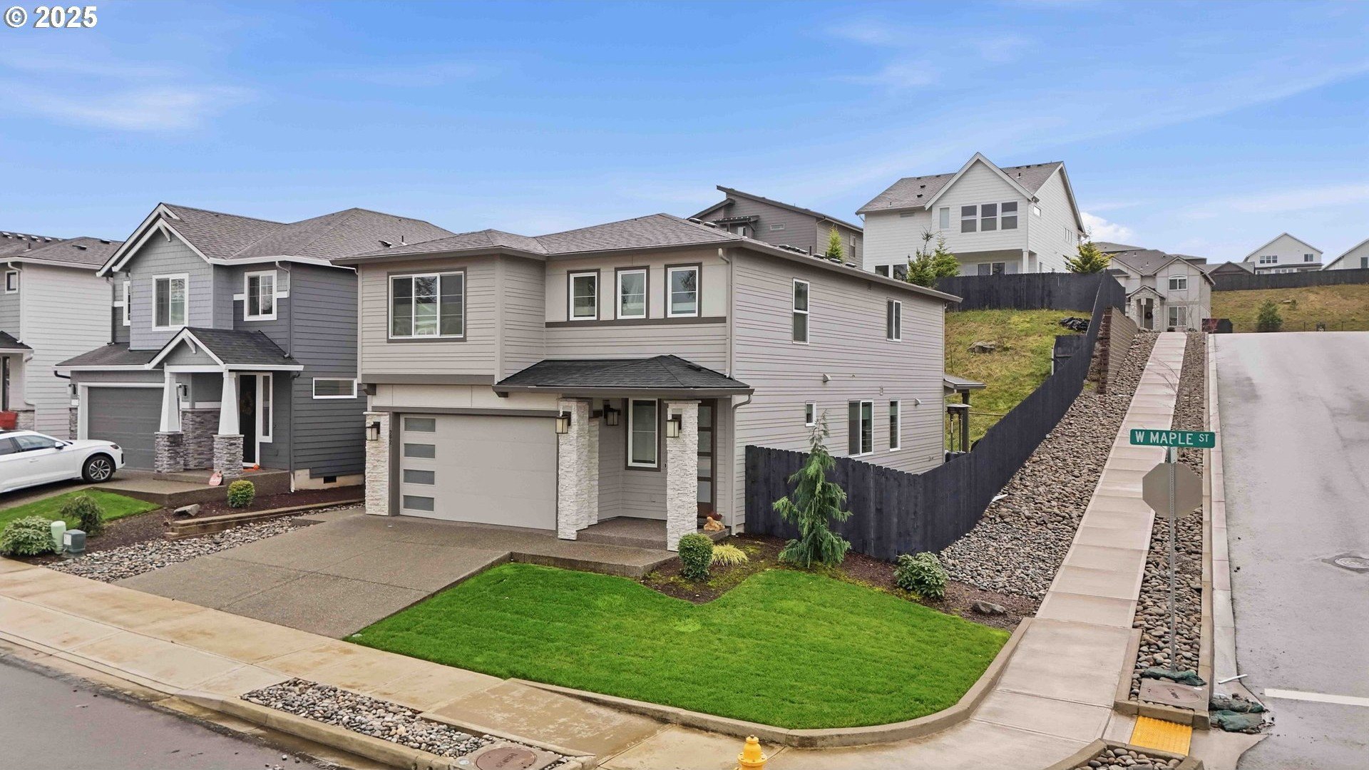 Camas Schools - Better Value Than New - Corner Lot - Nearby Community Park. This must-see home is located in the highly desirable Northside community and in highly regarded Camas School District. Built just two and a half years ago by New Tradition Homes, this 5-bedroom, 2.5-bath residence sits on a premium corner lot surrounded by well-maintained homes. Attractive exterior stonework and polished curb appeal immediately set the tone. Location offers everyday convenience within a well-planned neighborhood. Just a short one-minute walk to the community park- close enough for convenience, yet far enough to remain peaceful and quiet. This picturesque neighborhood with sidewalk-lined streets and a nearby viewpoint offer scenic views of Mount Hood and the Columbia River, only a few minutes from home. Inside, the open-concept main level feels bright and welcoming with great natural light and an easy flow between living, dining and kitchen spaces. The kitchen is well designed with quartz waterfall island and countertops, under-cabinet lighting, pendant lights, and opens seamlessly to the great room, where built-in fireplace adds warmth and character. The main level also includes a dedicated dining area and a versatile den, ideal for a home office or guest space. Upstairs, the spacious owner's retreat is complemented by three additional bedrooms and a convenient laundry area. HOA maintains the entire front yard for the community while the backyard is easy to maintain. Additional highlights include covered patio for outdoor living, a finished garage with storage and a side yard access door. This home delivers modern comfort, efficiency, and quality finishes without the wait of new construction. A home that truly shows best in actual. Schedule your private tour today.