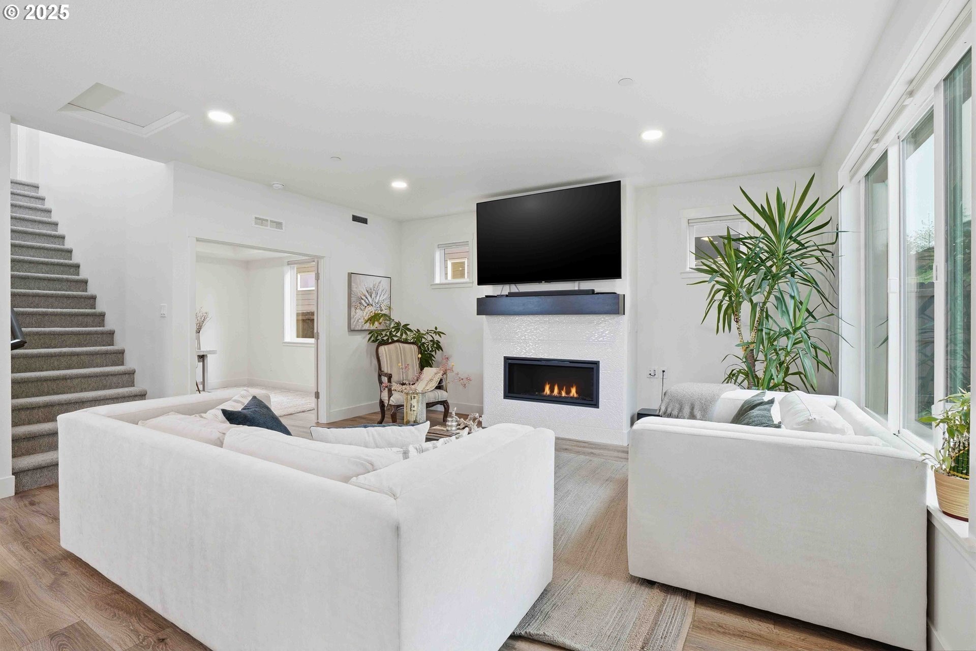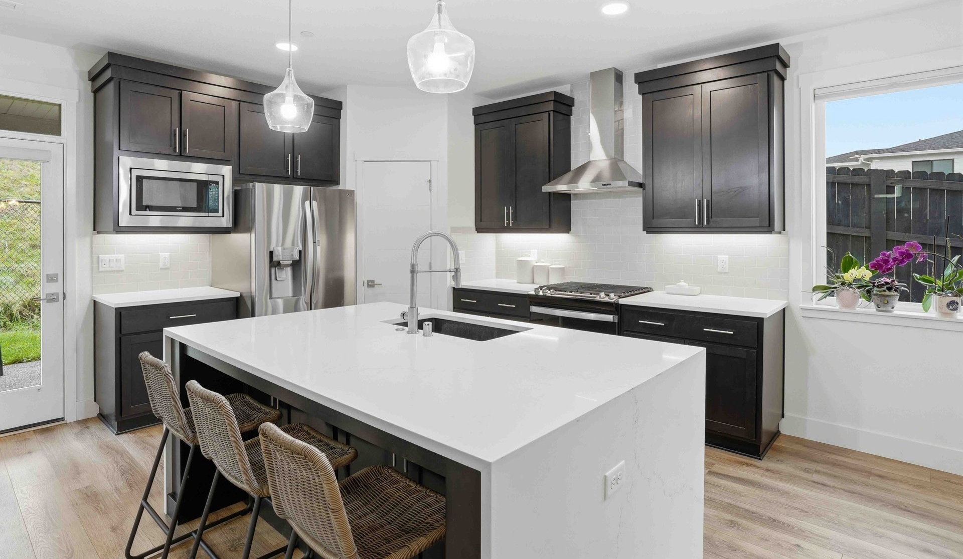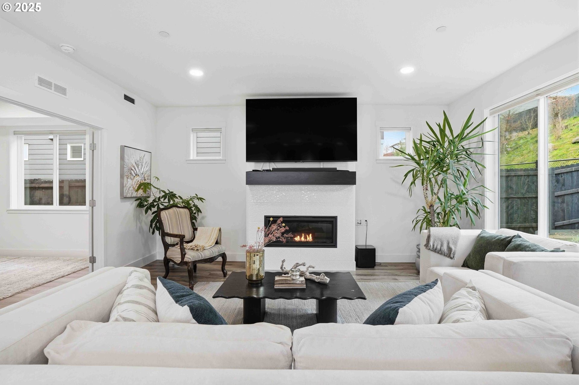 Camas Schools - Better Value Than New - Corner Lot - Nearby Community Park. This must-see home is located in the highly desirable Northside community and in highly regarded Camas School District. Built just two and a half years ago by New Tradition Homes, this 5-bedroom, 2.5-bath residence sits on a premium corner lot surrounded by well-maintained homes. Attractive exterior stonework and polished curb appeal immediately set the tone. Location offers everyday convenience within a well-planned neighborhood. Just a short one-minute walk to the community park- close enough for convenience, yet far enough to remain peaceful and quiet. This picturesque neighborhood with sidewalk-lined streets and a nearby viewpoint offer scenic views of Mount Hood and the Columbia River, only a few minutes from home. Inside, the open-concept main level feels bright and welcoming with great natural light and an easy flow between living, dining and kitchen spaces. The kitchen is well designed with quartz waterfall island and countertops, under-cabinet lighting, pendant lights, and opens seamlessly to the great room, where built-in fireplace adds warmth and character. The main level also includes a dedicated dining area and a versatile den, ideal for a home office or guest space. Upstairs, the spacious owner's retreat is complemented by three additional bedrooms and a convenient laundry area. HOA maintains the entire front yard for the community while the backyard is easy to maintain. Additional highlights include covered patio for outdoor living, a finished garage with storage and a side yard access door. This home delivers modern comfort, efficiency, and quality finishes without the wait of new construction. A home that truly shows best in actual. Schedule your private tour today.