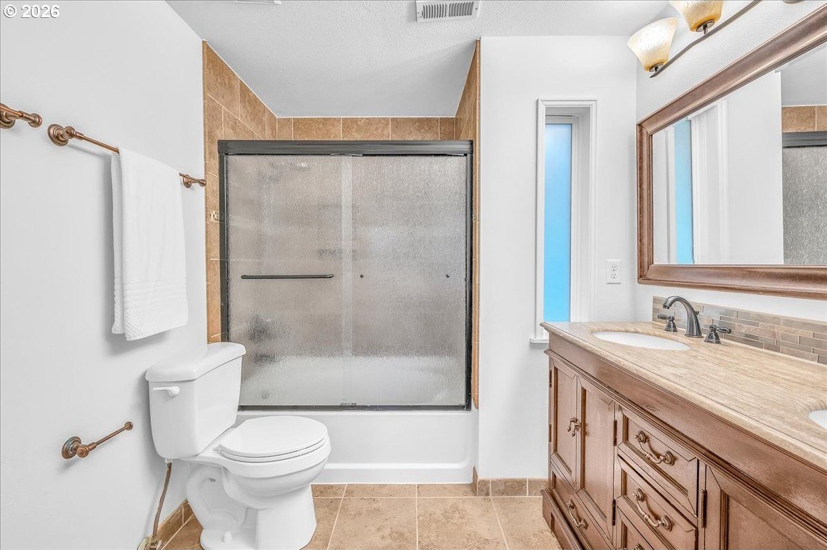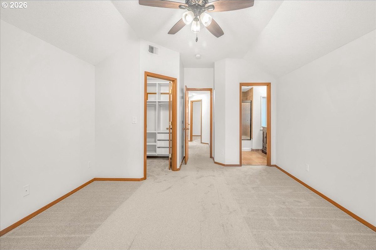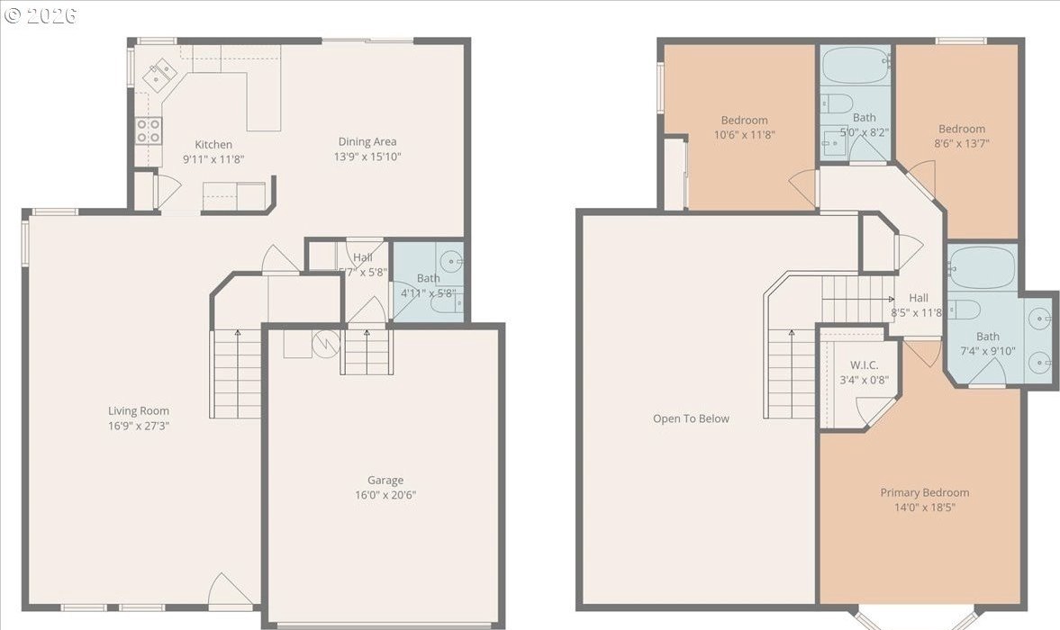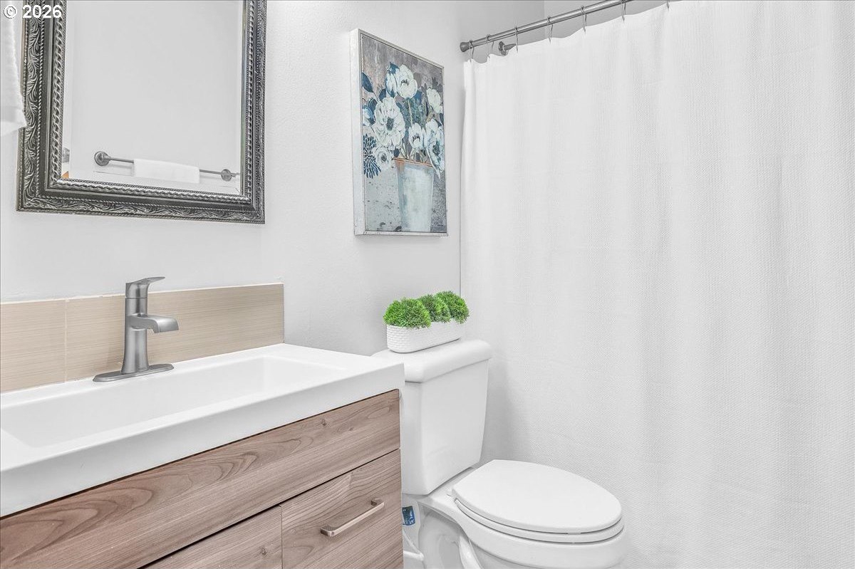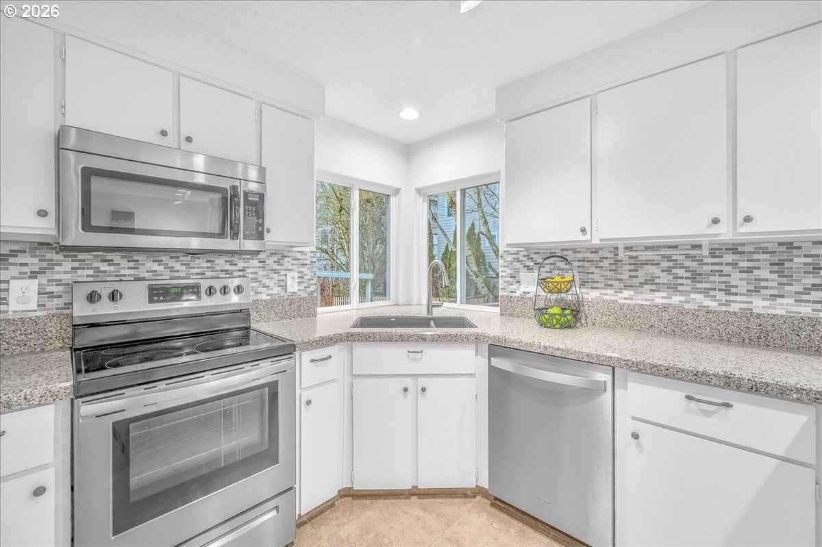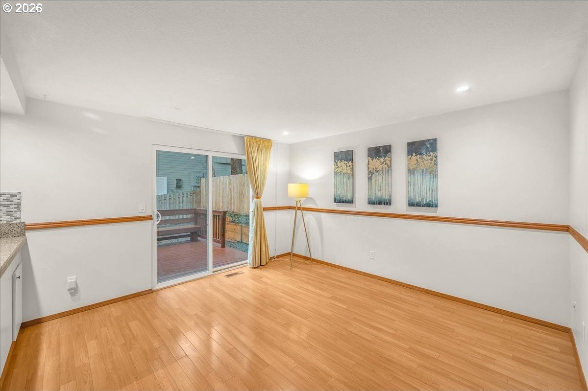 Soaring ceilings, abundant natural light, and an open, inviting layout make this Bethany home a standout value. This bright and welcoming 3-bedroom, 2.5-bath home offers a spacious, airy floor plan in a desirable location, featuring wood floors throughout the main level and brand-new carpet upstairs. A vaulted ceiling and open staircase create an impressive entry, with views from the upper level overlooking the expansive great room. The living and dining areas flow seamlessly into the kitchen, enhancing the home's open, connected feel. The updated kitchen features Corian countertops, freshly painted white cabinetry, and a breakfast bar that opens to an additional sitting area-perfect for casual living or entertaining. Upstairs, the oversized primary suite easily accommodates a king-sized bed and includes a walk-in closet, a charming window seat, and an en suite bath with dual sinks and a tub/shower combination. Two additional bedrooms are nicely sized and share a well-appointed hall bath. The home has been thoughtfully refreshed with fresh interior paint, roof and gutter cleaning, and a nicely updated yard. The west-facing backyard captures beautiful evening sunsets and features a newly stained deck with built-in seating, a fully fenced yard, raised garden space, and a grassy area for flexible use. A covered front porch adds to the inviting curb appeal, while a two-car garage and driveway provide ample parking and storage. Enjoy easy access to trails throughout Bethany, shopping along 185th and Tanasbourne, and Highway 26. A wonderful opportunity to own in a sought-after area.