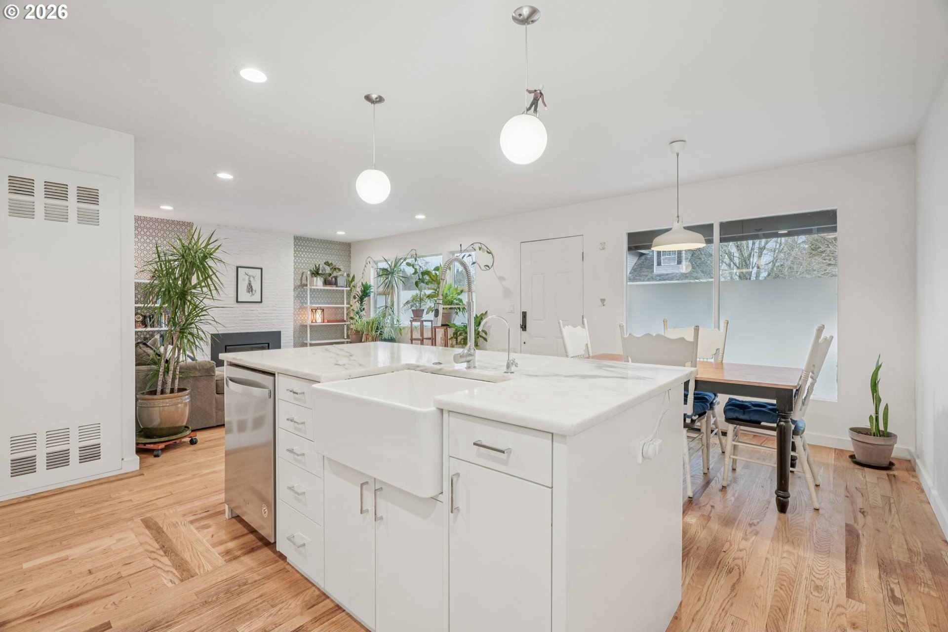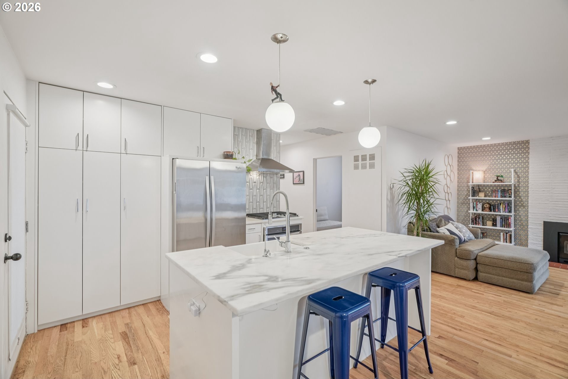 Instant CRUSH!! This Midcentury Ranch in St. Johns delivers style, comfort, and lifestyle! The open floor plan features three nice-sized bedrooms, an updated bathroom with zero threshold shower in custom concrete tile, a gourmet kitchen with marble counters, premium appliances, and a large island. Great room floor plan with custom accent wall including built in bookshelves and Osburn wood stove. Out back to your private covered deck and Finlandia Sauna! Set on a huge lot with a backyard built for entertaining, relaxing, all on a quiet street just three blocks from Pier Park and close to the St. Johns Community Center and iconic Cathedral Park. Minutes to Lombard Street's shops, dining, and neighborhood favorites. Upgraded, move-in ready with a new roof! Mortgage savings may be available for buyers of this listing. [Home Energy Score = 6. HES Report