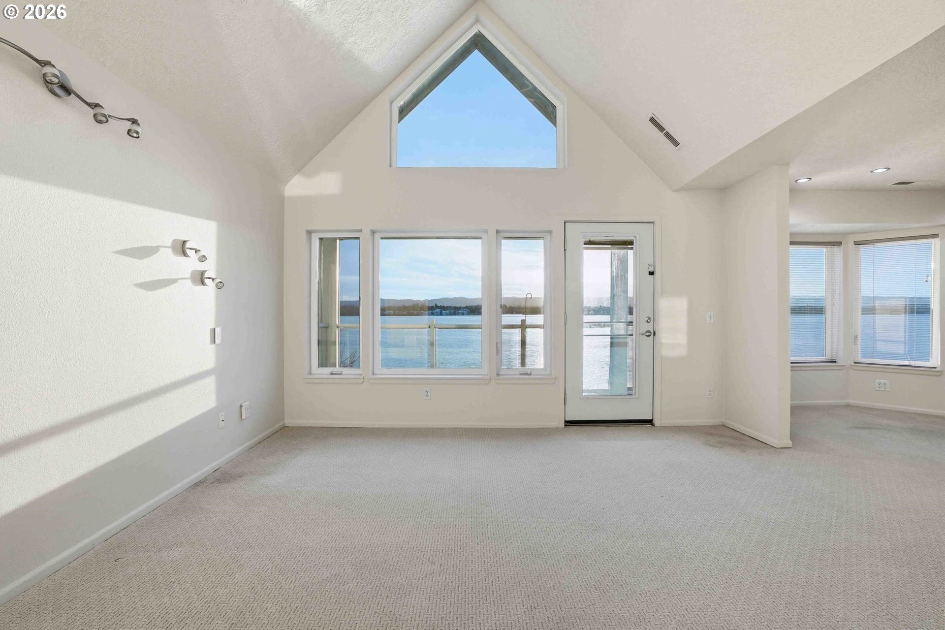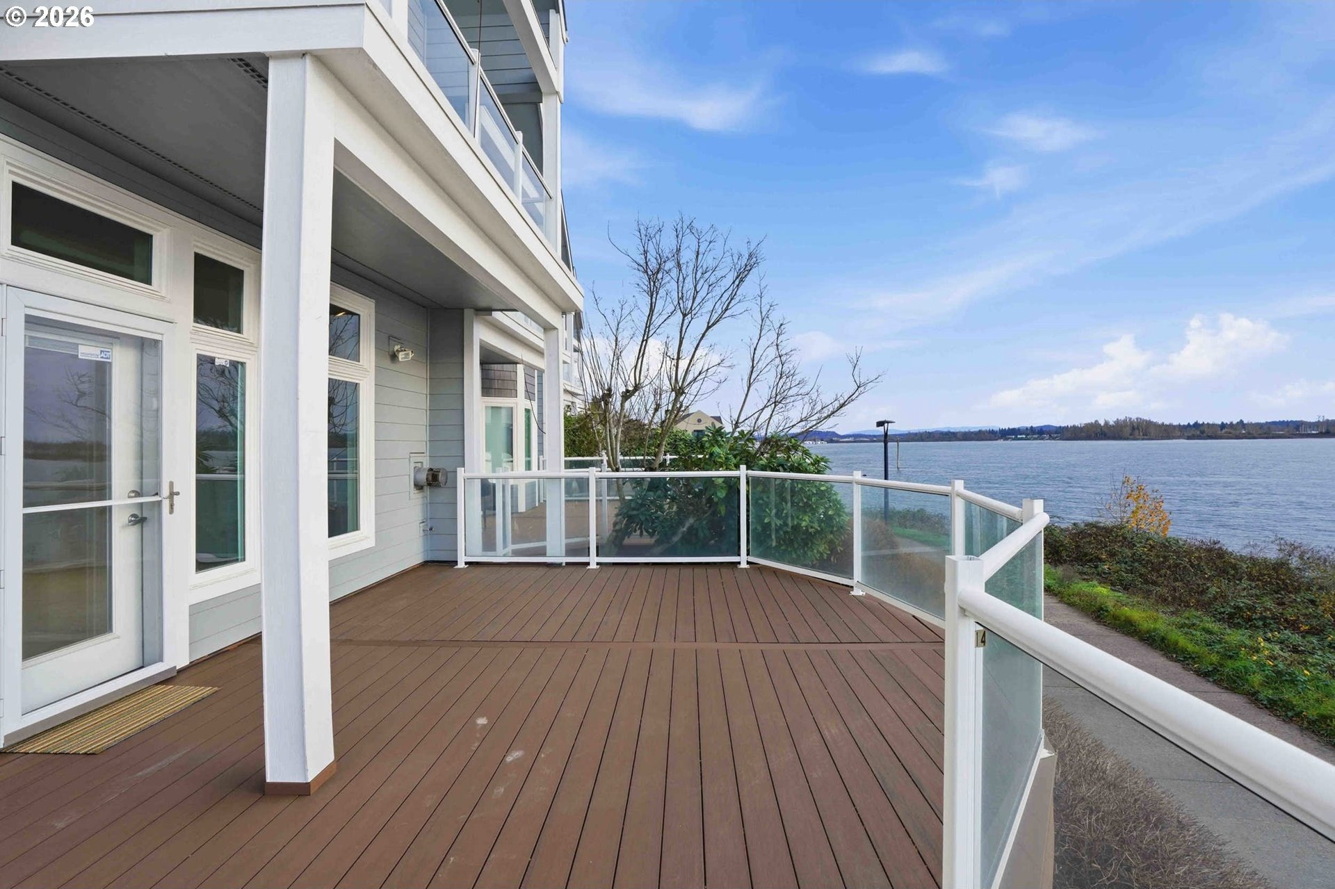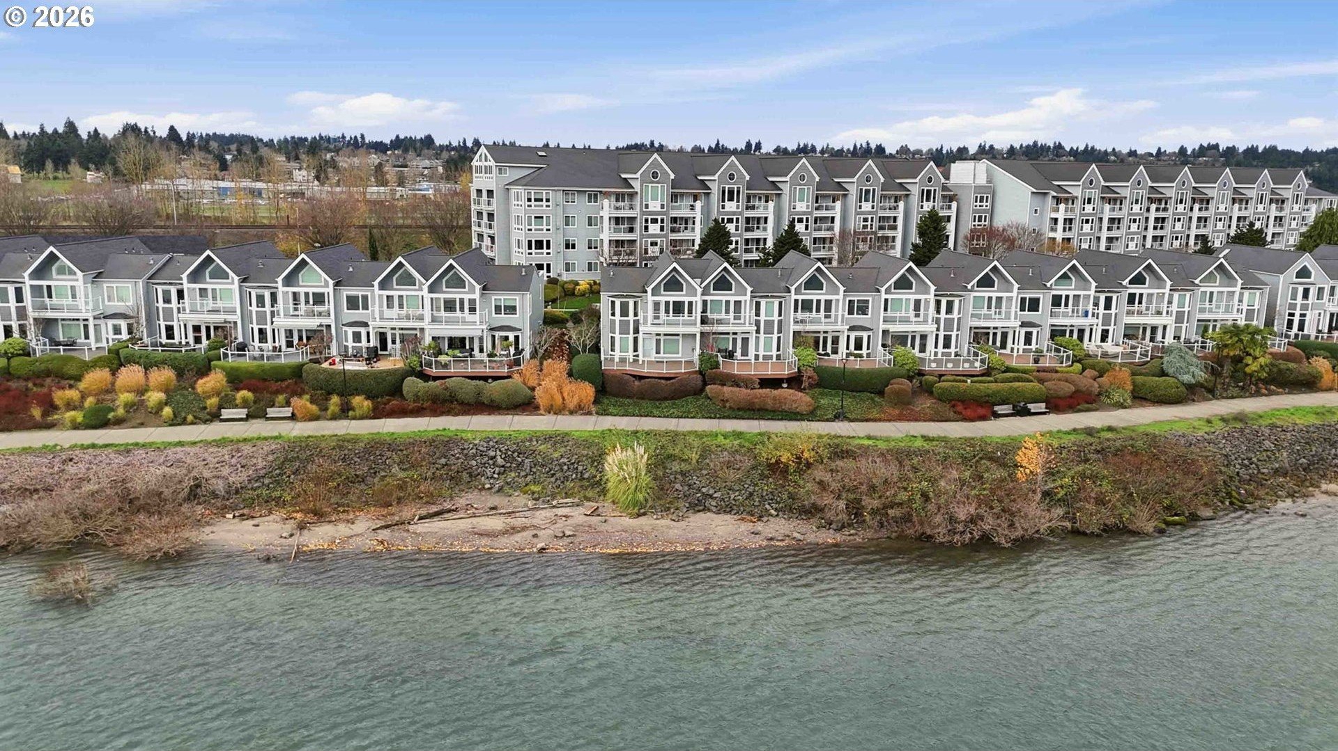 Rare Opportunity to own this Luxury Riverfront Home with 180 degrees Views of the Columbia River, Mt. Hood to Oregon City Lights! This Luxury Condo provides 1,696sf of Living Space, 2 Spacious Bedrooms, and 2.5 Bathrooms. Main Level is Open Concept with High Ceilings with outstanding Views, plus Living Room area has Gas Fireplace, Full Kitchen with Eat Bar, Dining area, and Half Bathroom. Easy access to Large Deck overlooking the Columbia River perfect for Entertaining to simply Relaxing. Primary Suite: Oversized with Stunning Views, Private Balcony, Vaulted Ceiling, Full Private Bathroom with Double Vanity, Walk in Organized Closet, Walk in Shower, and Jetted Tub. Additional Bedroom on second floor with Full Bathroom in Hallway. Attached 2 Car Garage. Plus a deeded additional Detached 2 Car Garage. Gas Furnace with AC. Clubhouse featuring Party Room, Spa, Pool, Gym + Weights. This truly is a Lifestyle opportunity to live directly on the Columbia River with Beach Access, Walking/Biking Path to nearby Restaurants and Coffee Shops. Quick access to Highway 14, and minutes to Portland and the PDX Airport.