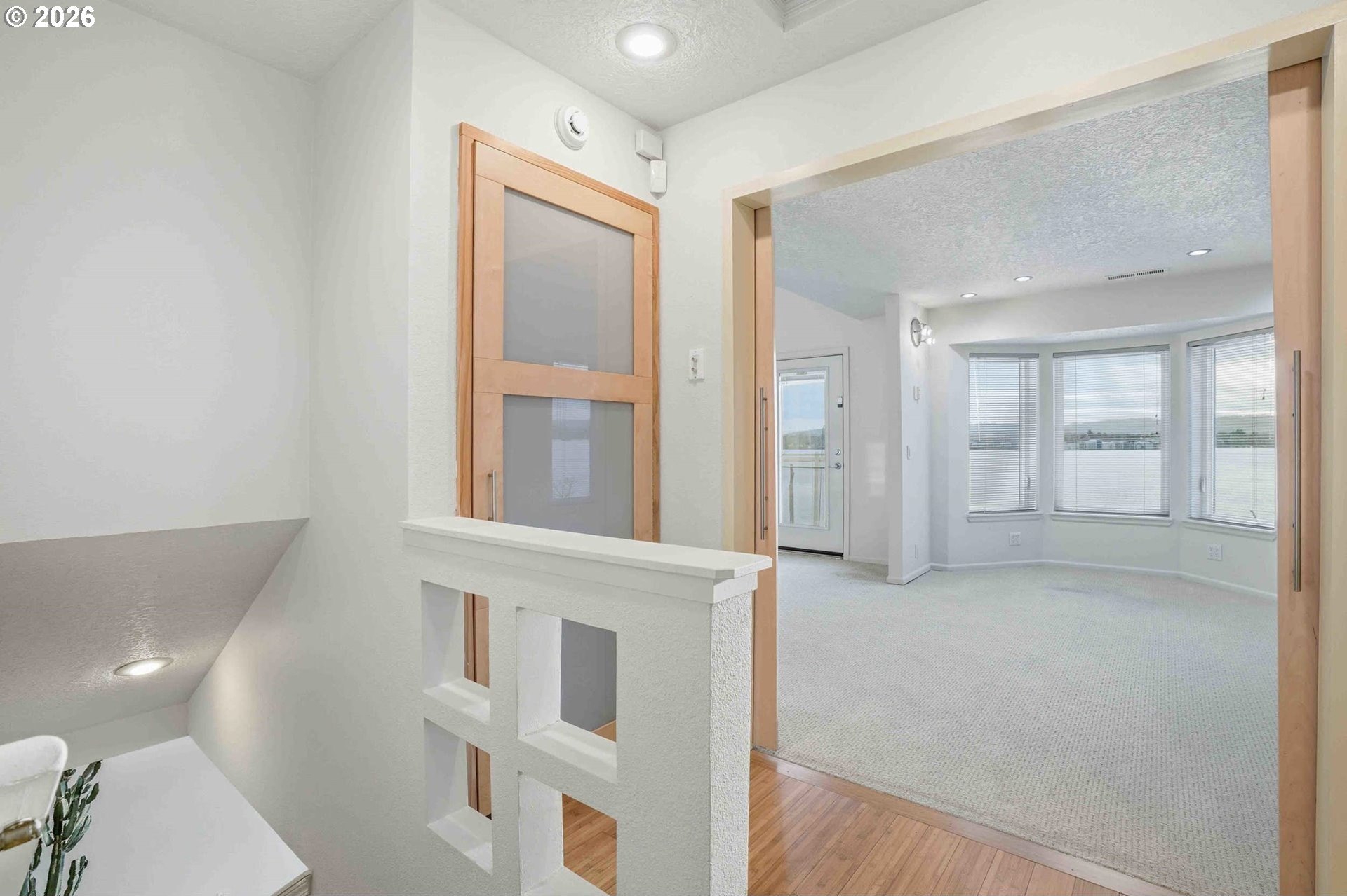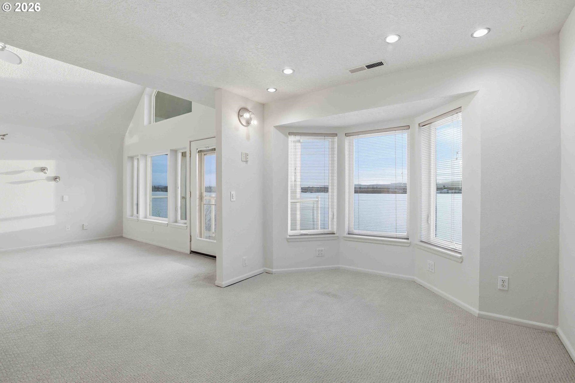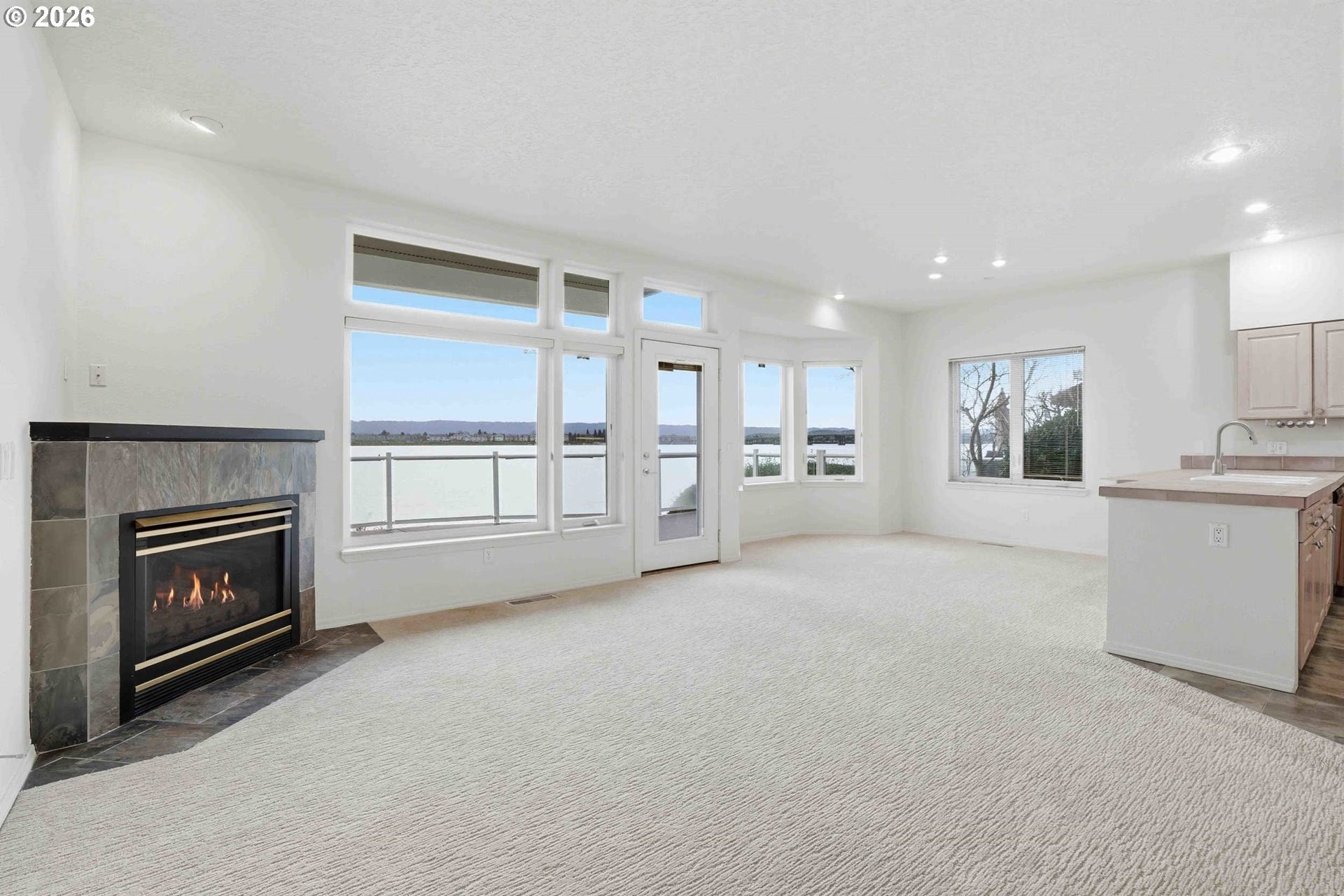 Rare Opportunity to own this Luxury Riverfront Home with 180 degrees Views of the Columbia River, Mt. Hood to Oregon City Lights! This Luxury Condo provides 1,696sf of Living Space, 2 Spacious Bedrooms, and 2.5 Bathrooms. Main Level is Open Concept with High Ceilings with outstanding Views, plus Living Room area has Gas Fireplace, Full Kitchen with Eat Bar, Dining area, and Half Bathroom. Easy access to Large Deck overlooking the Columbia River perfect for Entertaining to simply Relaxing. Primary Suite: Oversized with Stunning Views, Private Balcony, Vaulted Ceiling, Full Private Bathroom with Double Vanity, Walk in Organized Closet, Walk in Shower, and Jetted Tub. Additional Bedroom on second floor with Full Bathroom in Hallway. Attached 2 Car Garage. Plus a deeded additional Detached 2 Car Garage. Gas Furnace with AC. Clubhouse featuring Party Room, Spa, Pool, Gym + Weights. This truly is a Lifestyle opportunity to live directly on the Columbia River with Beach Access, Walking/Biking Path to nearby Restaurants and Coffee Shops. Quick access to Highway 14, and minutes to Portland and the PDX Airport.